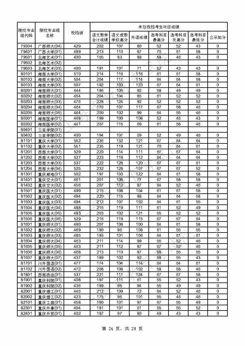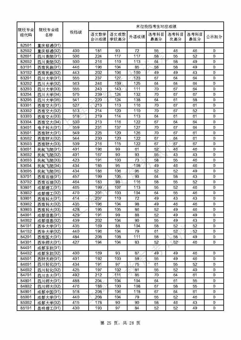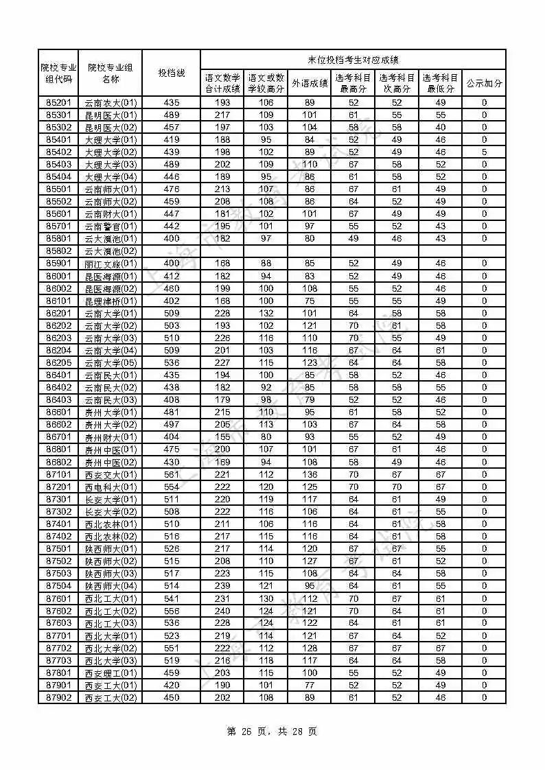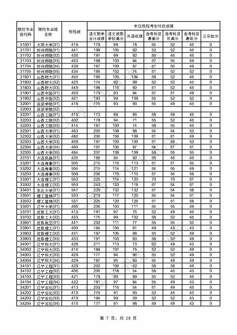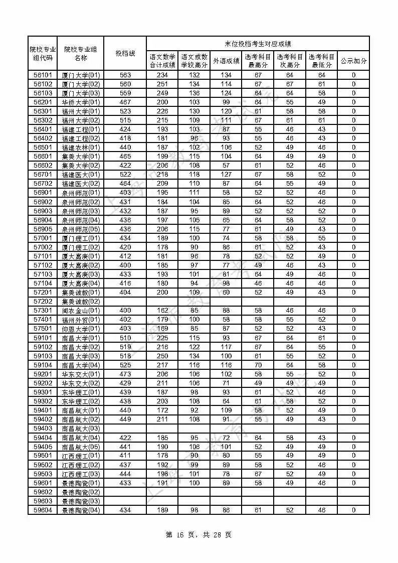 580分及以上考生的本科普通批投档信息将由市教育考试院会同考生所在中学逐一告知;580分以下考生请对照下表结合本人志愿填报情况自行判断投档去向(部分院校Q组投档结果另行公布)。