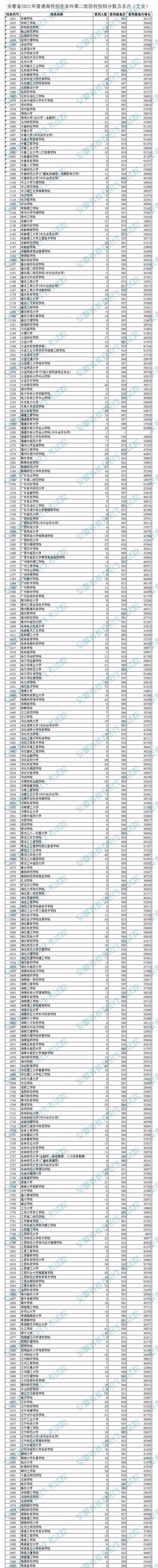 安徽省2021年普通高校招生本科第二批院校投档分数理工类文史类