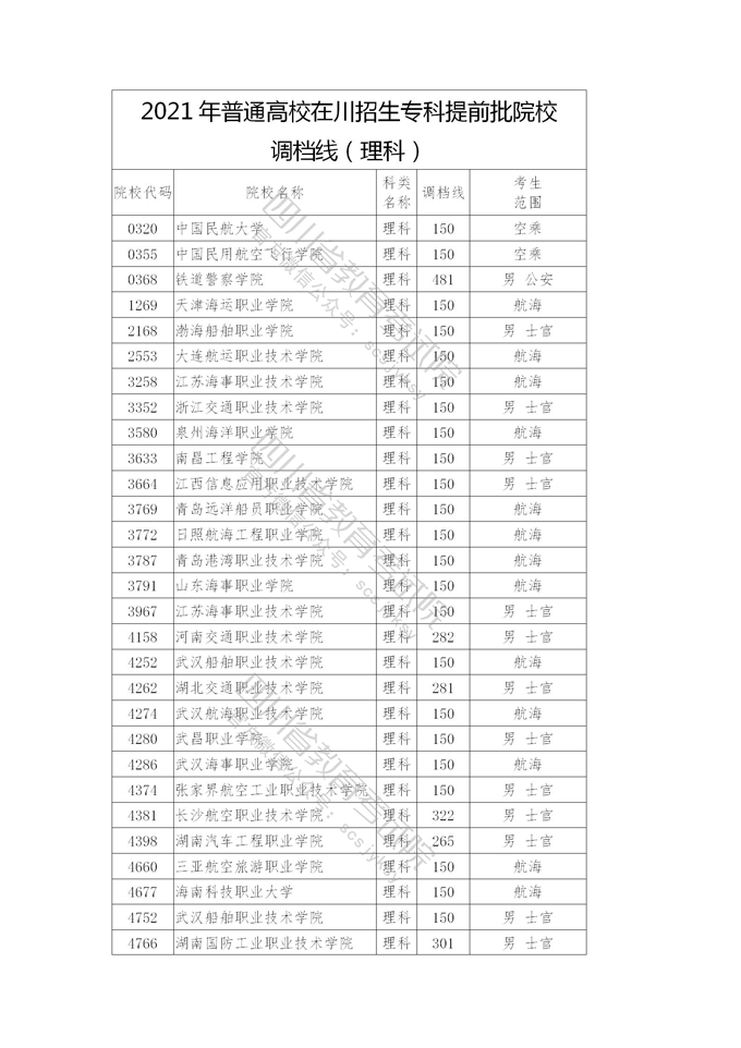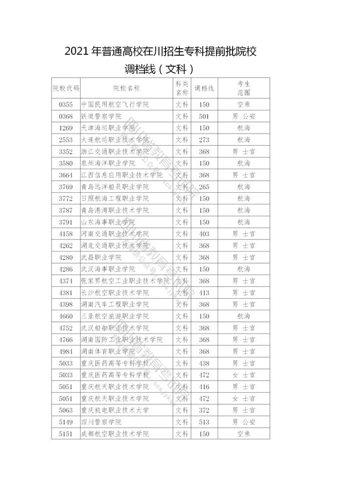 四川:2021年普通高校在川招生专科提前批院校调档线出炉