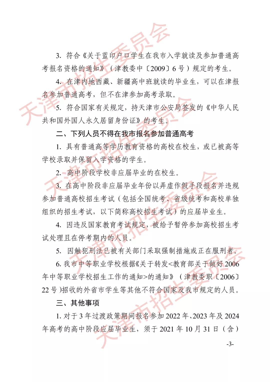 天津市招委公布天津市普通高考报名有关事项的通知: