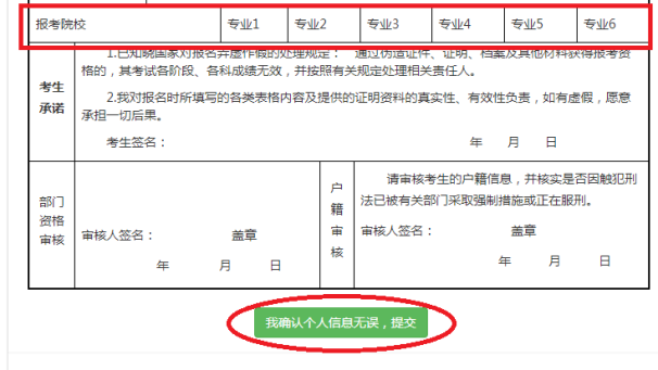 12.第四步,信息确认。考生请认真核对“甘肃省高等职业教育扩招报名登记表”中所生成的各项信息是否准确无误,尤其是“报考院校”及“专业”是否与本人填报的报考信息一致。如提交后需要修改,请点击“取消提交个人信息,撤回”,再对需要修改的项目进行修改。