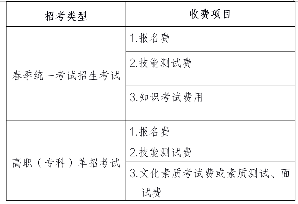 3.仅报考高职单招而不参加春季高考统一考试的,缴纳报名费、技能测试费、文化素质考试费。其中文化素质考试费须到招生高校官方网站缴纳;