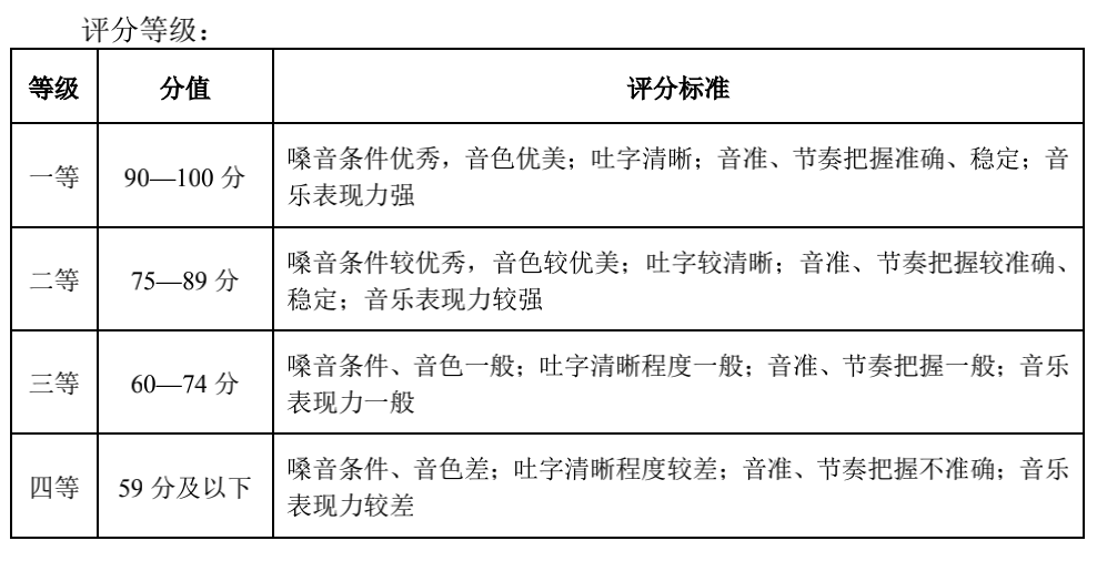 考生清唱自选歌曲、戏曲唱段或曲艺作品一首,风格不限,考试时间2分钟以内。