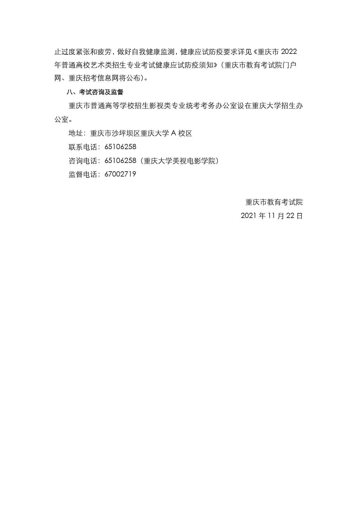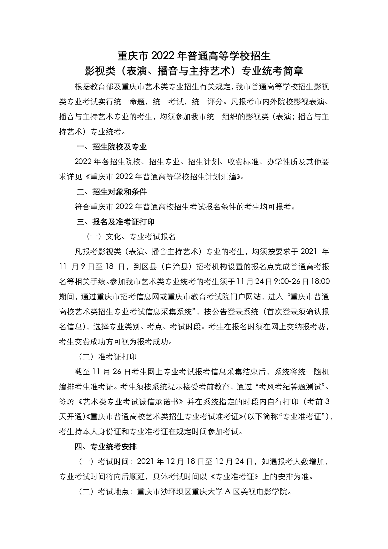 重庆市2022年普通高等学校招生影视类(表演、播音与主持艺术)专业统考简章