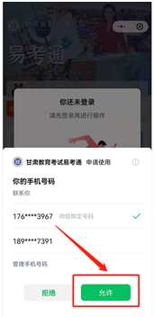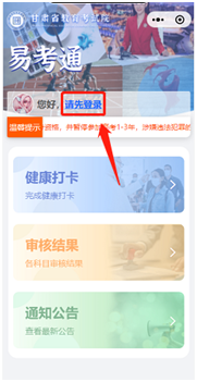 通过微信搜索小程序“甘肃教育考试易考通”进入或用“微信扫一扫”扫描(附件1)中的二维码登入。