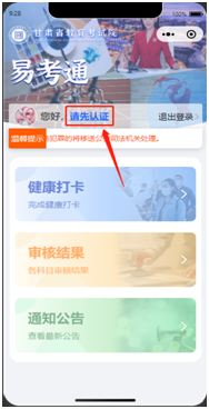 考生完成实名认证后,按照打卡时间段在“健康打卡”模块中完成每日健康打卡。
