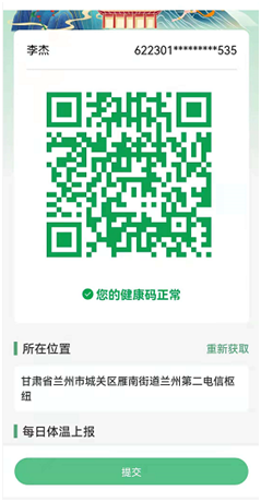 健康通行码、微信“国务院客户端”防疫行程卡和甘肃教育考试易考通二维码