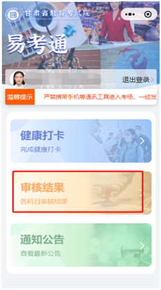 考生可在“审核结果”中查询自己的健康状况筛查审核结果及审核意见。