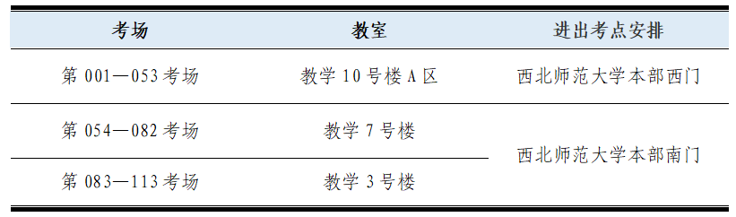 (一)2022年甘肃省普通高校招生音乐学类专业统一考试笔试考场安排
