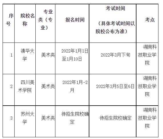 湖南:2022年省外高校来湘组织艺术类专业现场校考考点及时间安排表