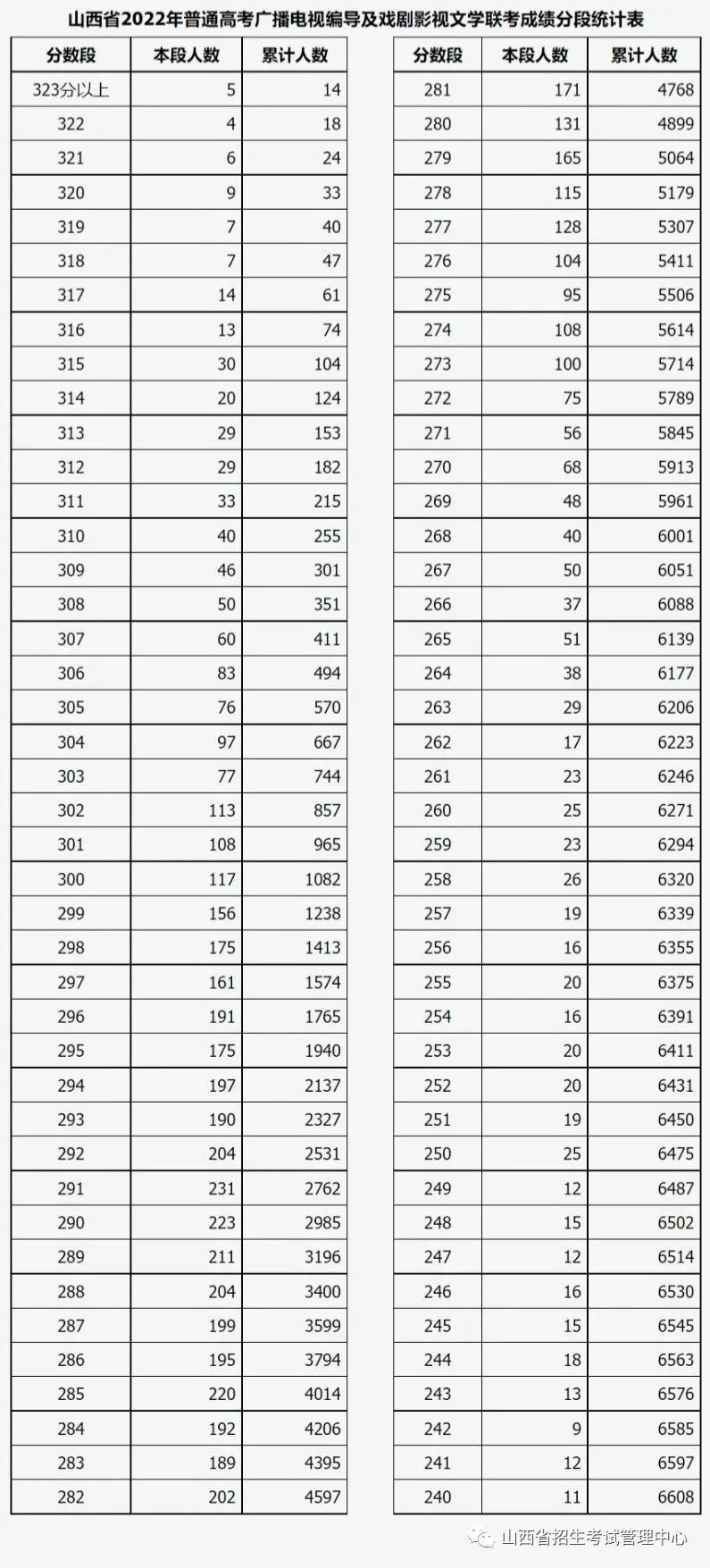 山西:2022年普通高校招生艺术类统考及联考有关专业成绩分段统计情况公布