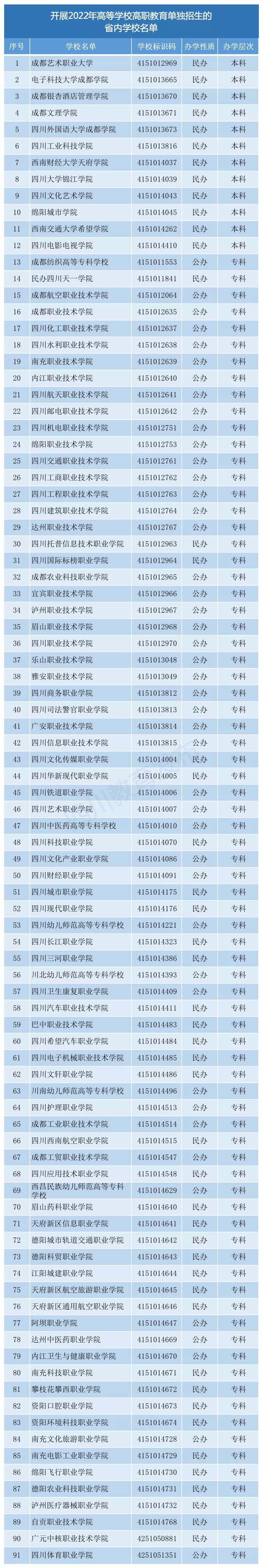近日,四川省教育厅公布了2022年普通高等学校高职教育单独招生学校名单。