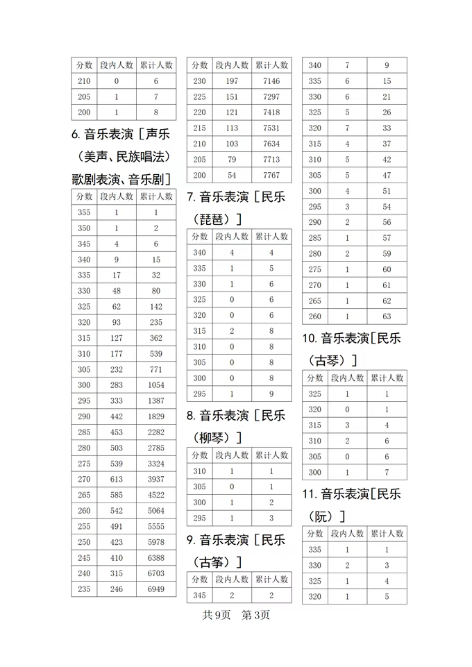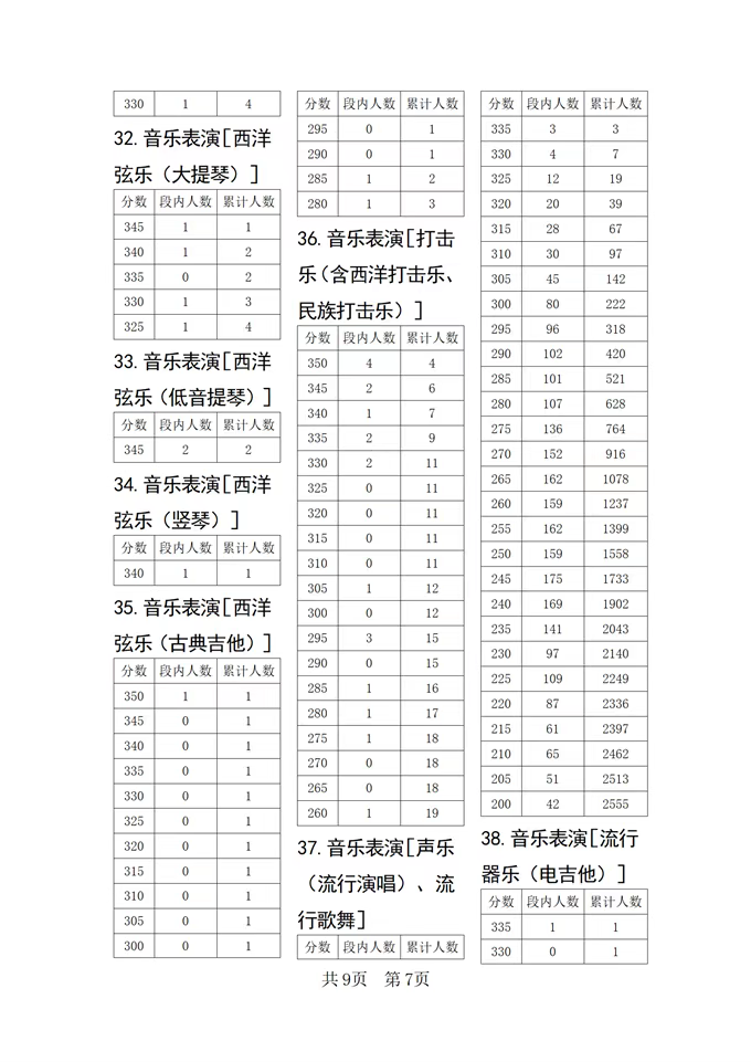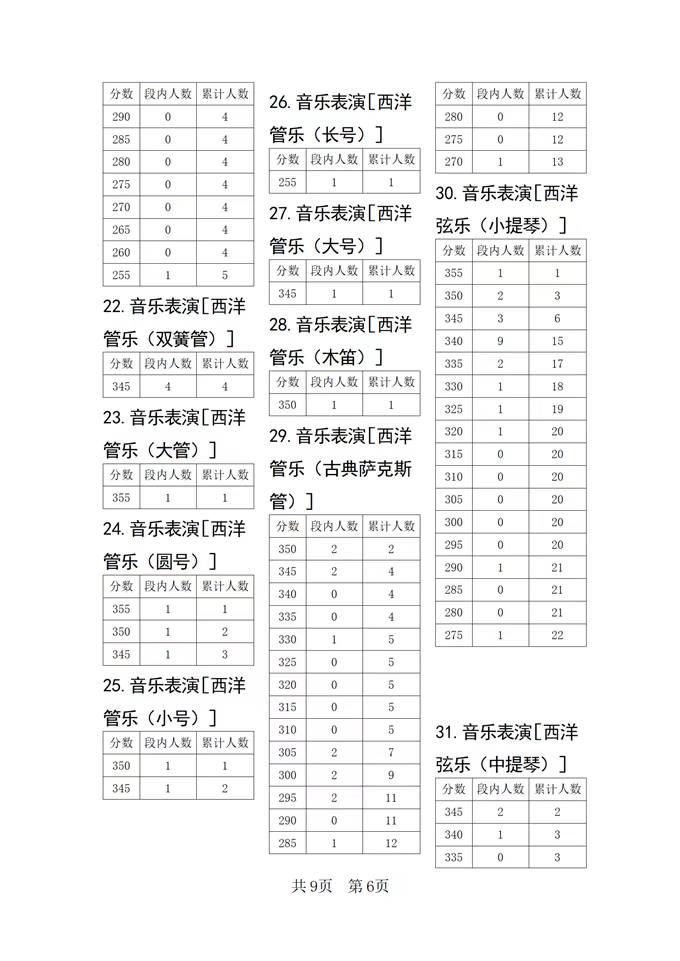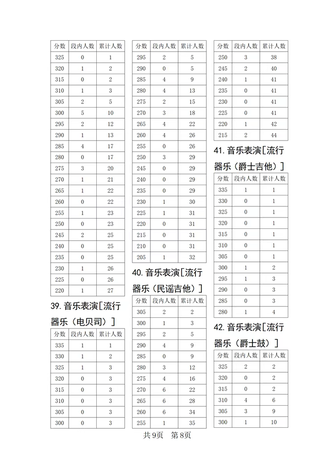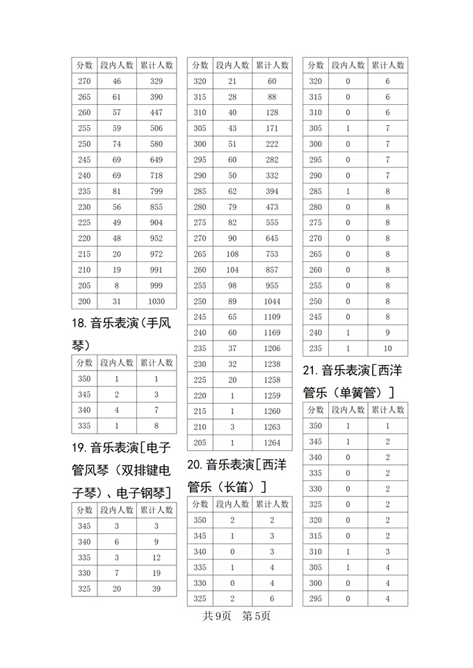 四川省2022年普通高校招生艺术类专业统考(音乐类)成绩五分段统计表