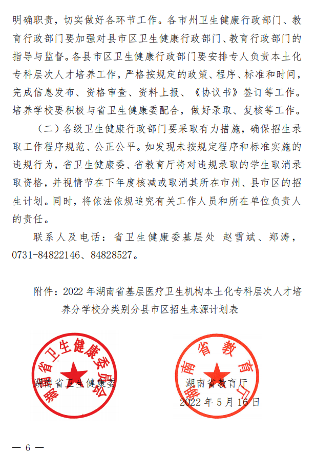 湖南省教育厅公布关于做好2022年基层医疗卫生机构本土化专科层次人才培养工作的通知