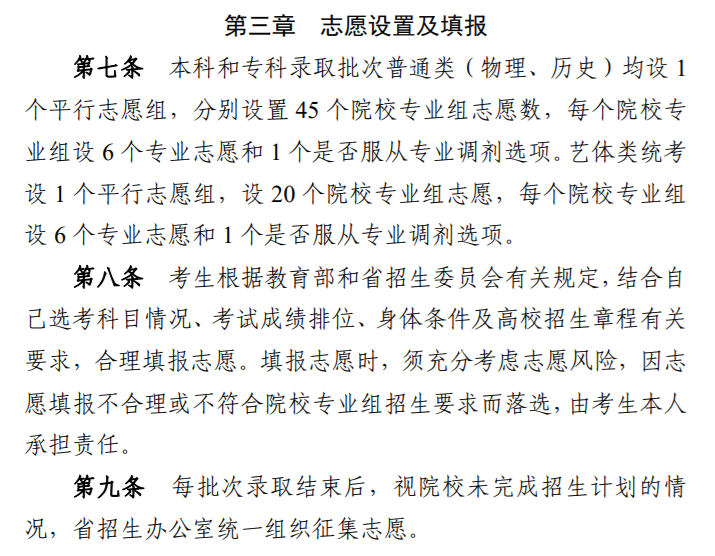 (4)本科一批次:经批准参加本批次录取的本科高校(专业)。设置一个志愿组9个平行志愿,每个志愿可填报6个专业。