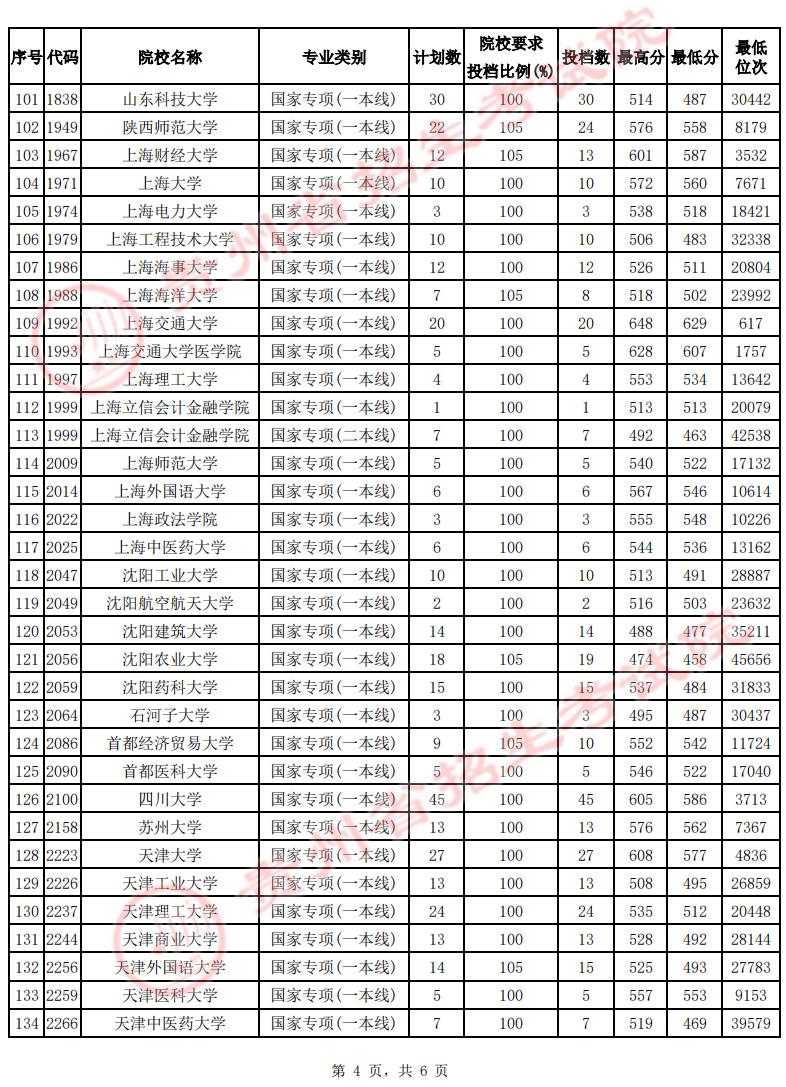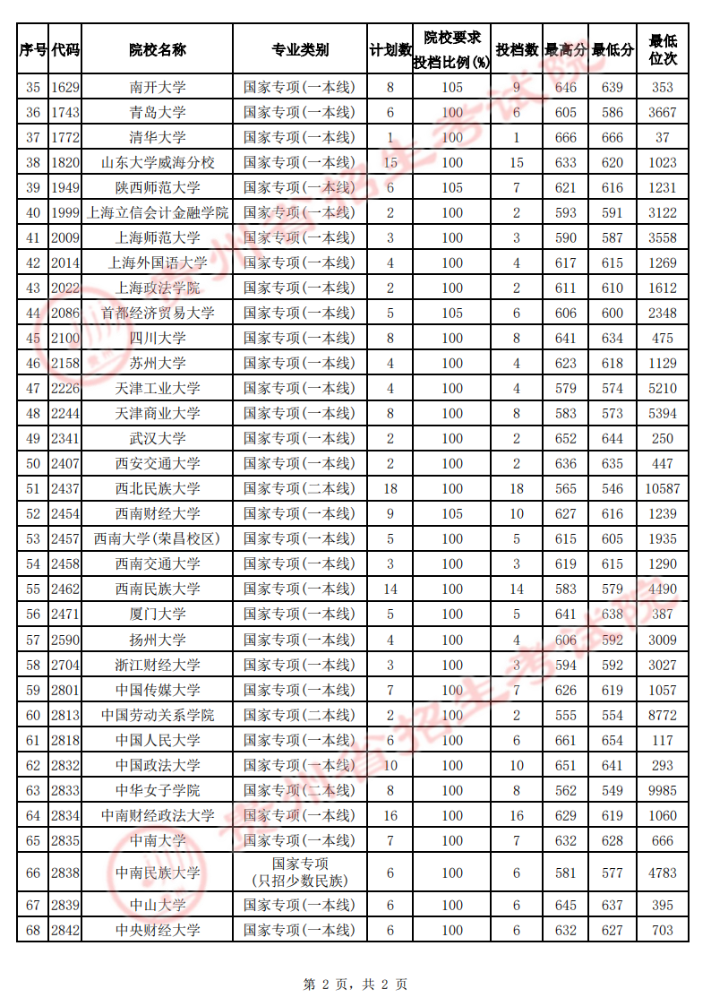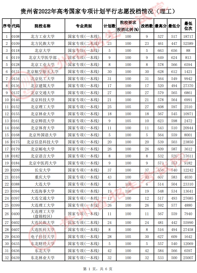 贵州省2022年高考国家专项计划平行志愿投档情况