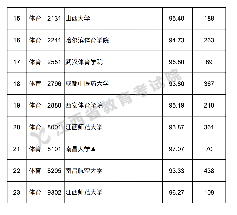 江西省2022年普通高校招生第一批本科体育类投档情况统计表公布!