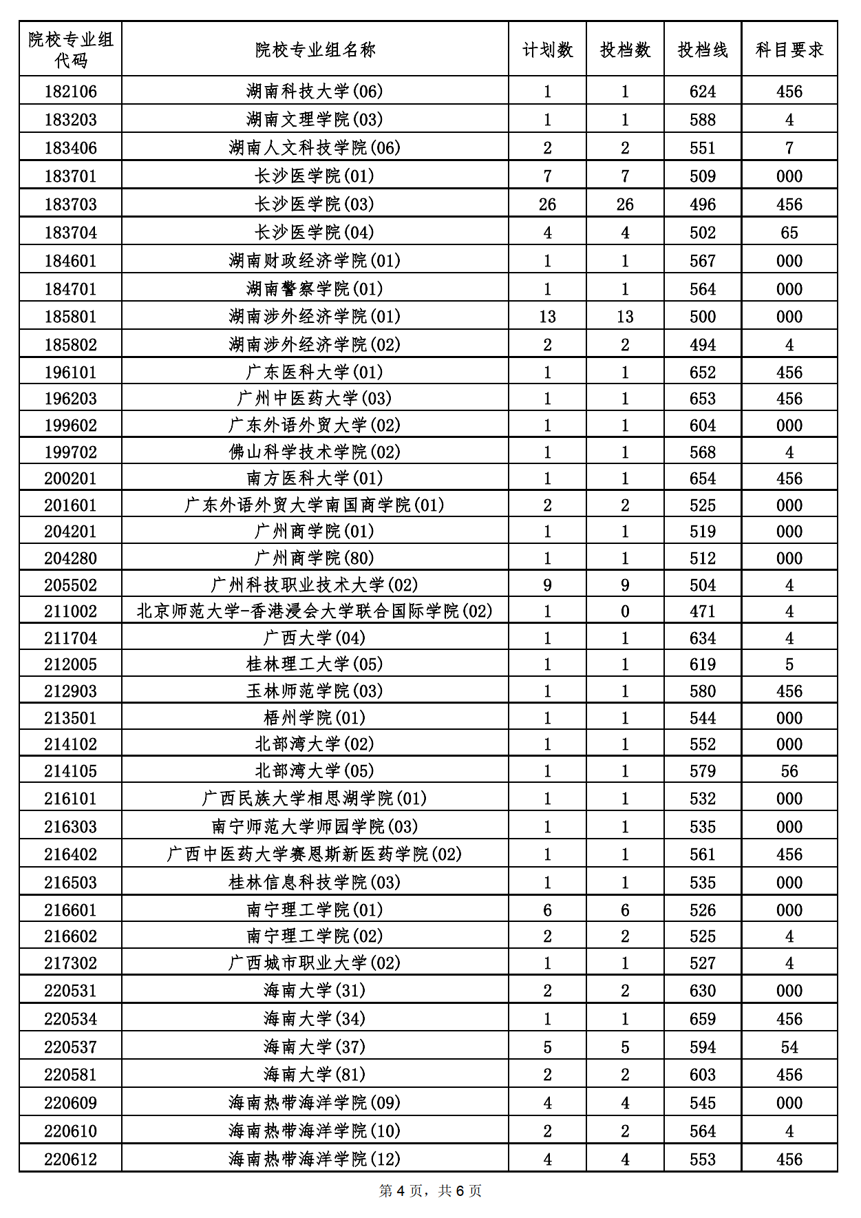 海南:2022普招本科普通批(含少数民族班和预科班)院校专业组征集志愿平行投档分数线