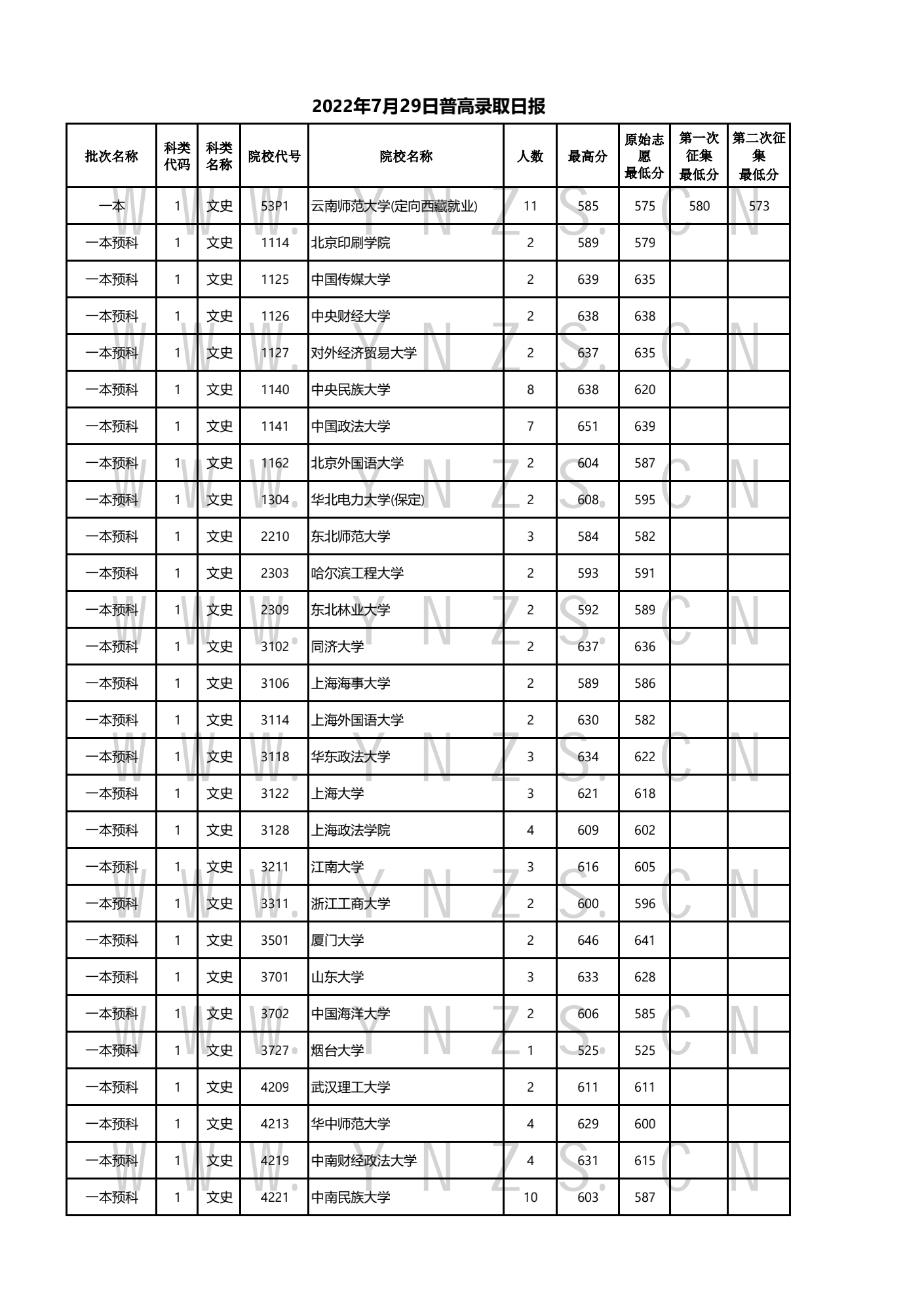 云南:2022年7月28日-30日录取情况