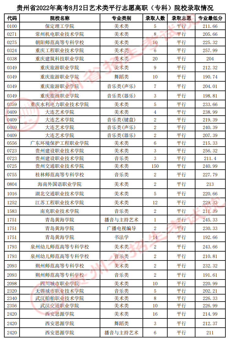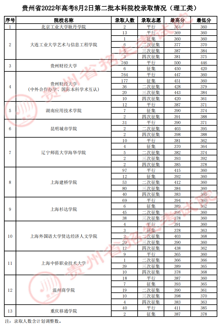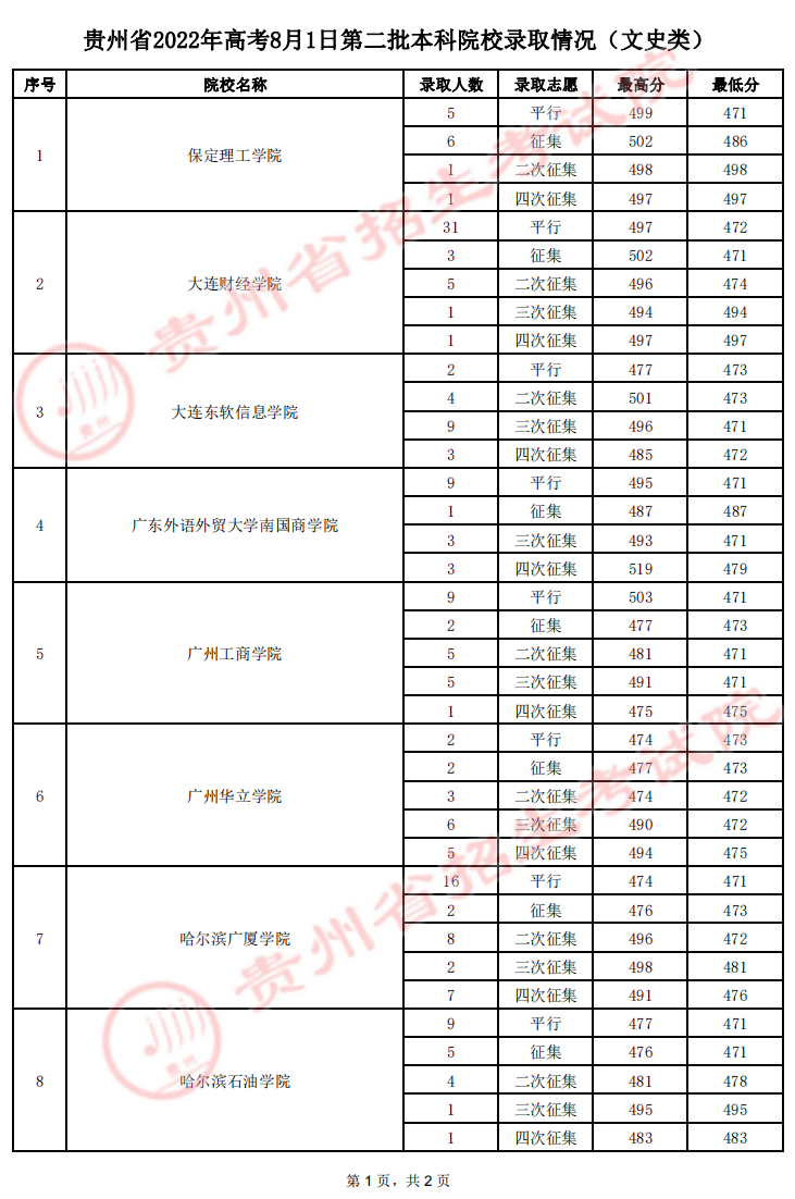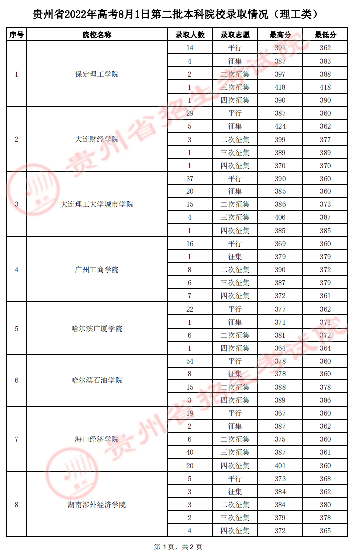 贵州省2022年高考8月1日和2日的录取情况公布!