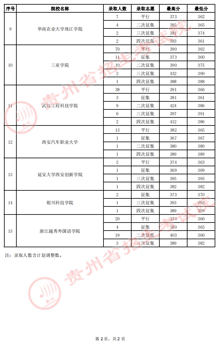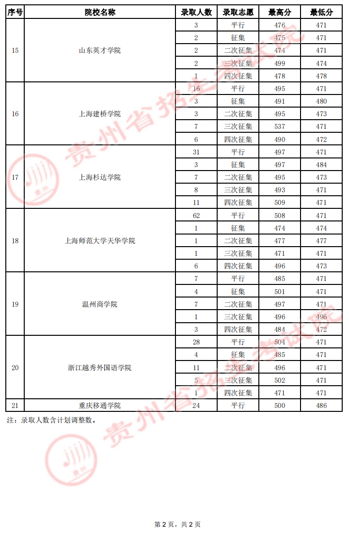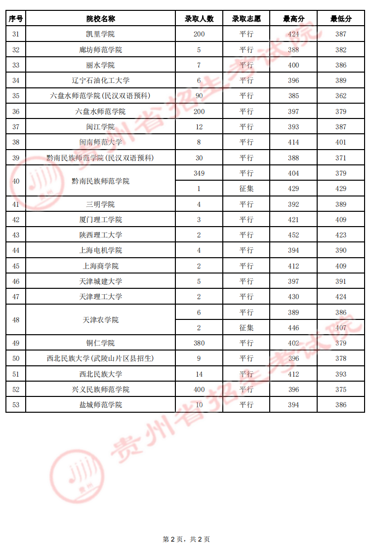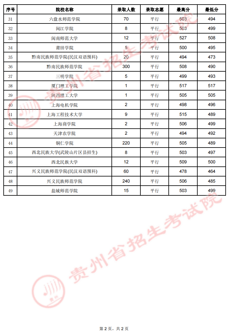 贵州省2022年高考8月1日和2日的录取情况公布!