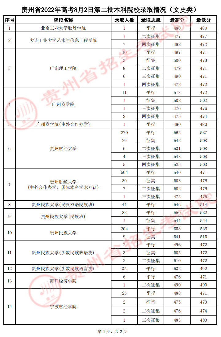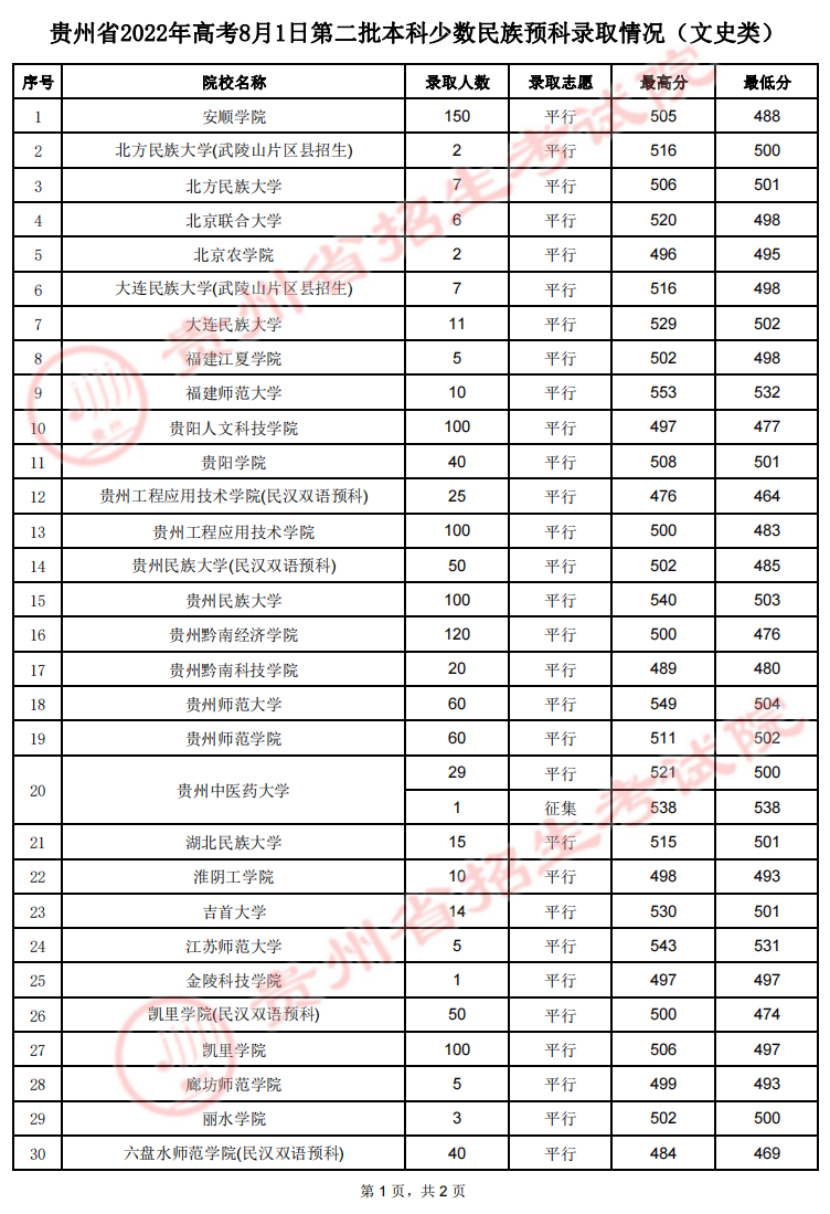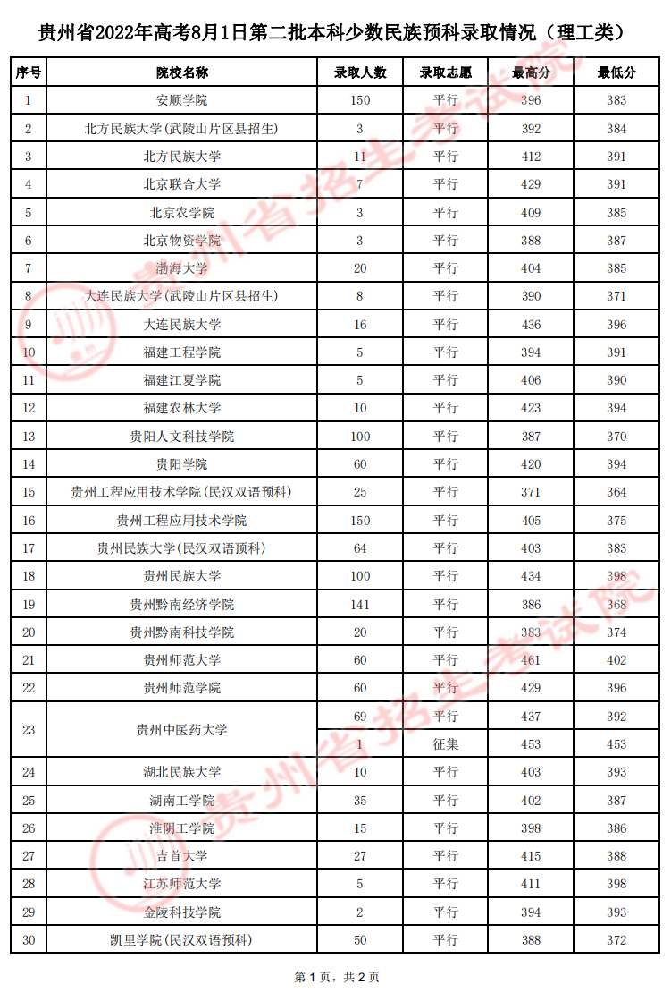 贵州省2022年高考8月1日和2日的录取情况公布!贵州省2022年高考8月2日录取情况公布!