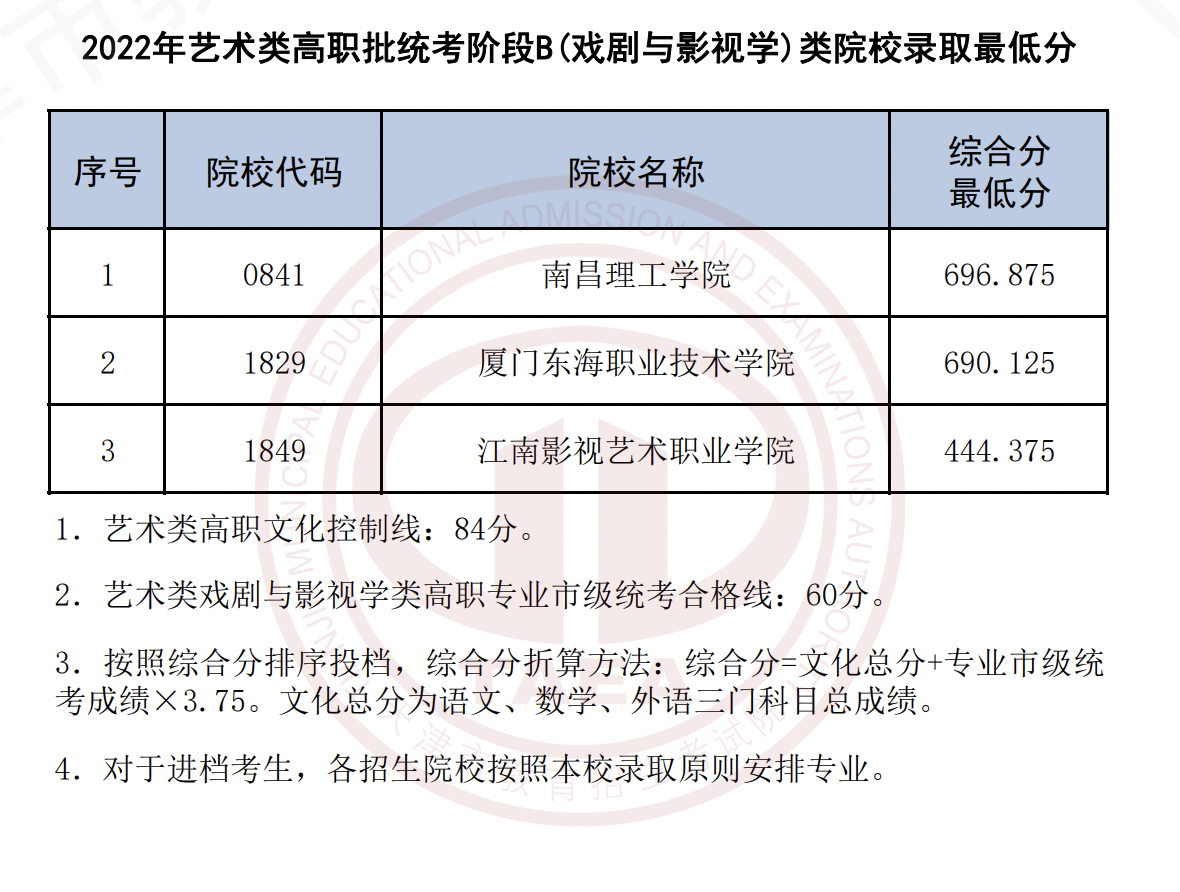 2022年艺术类高职批统考阶段A(美术与设计学)类院校录取最低分