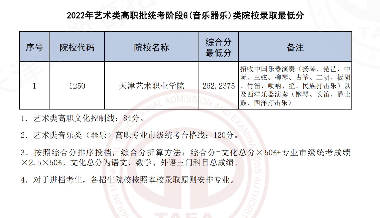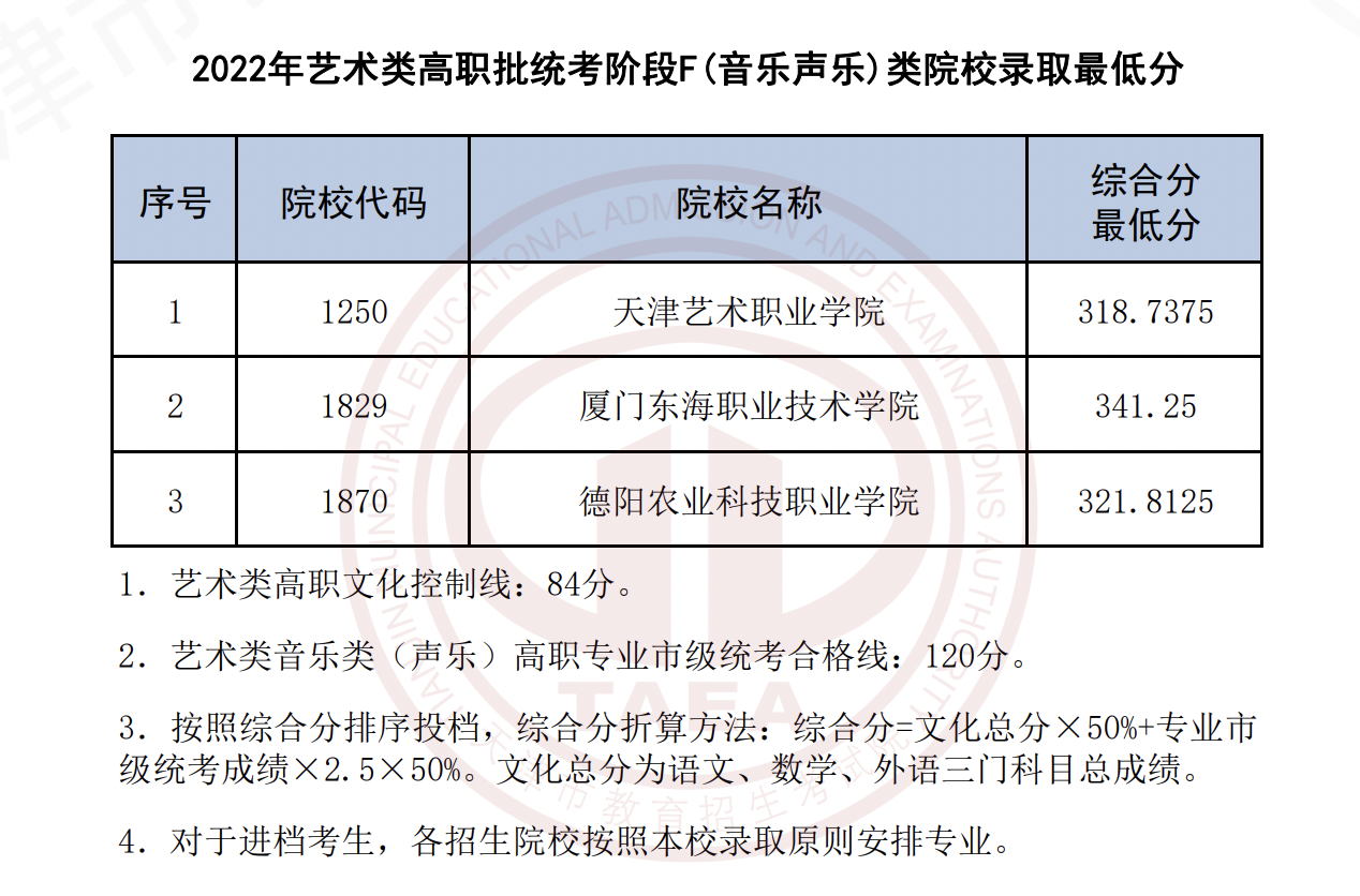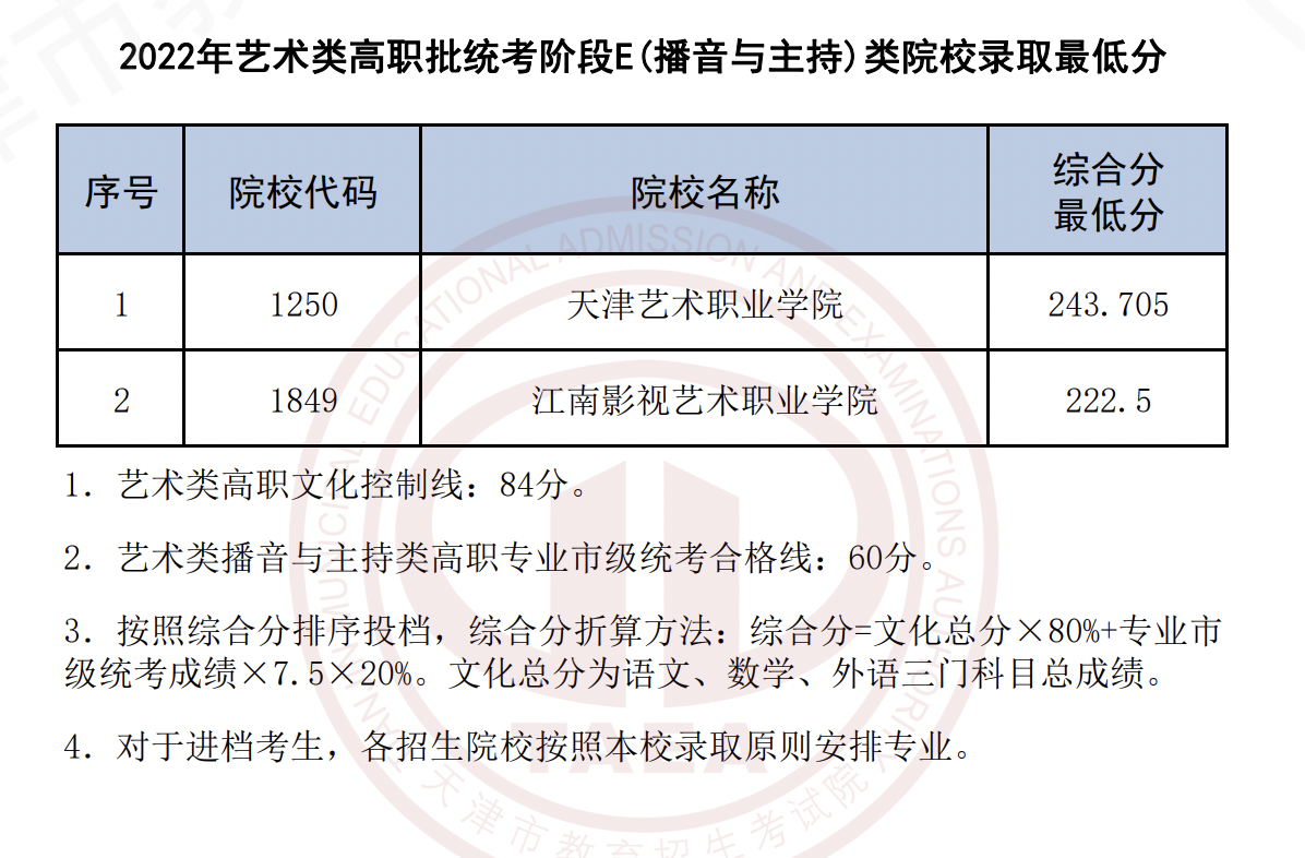 天津:2022年艺体类及普通类提前高职(专科)批投档分数线