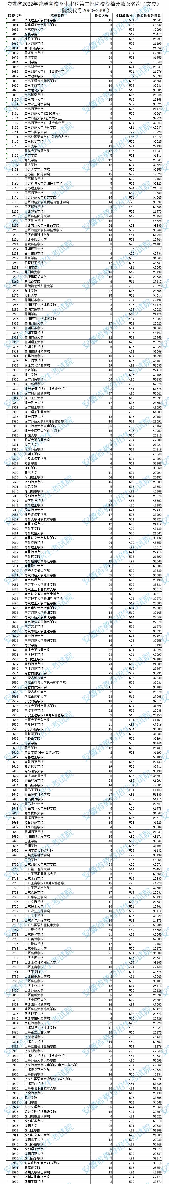 安徽省2022年普通高校招生本科第二批院校投档分数及名次(文史)(院校代号2050-2999)公布!