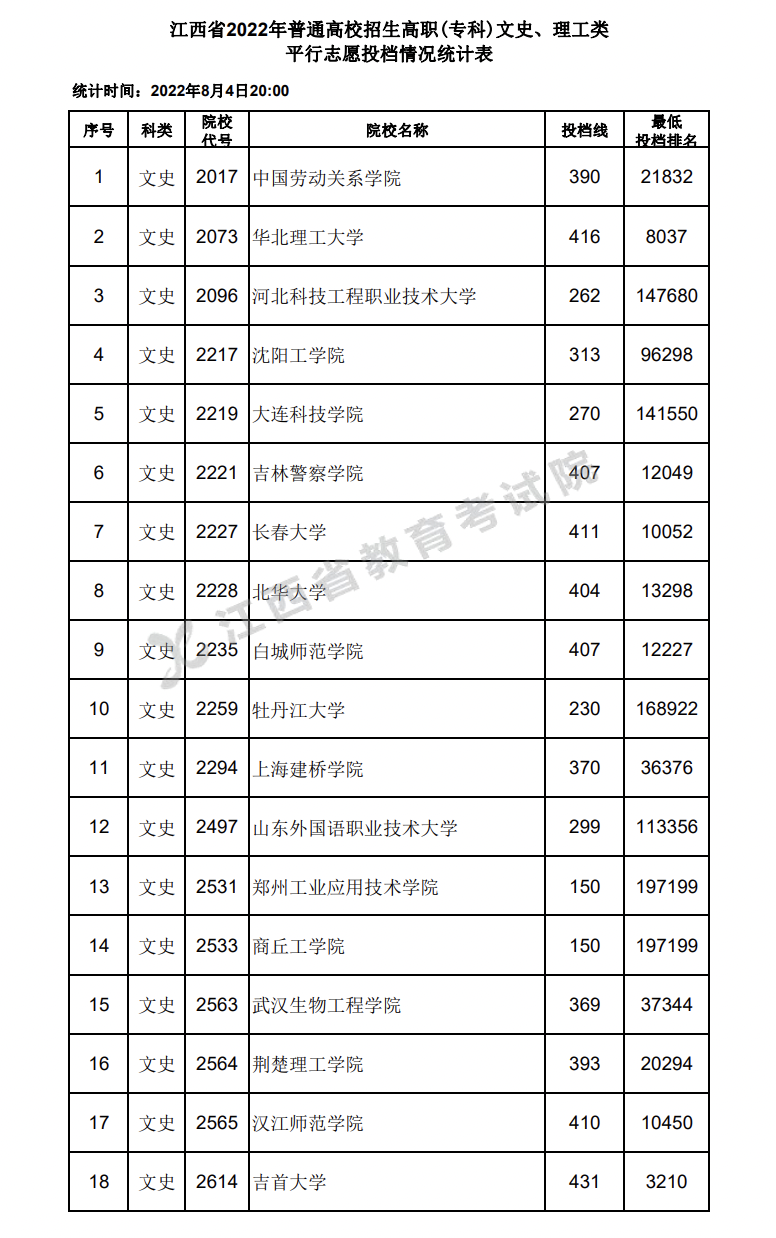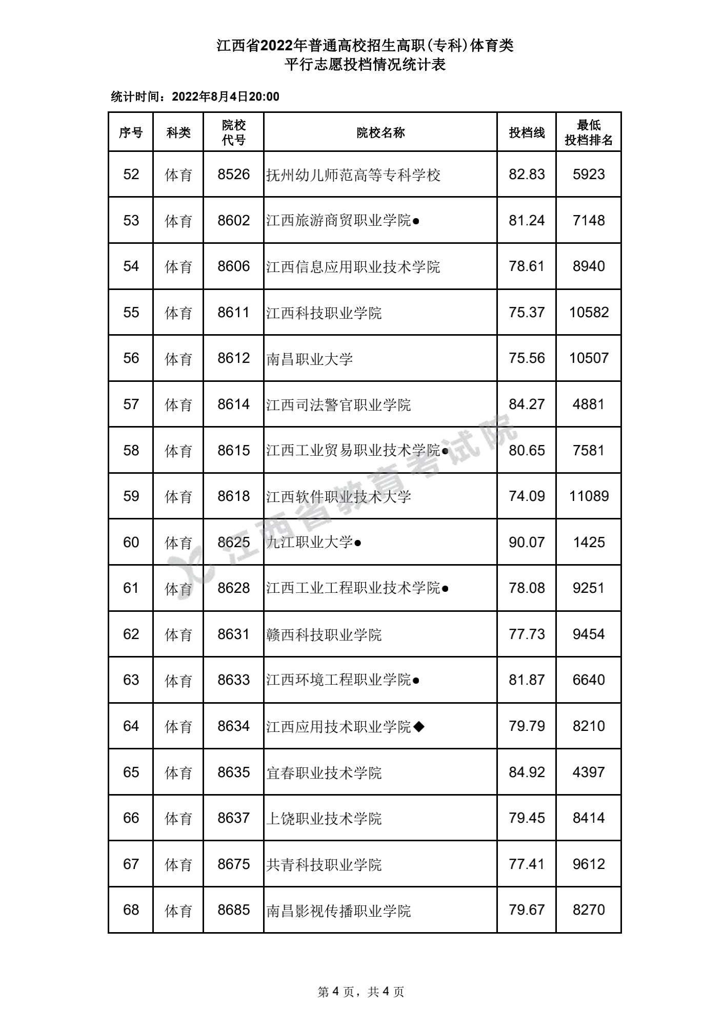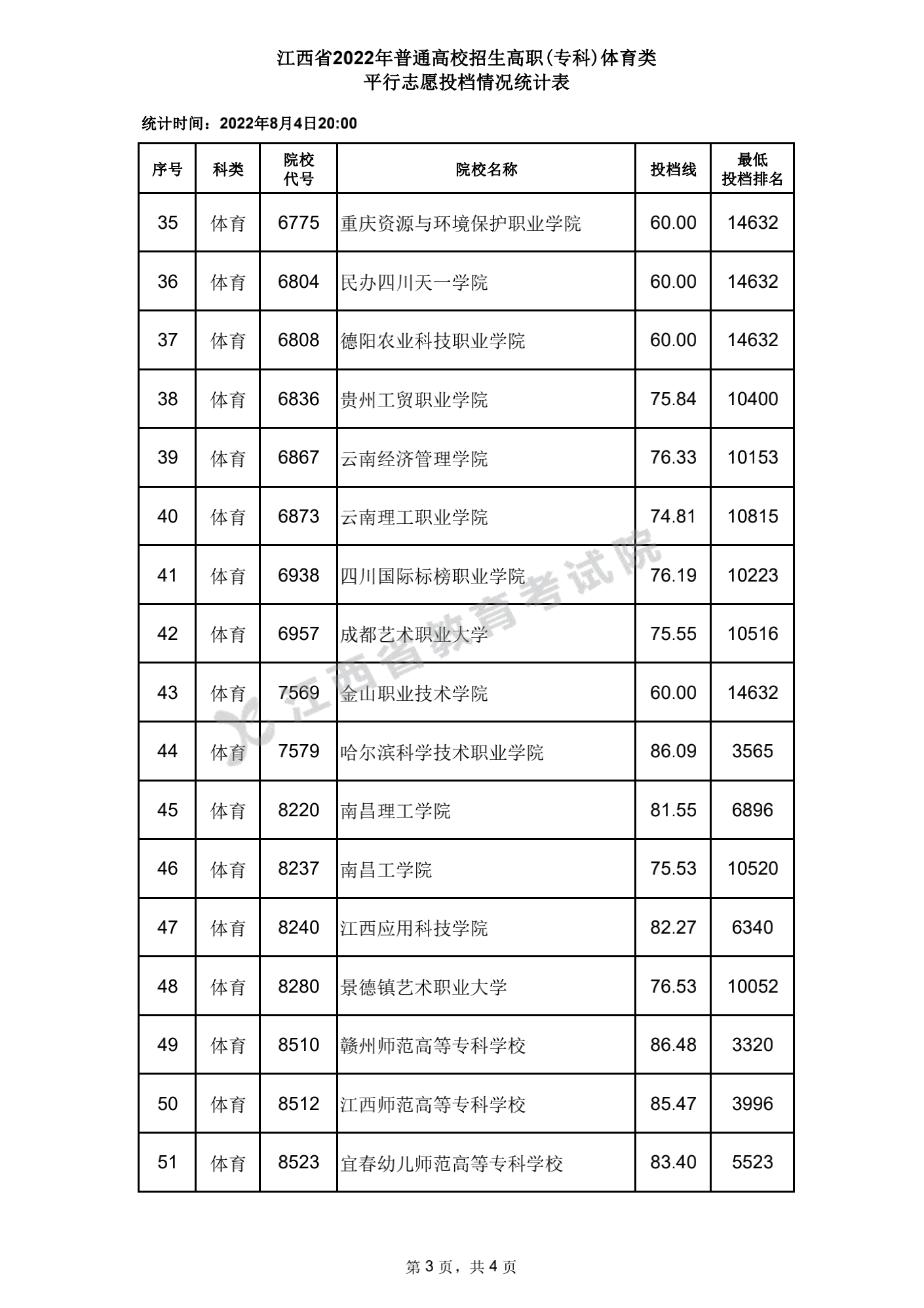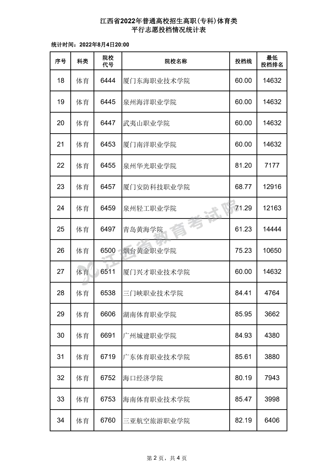 江西省2022年普通高校招生高职(专科)体育类平行志愿投档情况统计表公布!
