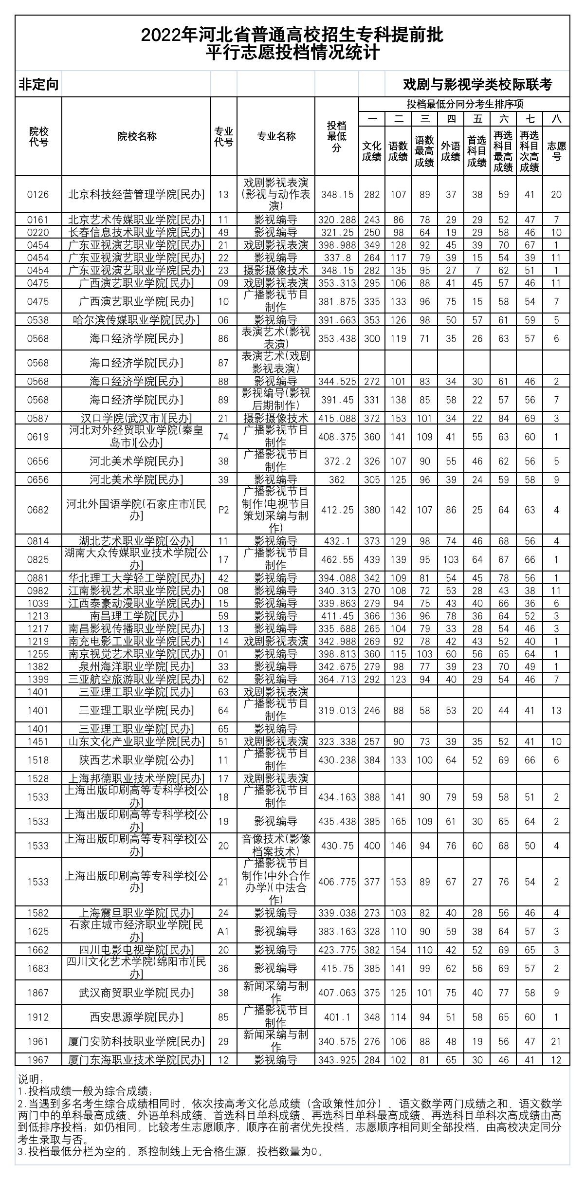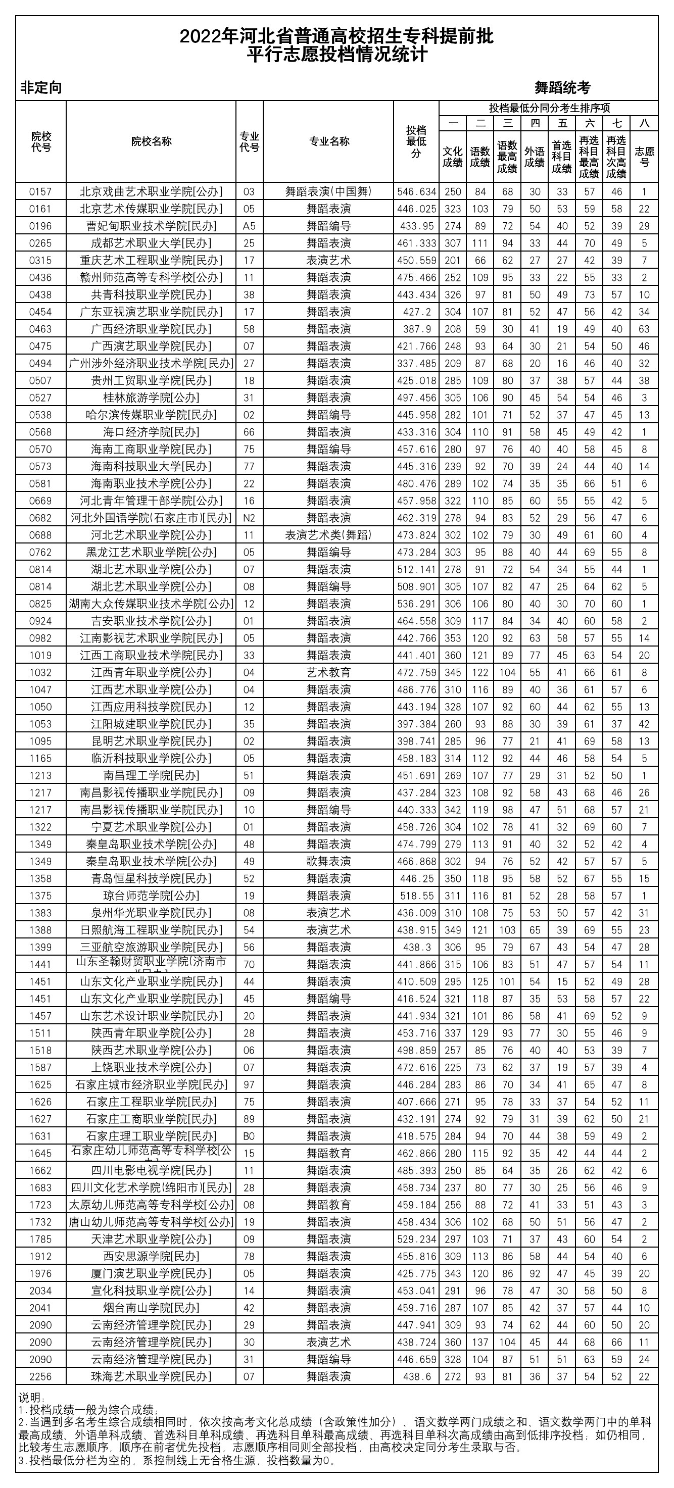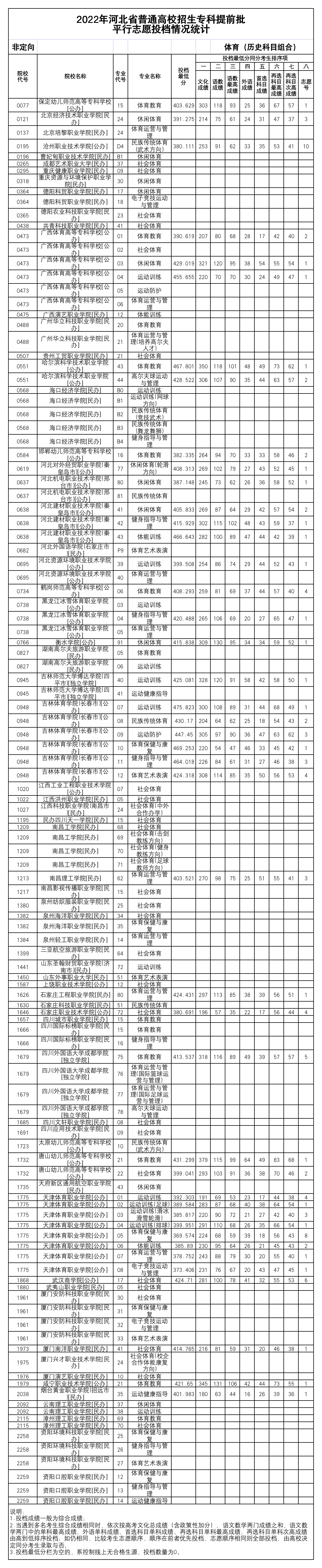 2022年河北省专科提前批、对口专科批平行志愿投档情况统计如下: