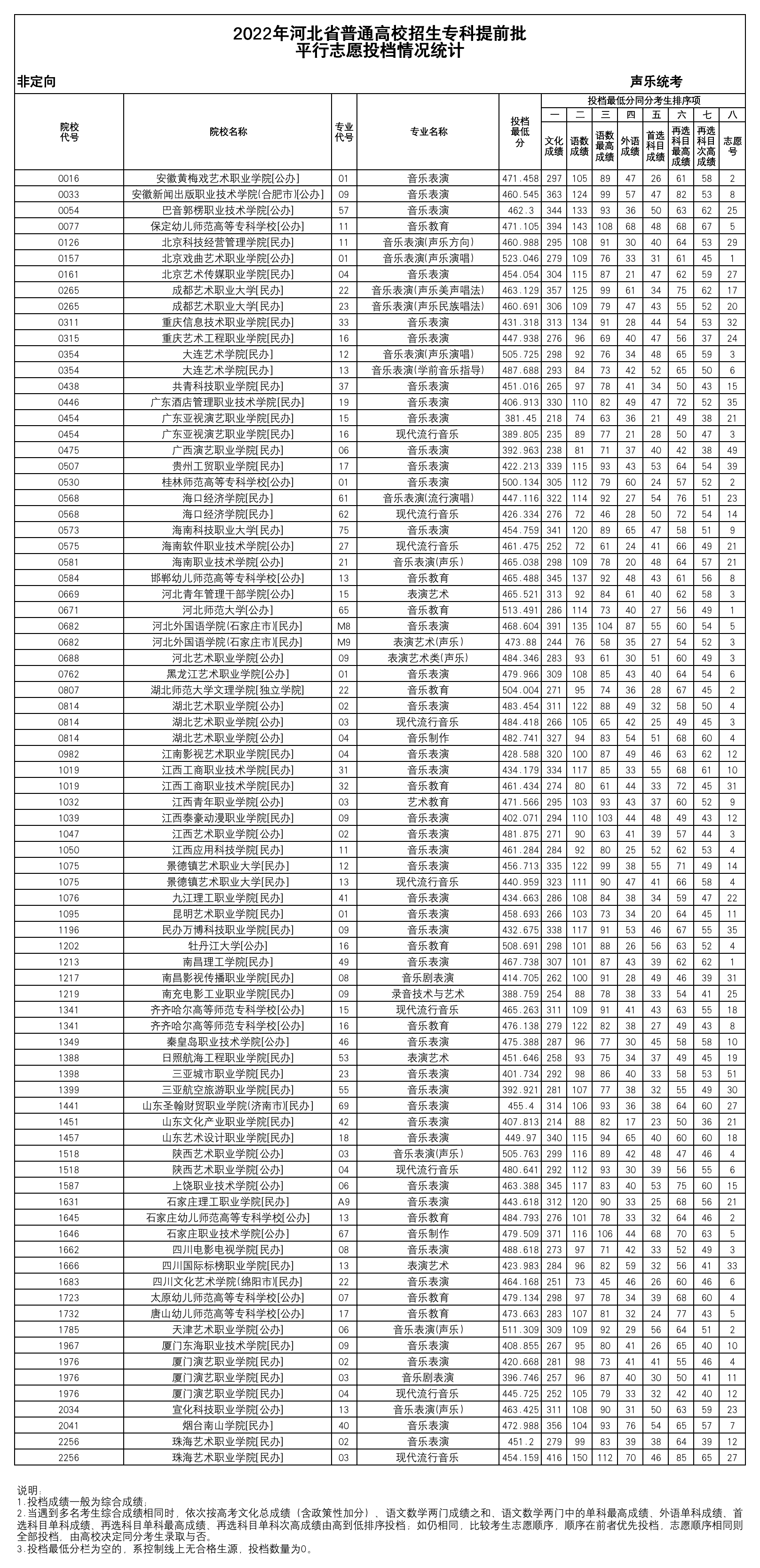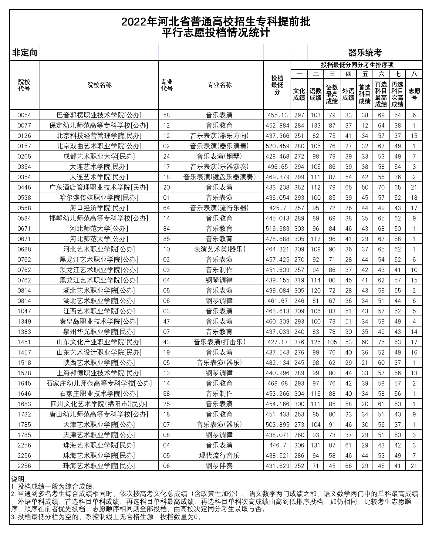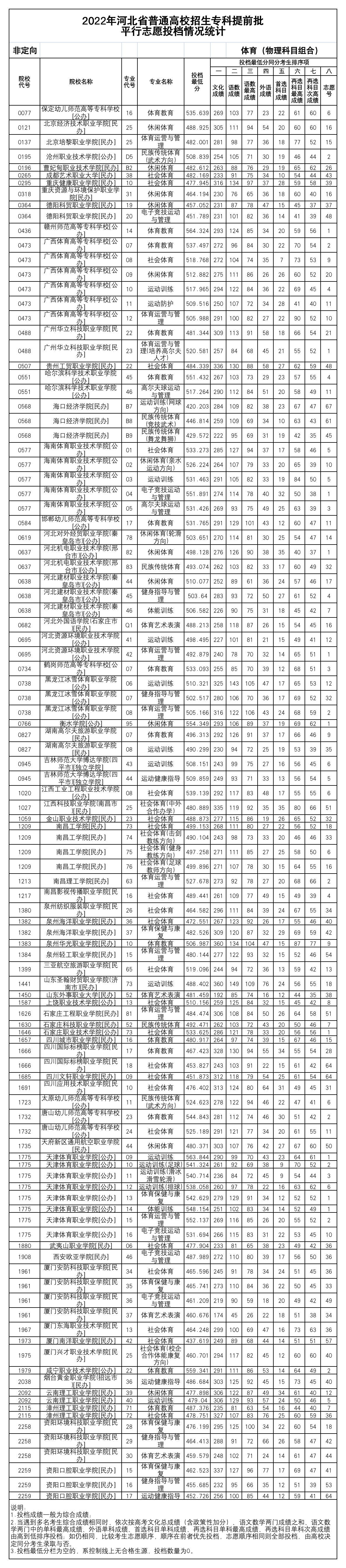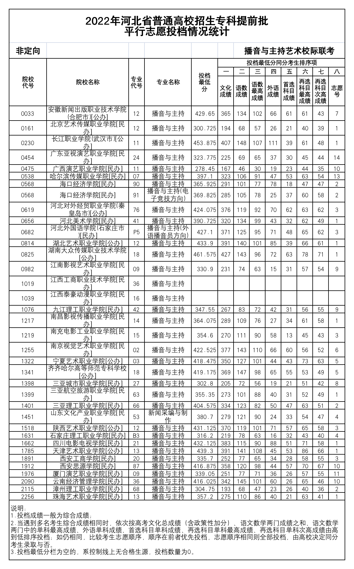 2022年河北省专科提前批、对口专科批平行志愿投档情况统计如下: