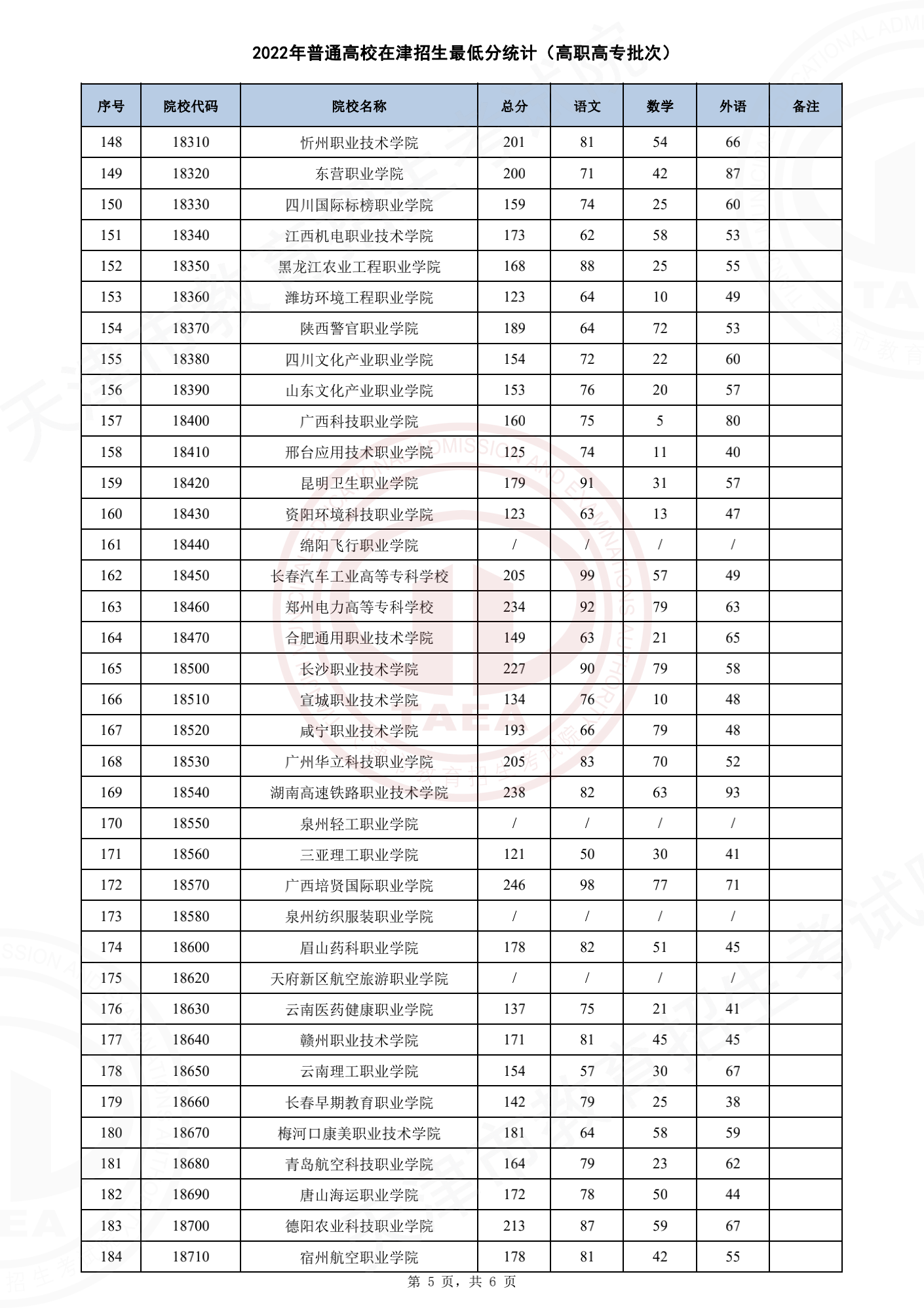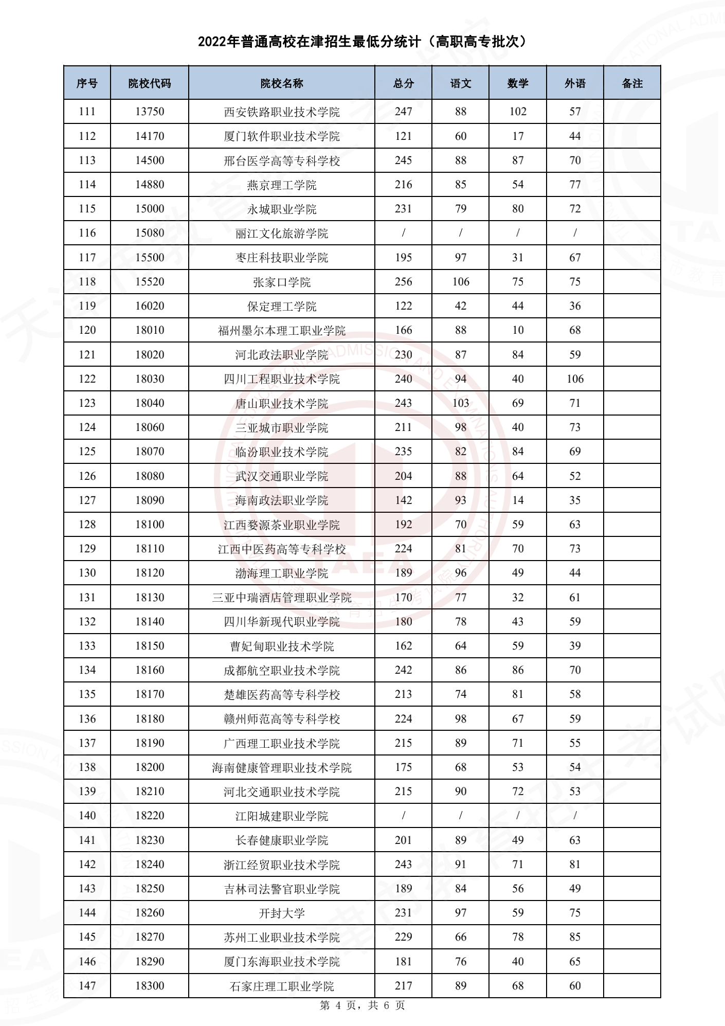 2022年普通高校在津招生最低分统计(普通类高职高专批次)公布!