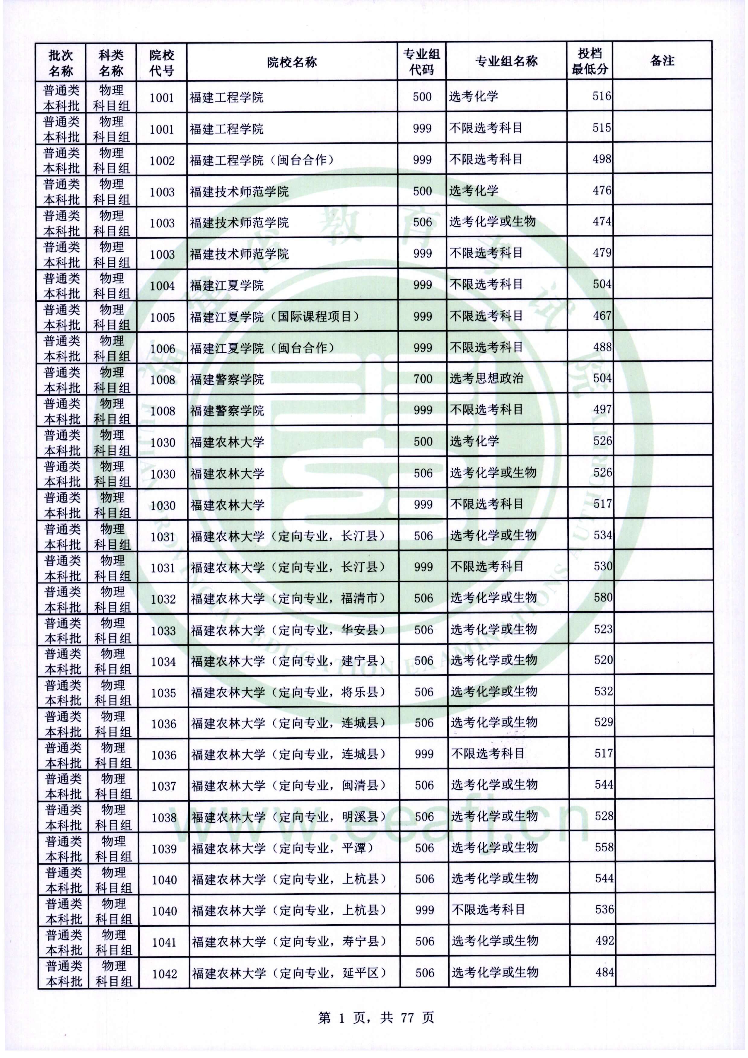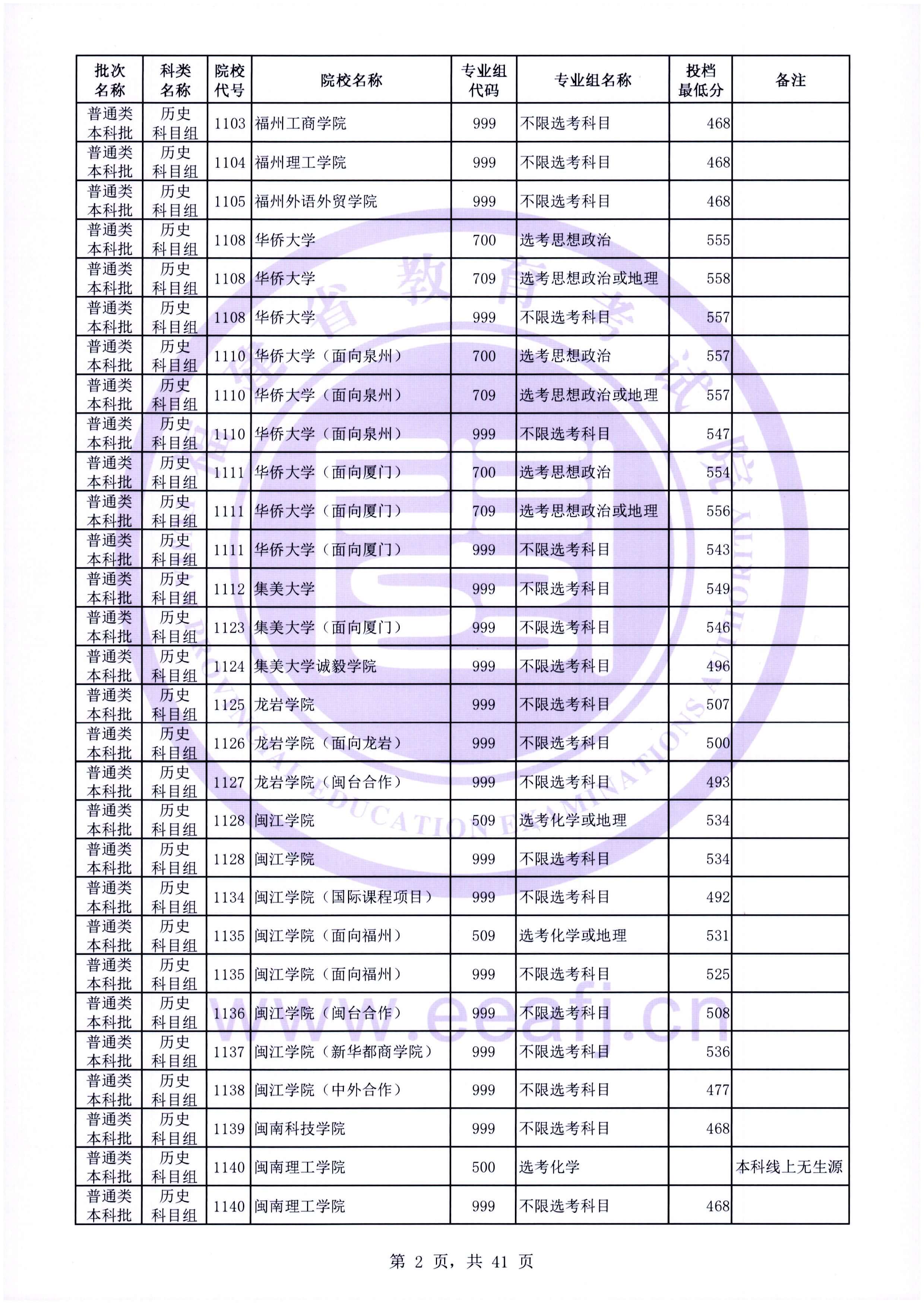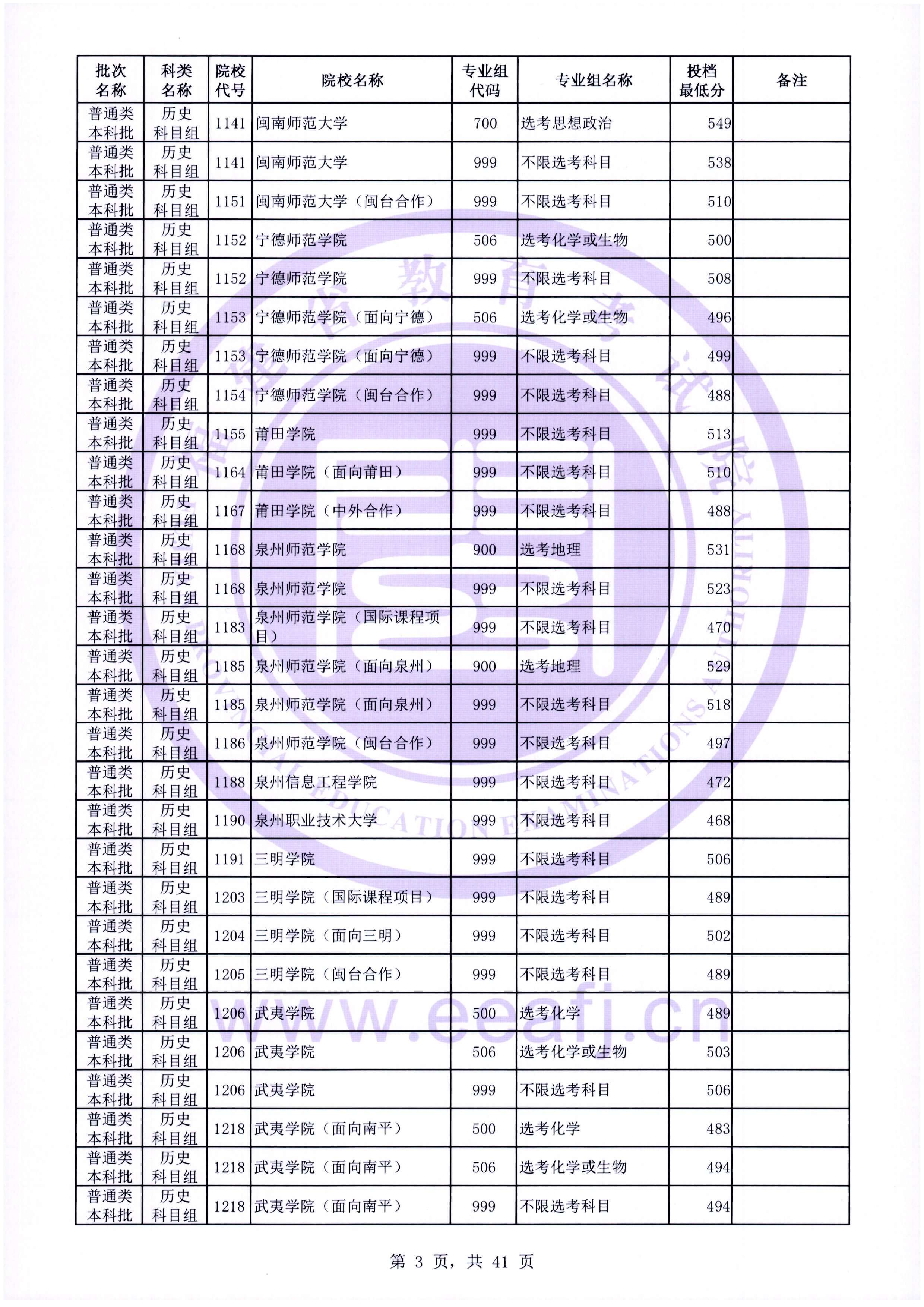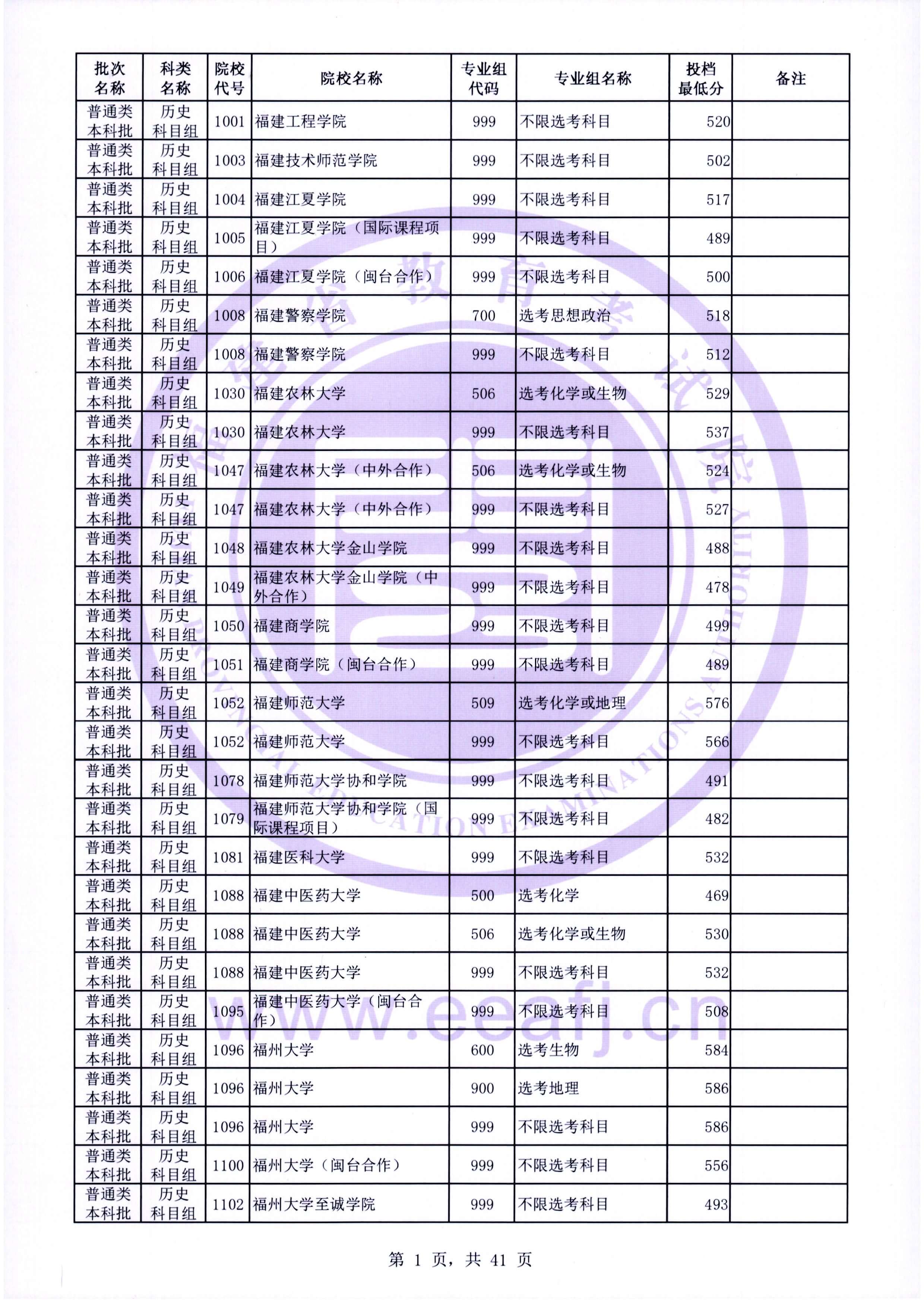 福建:2022年普通类本科批常规志愿院校专业组投档最低分