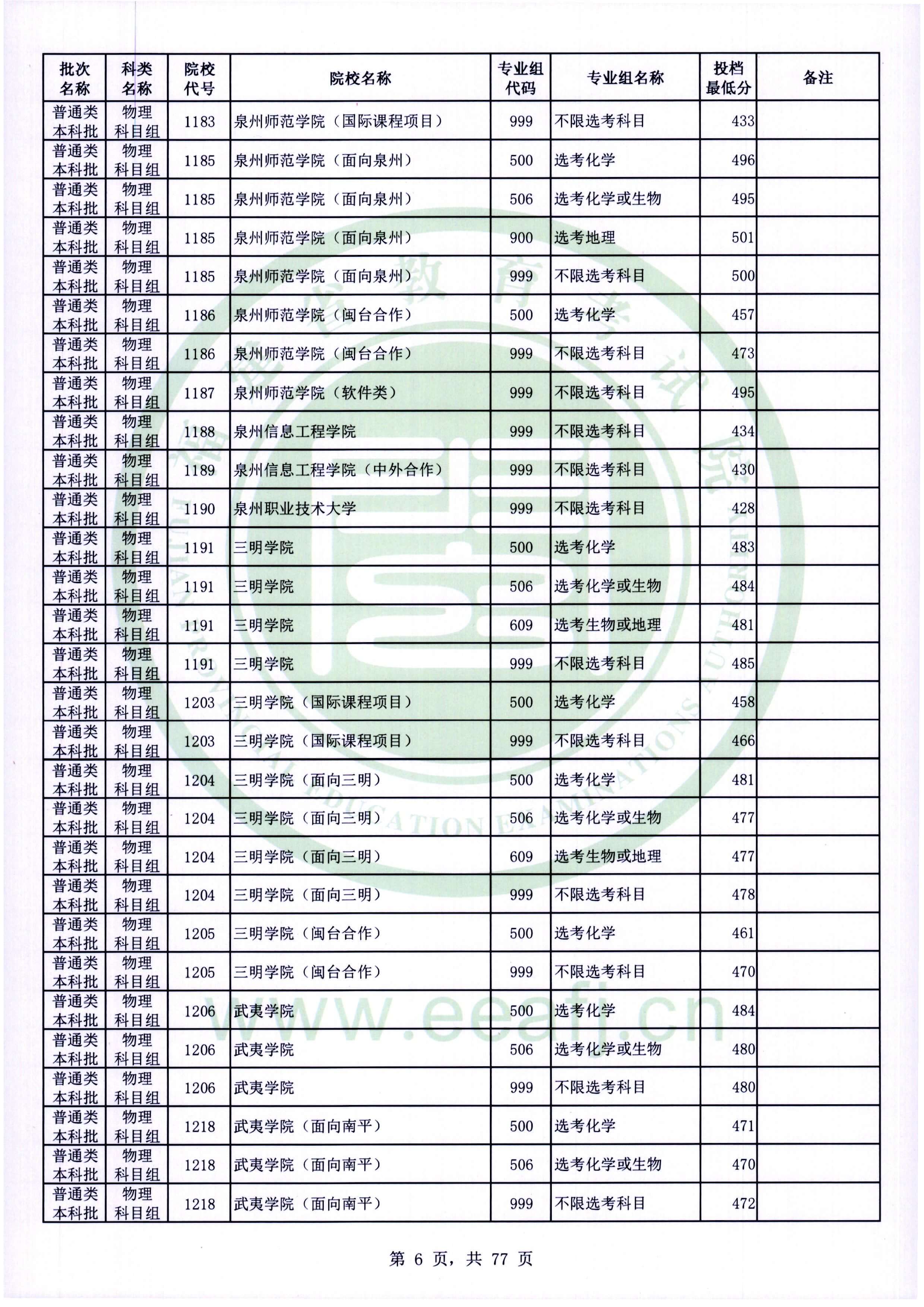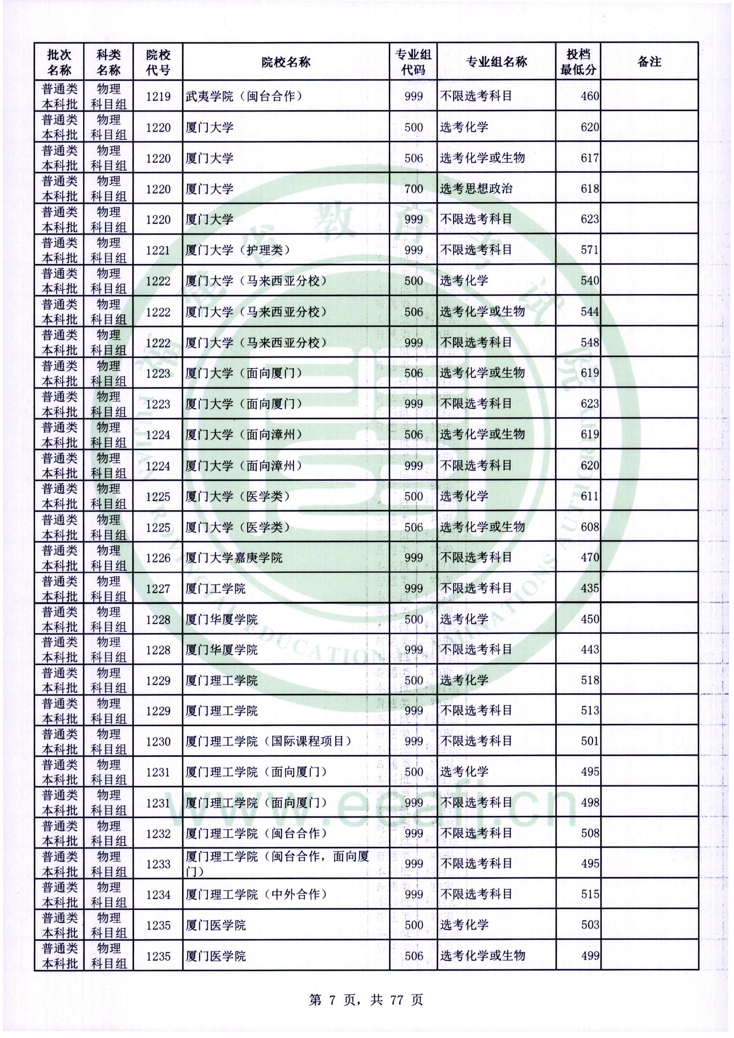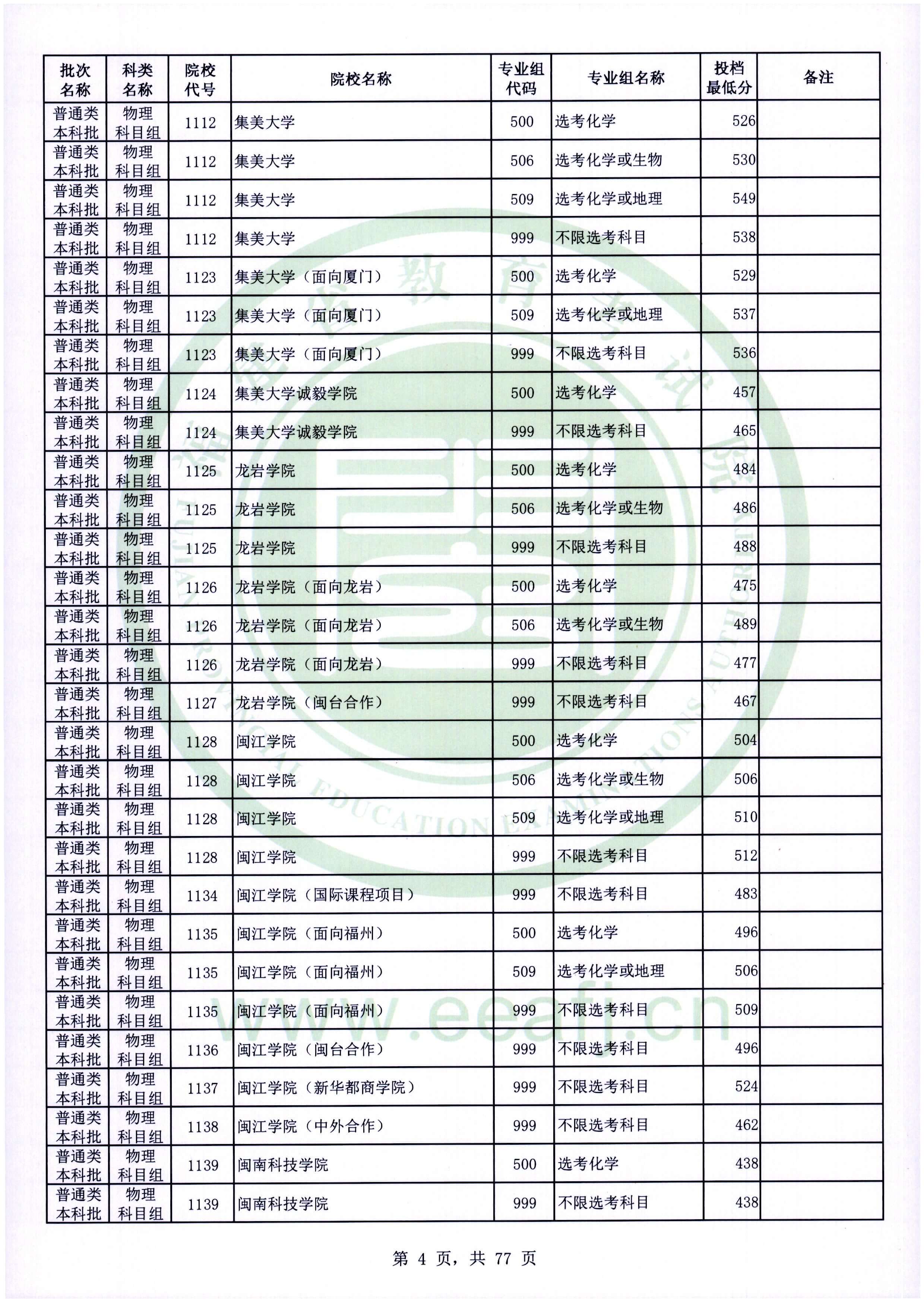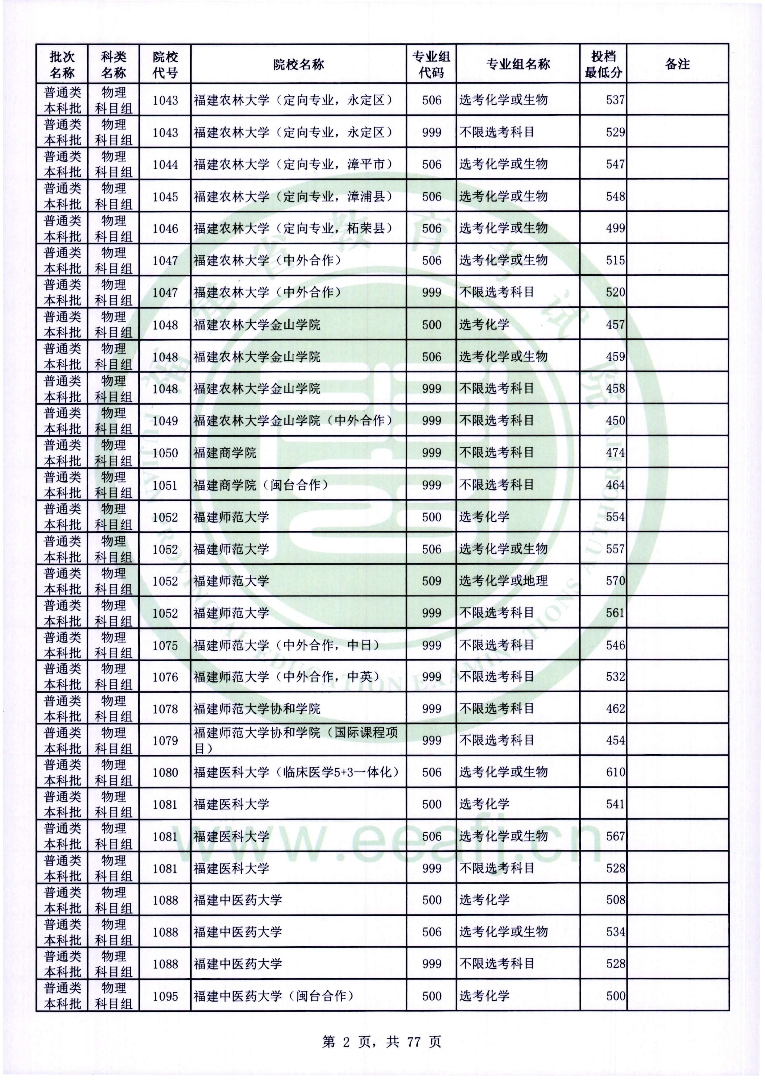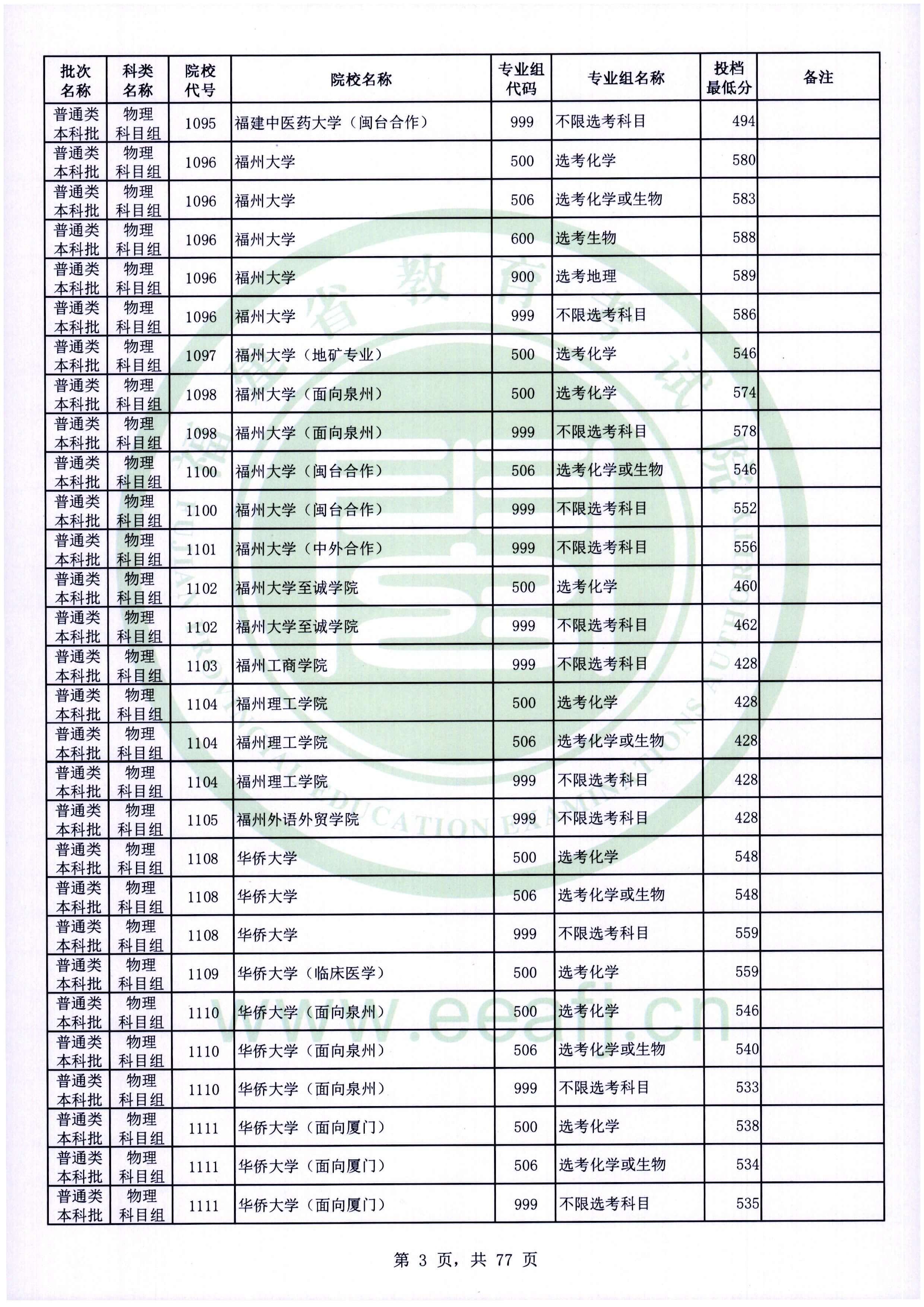福建:2022年普通类本科批常规志愿院校专业组投档最低分