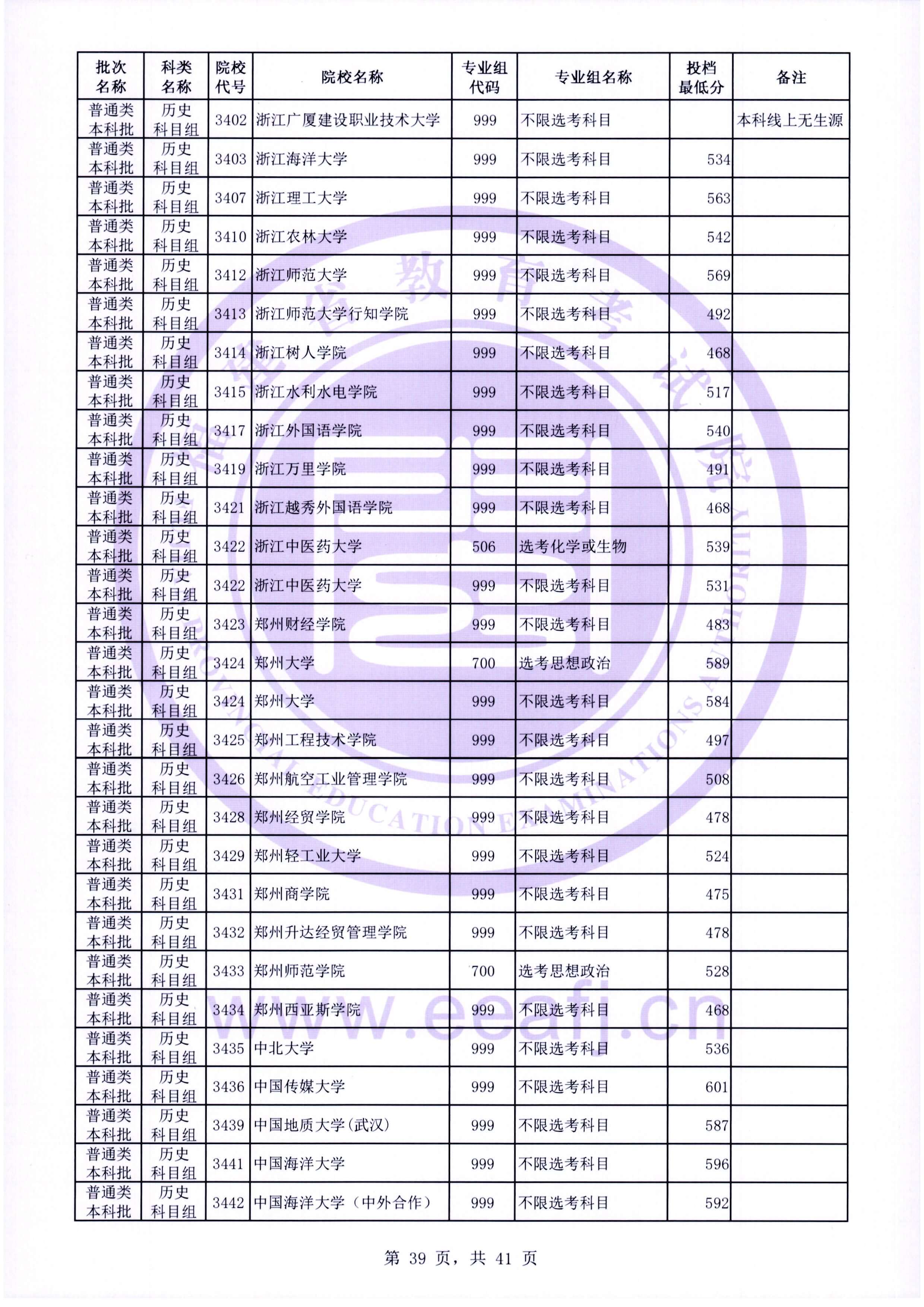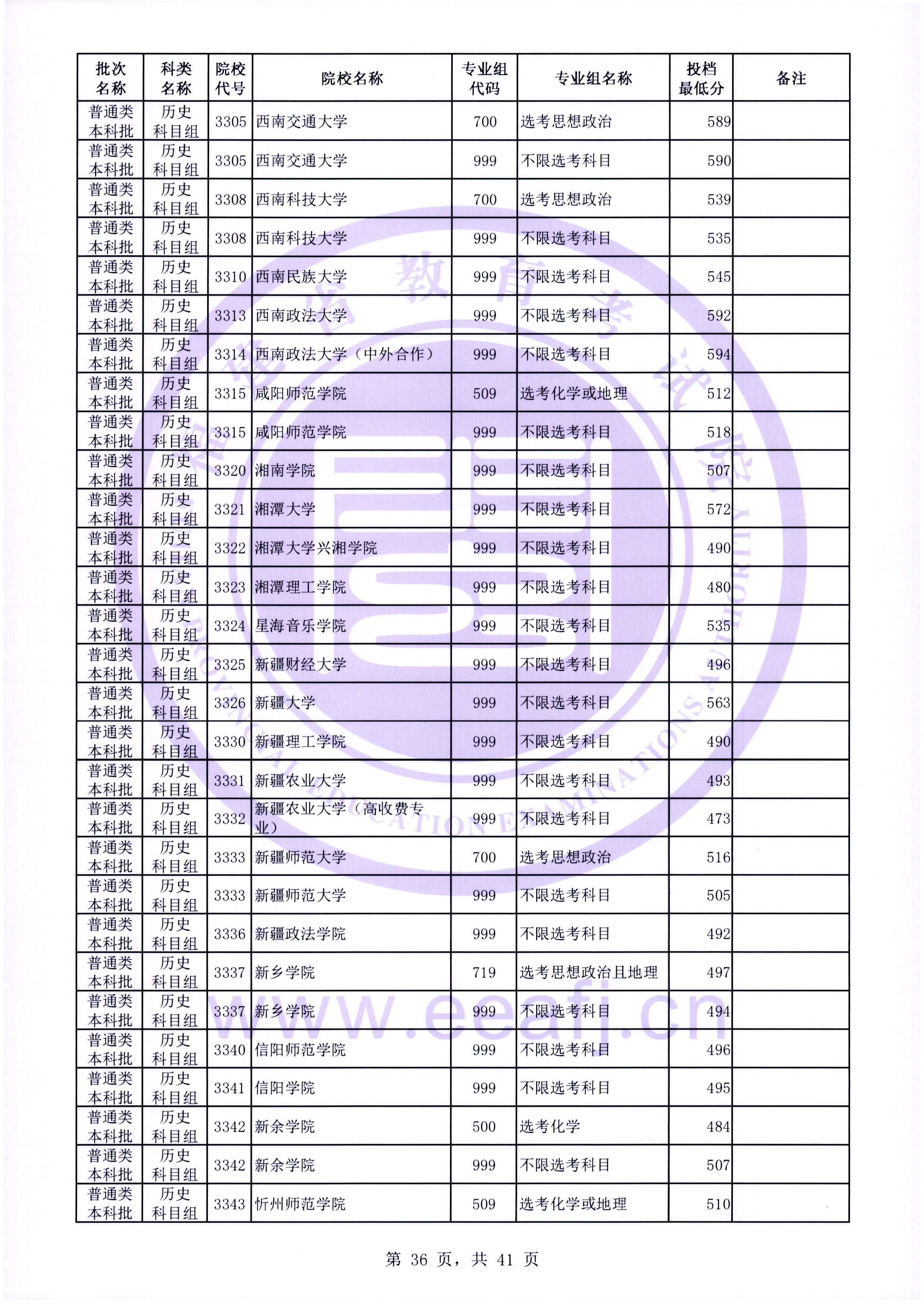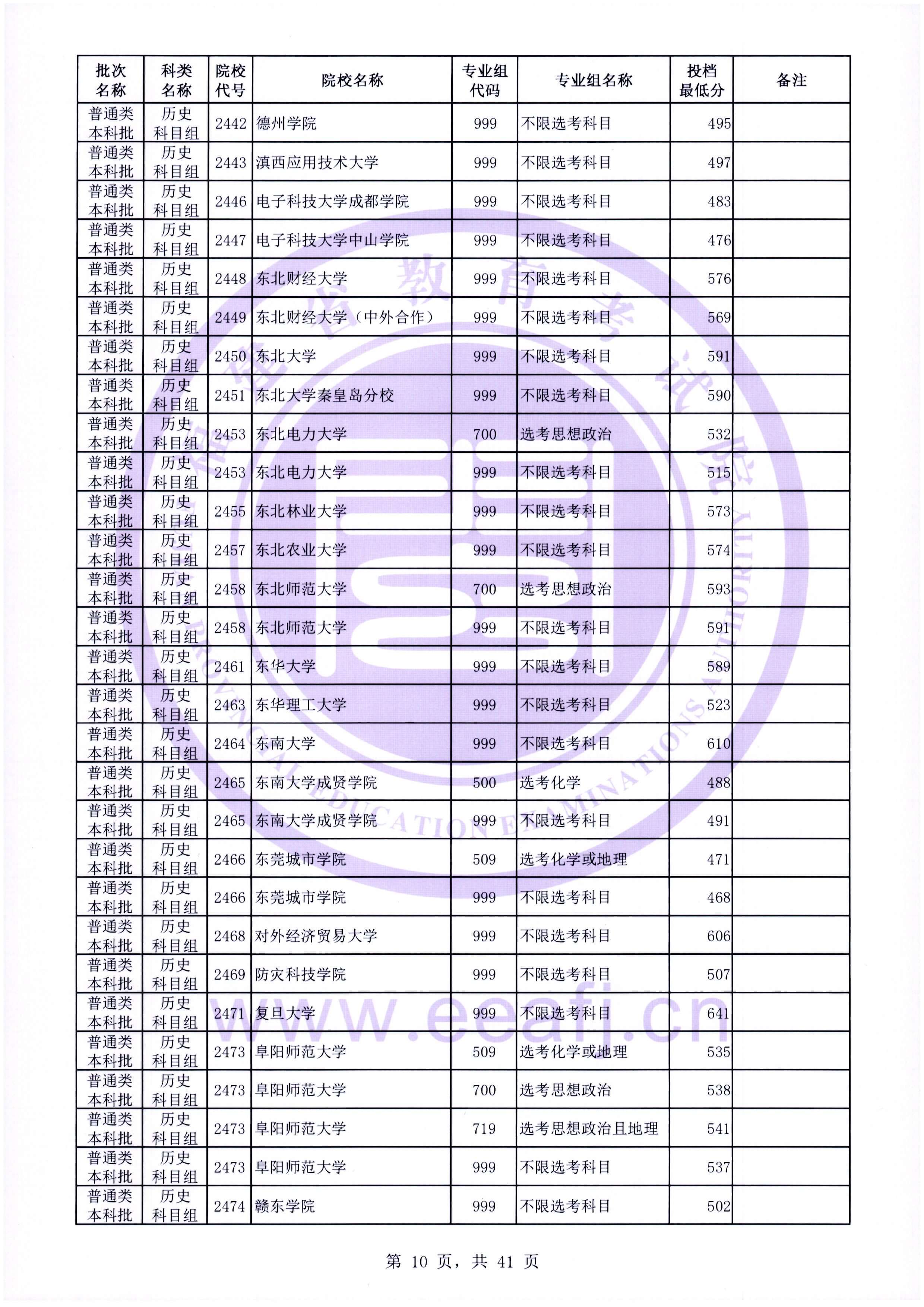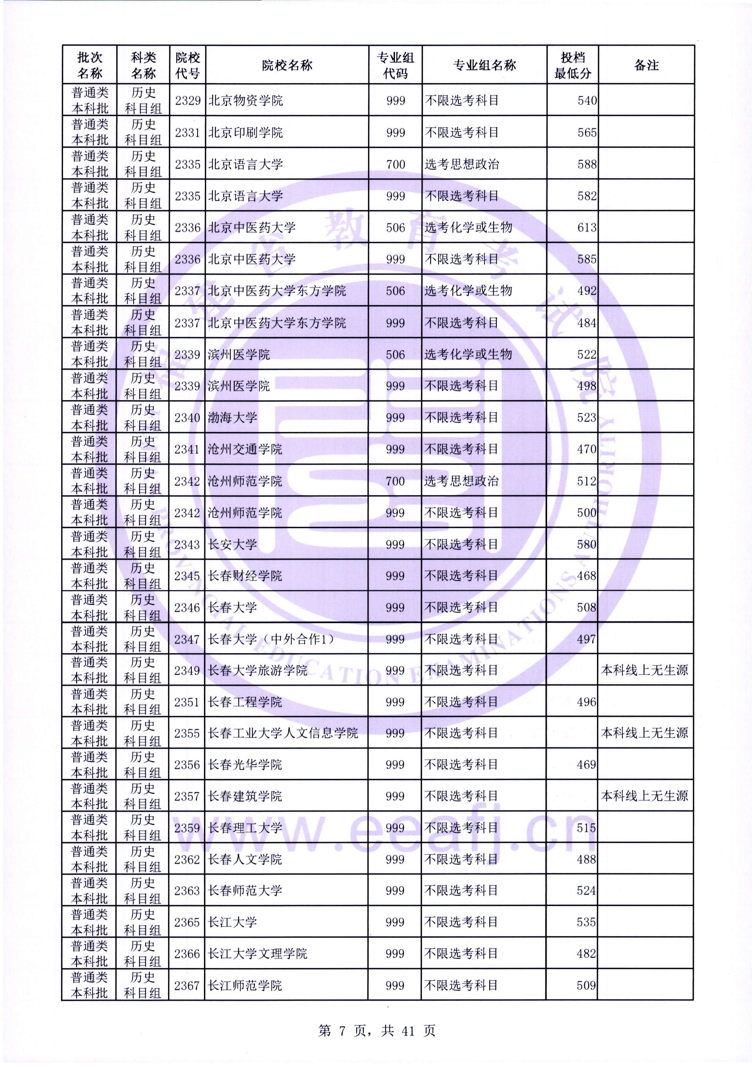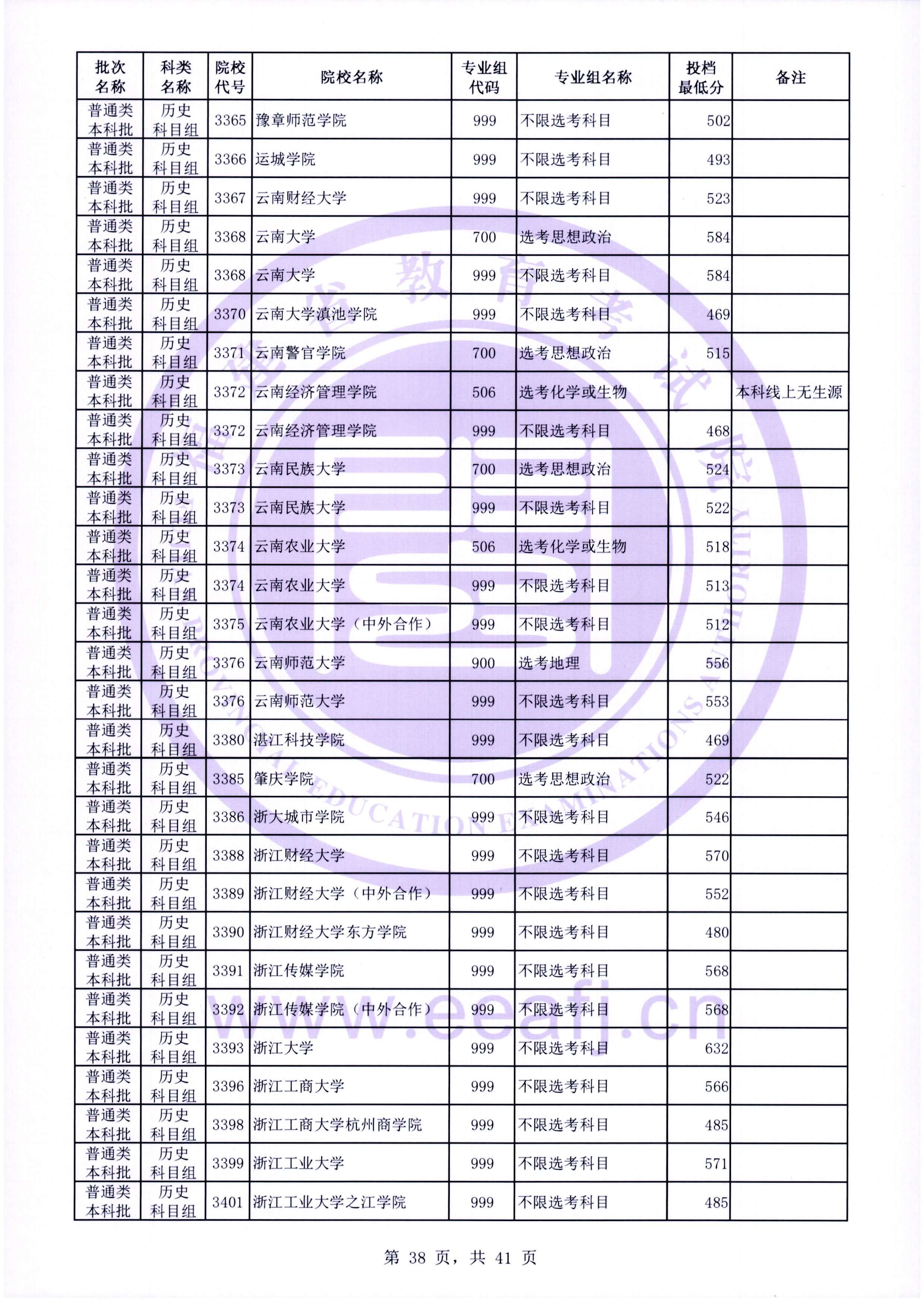 2022年普通类本科批常规志愿院校专业组投档最低分公布! 历史科目组