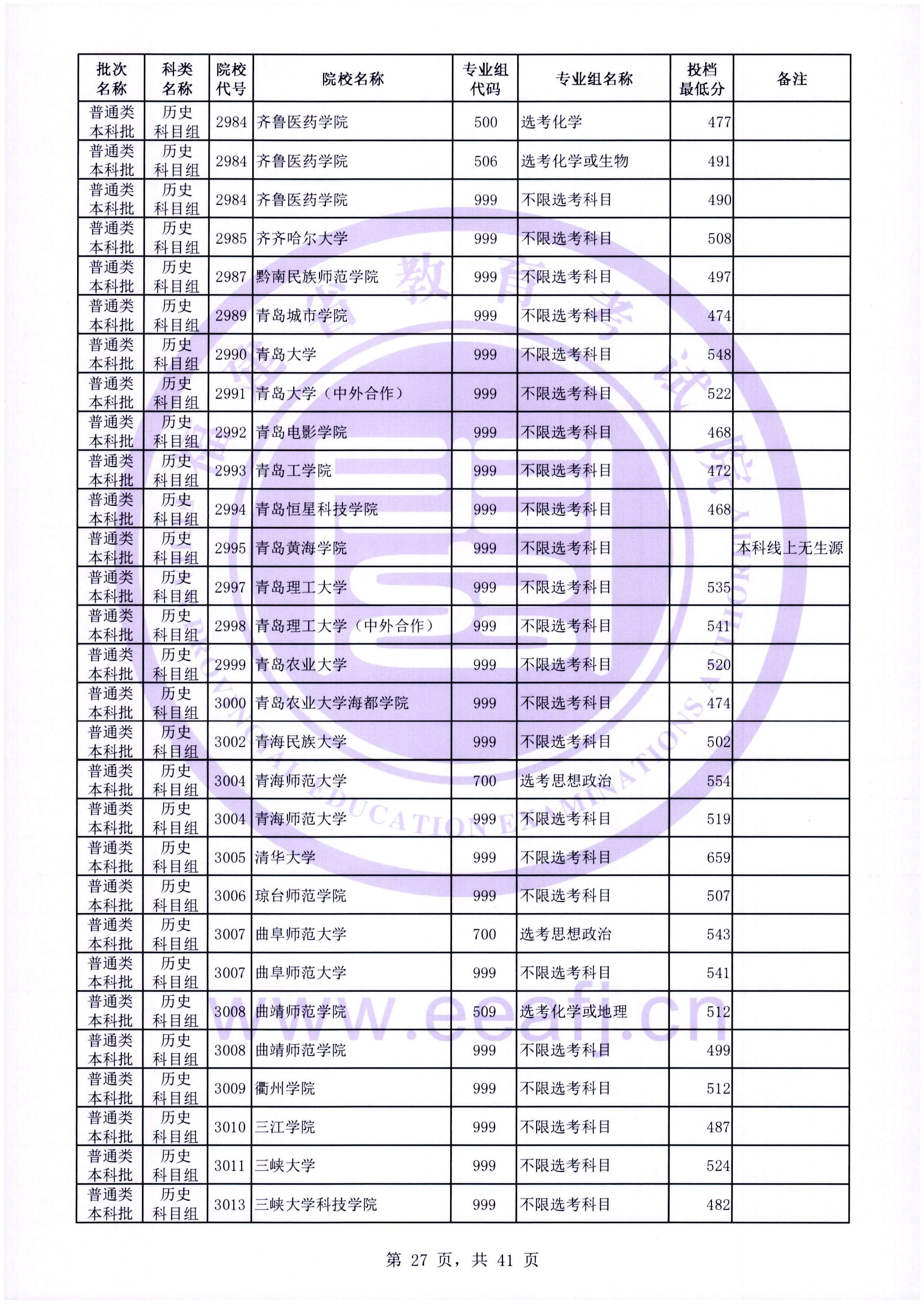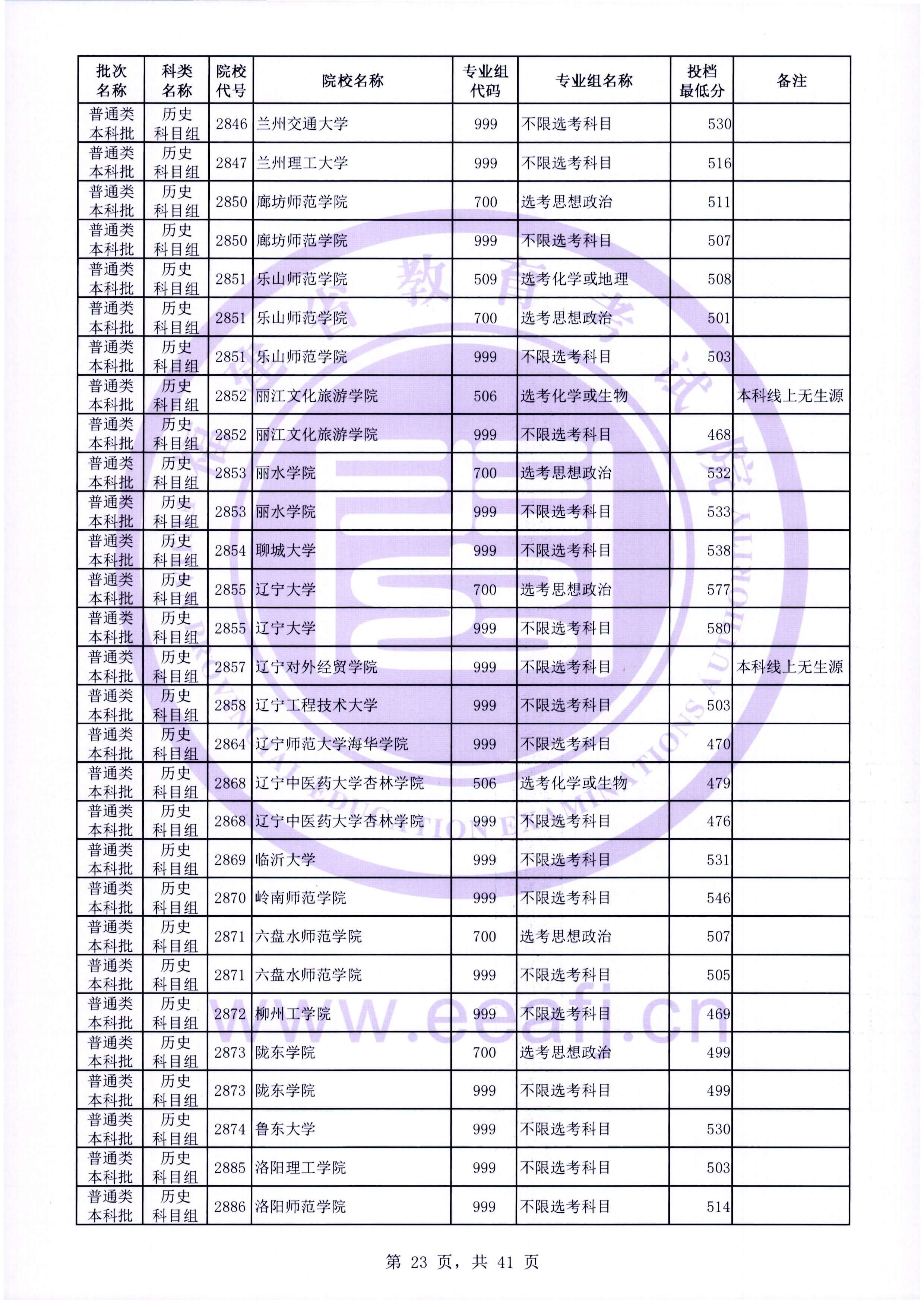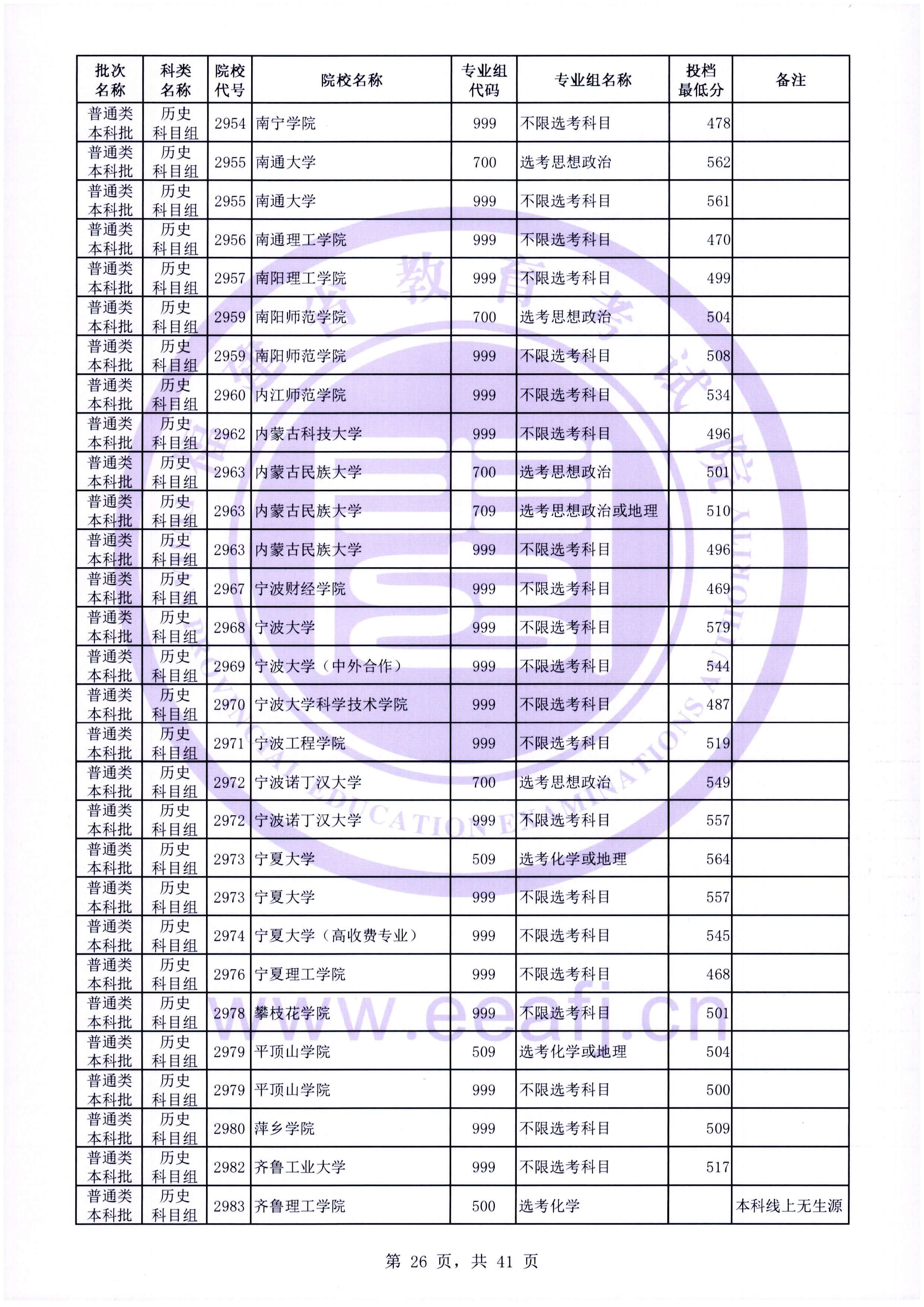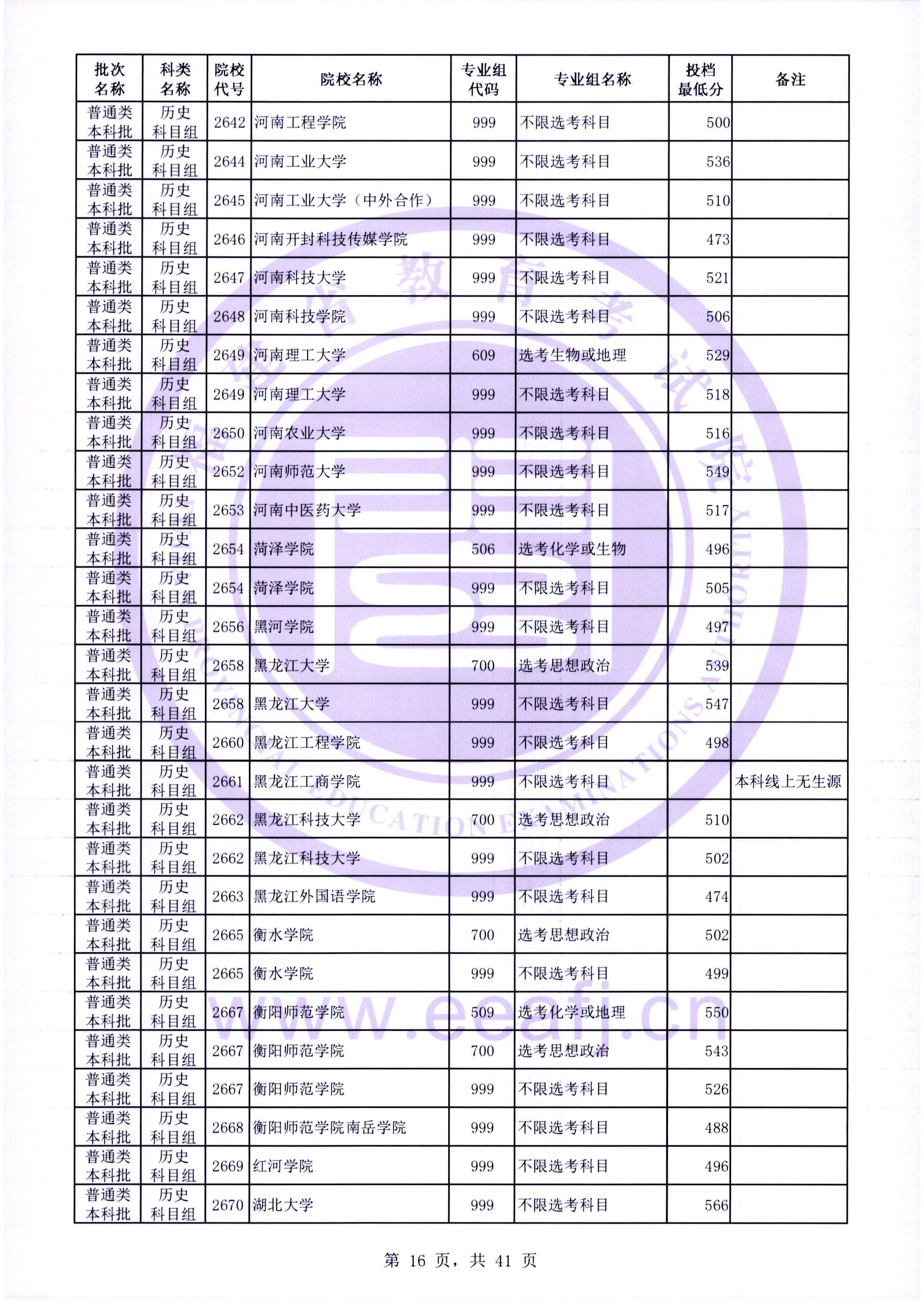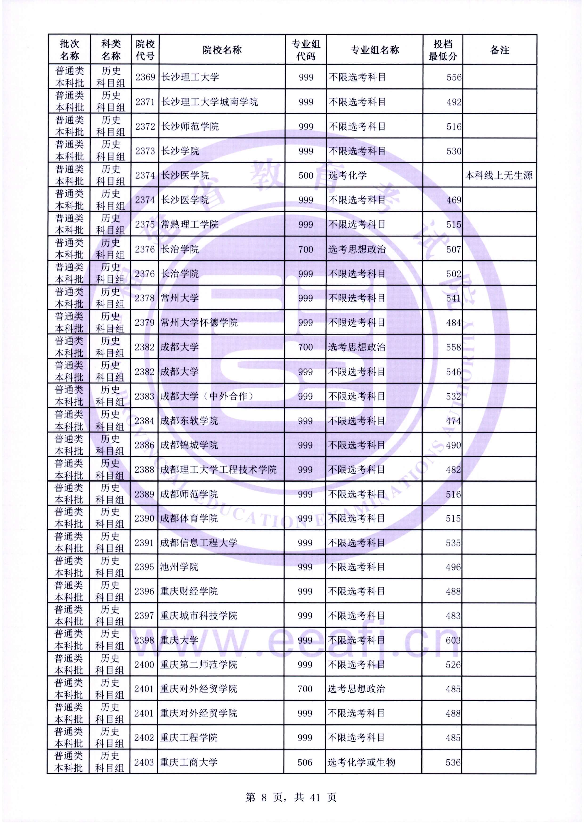 2022年普通类本科批常规志愿院校专业组投档最低分公布! 历史科目组