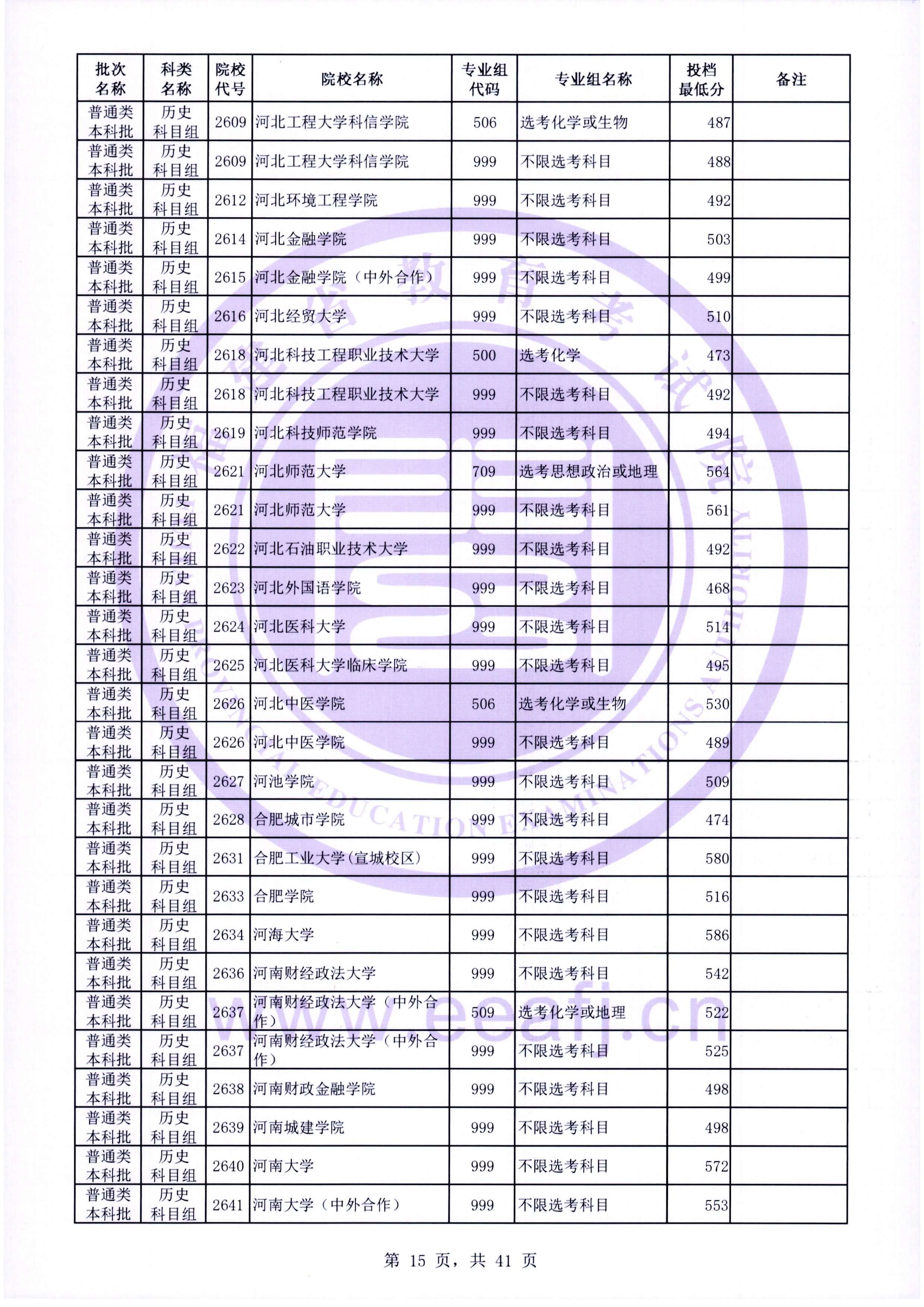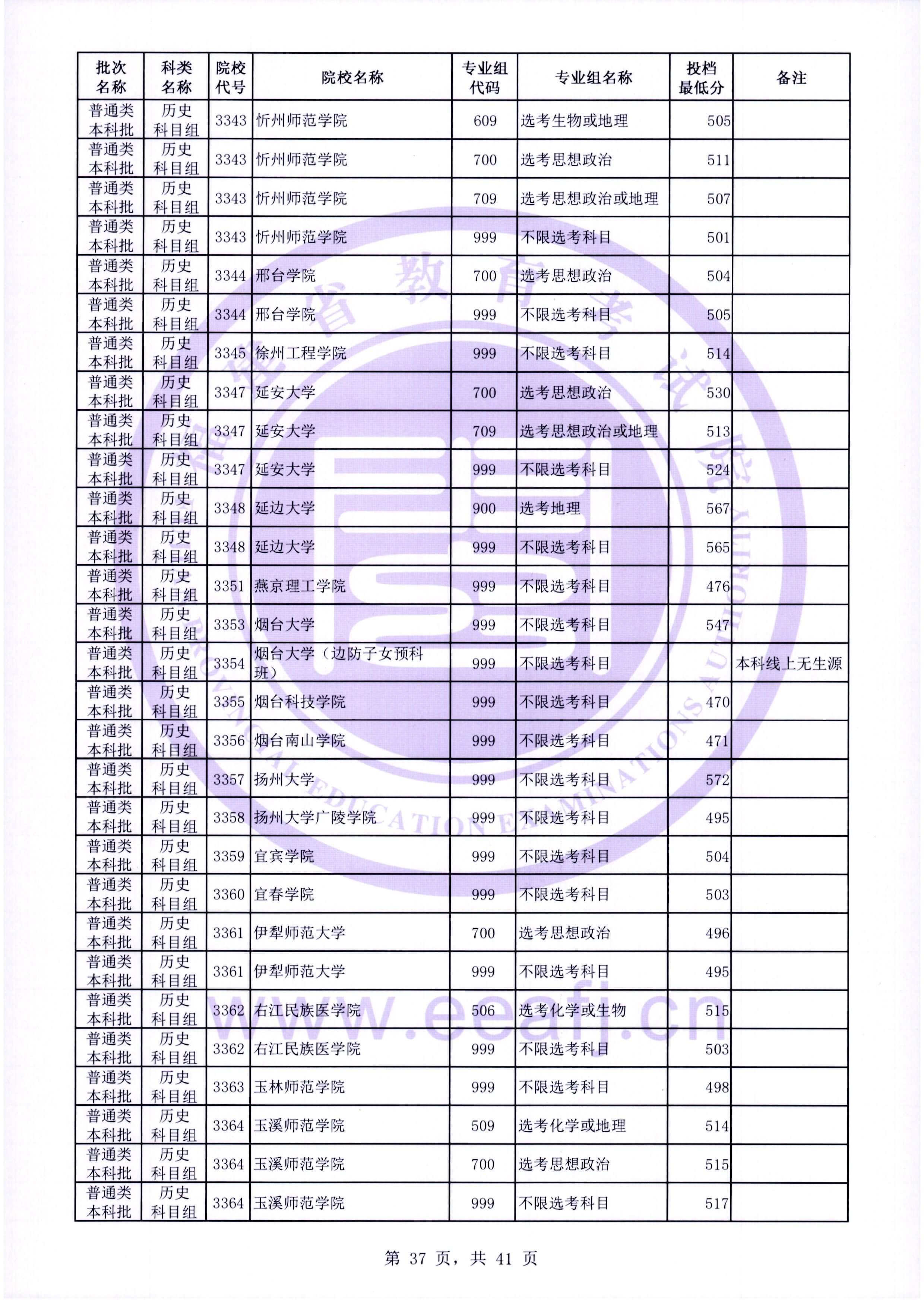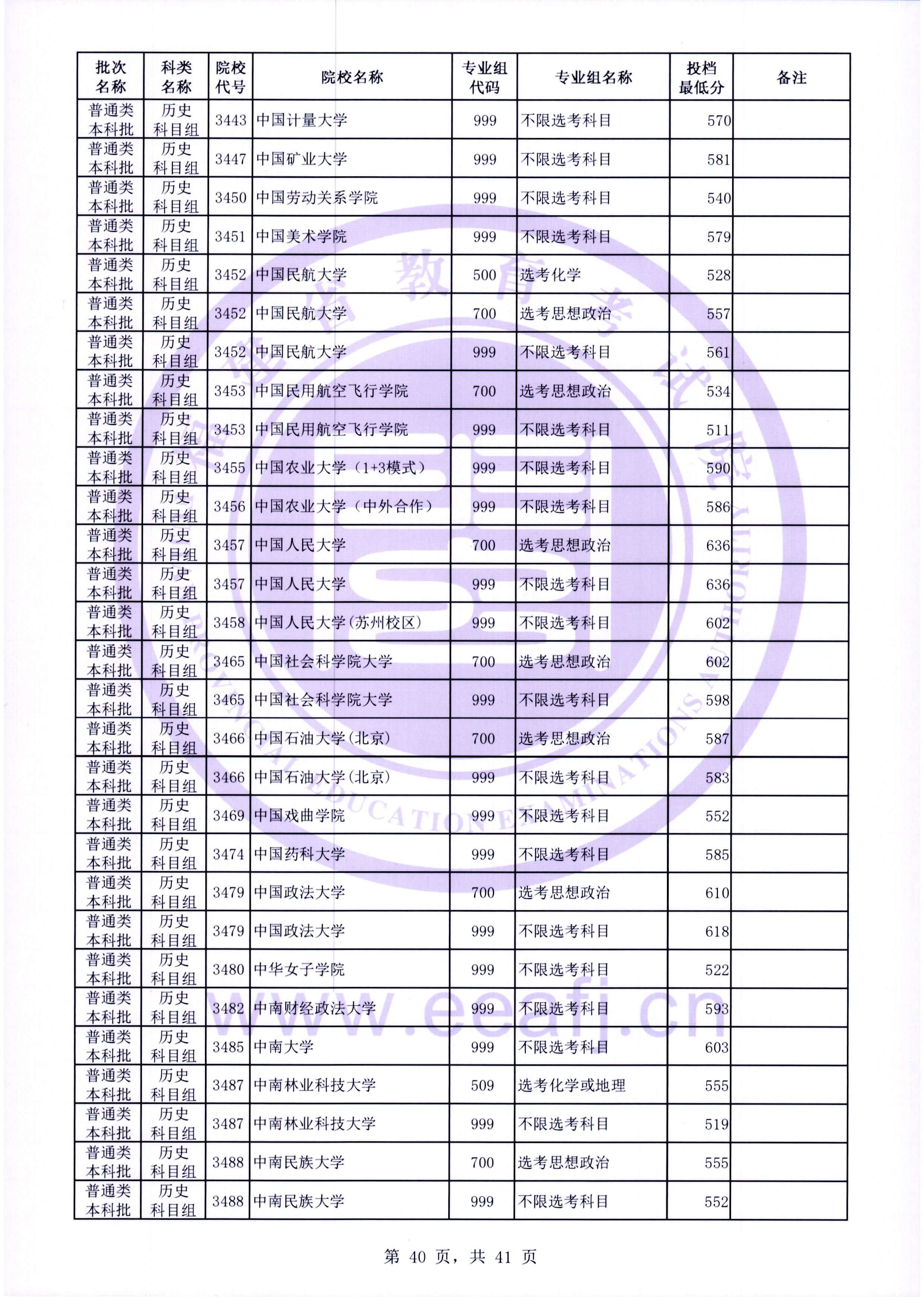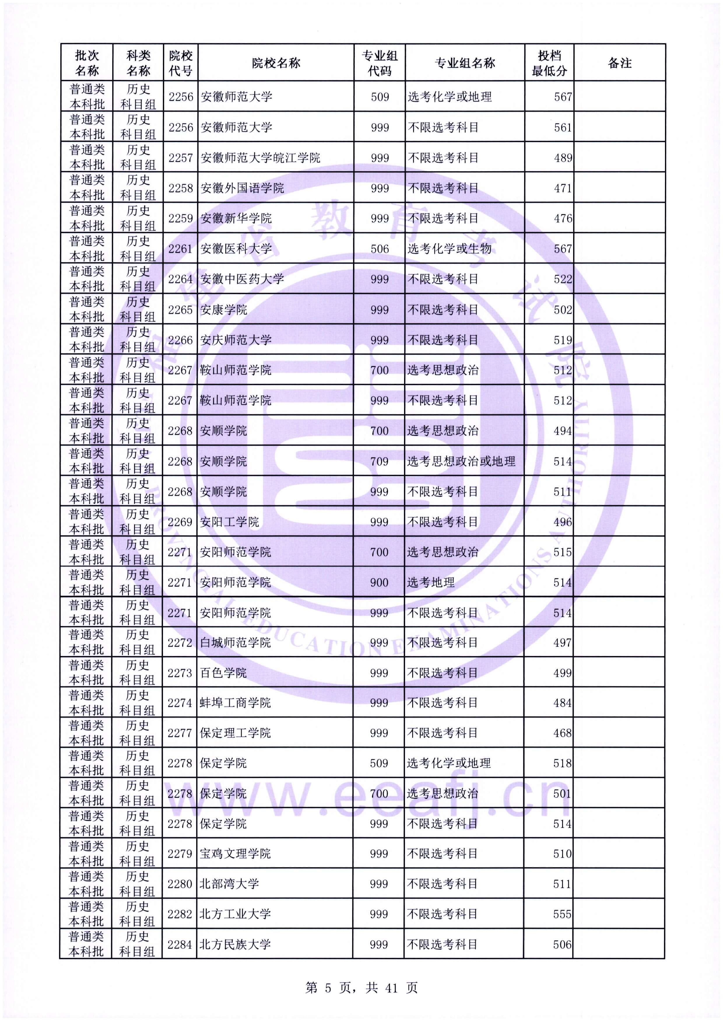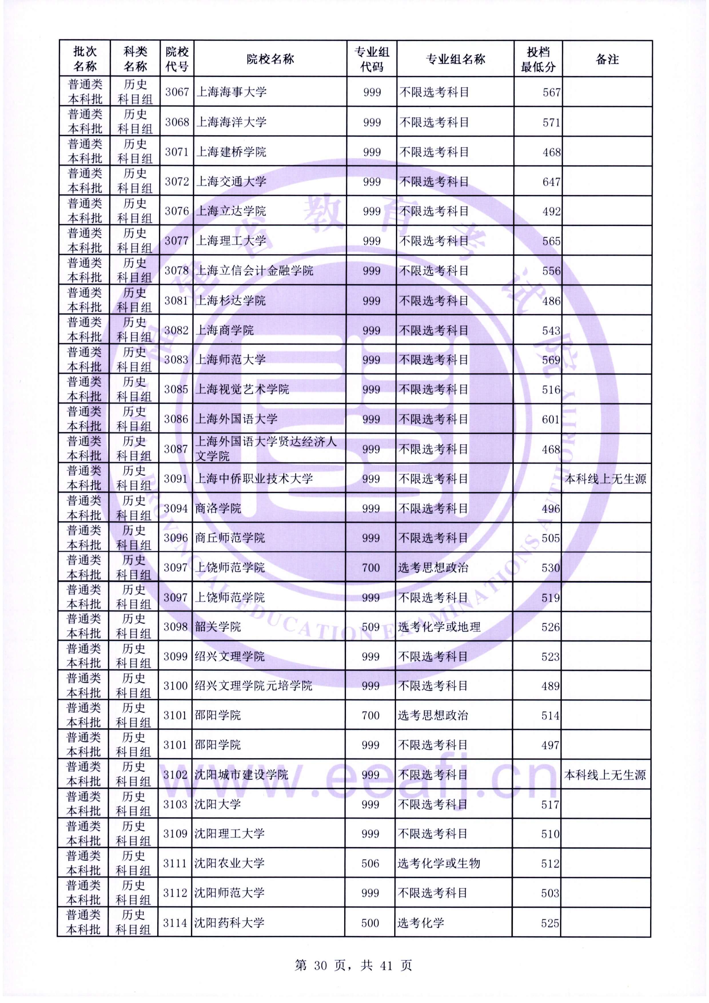 2022年普通类本科批常规志愿院校专业组投档最低分公布! 历史科目组