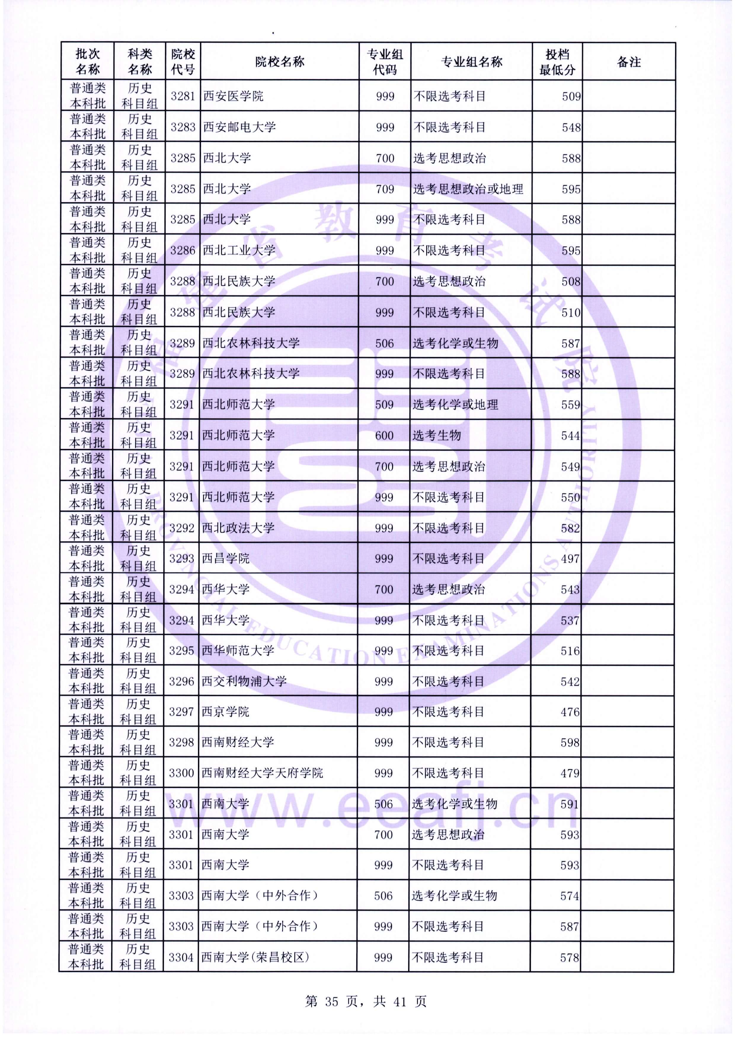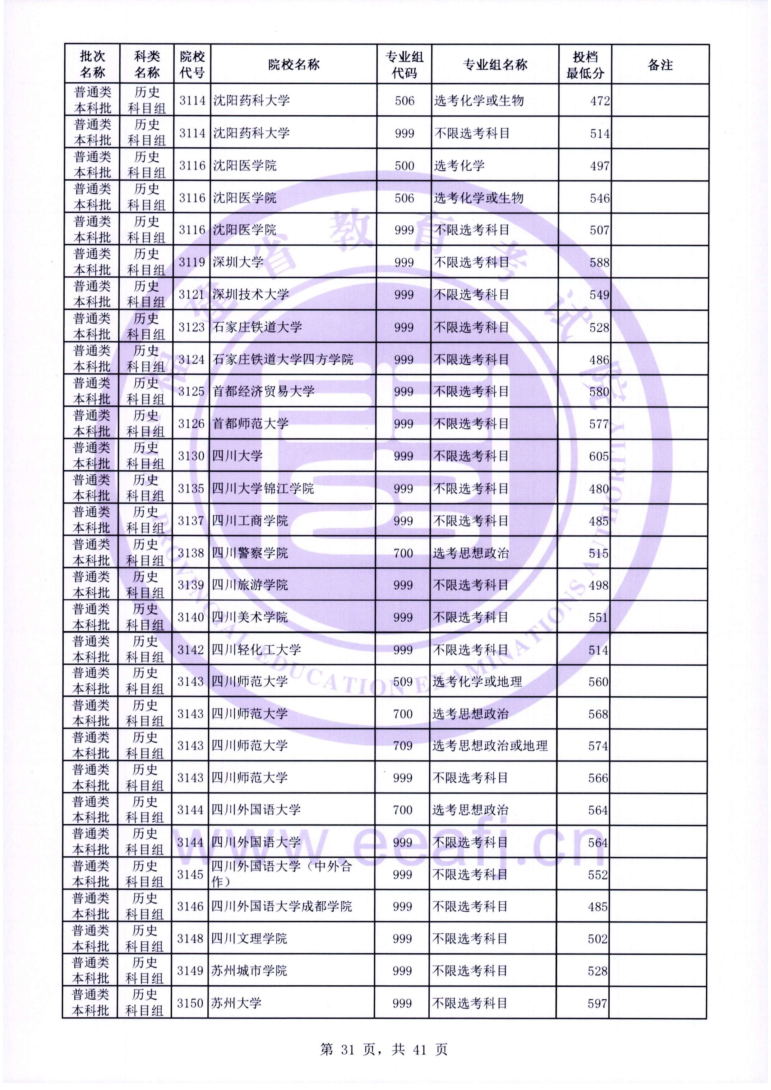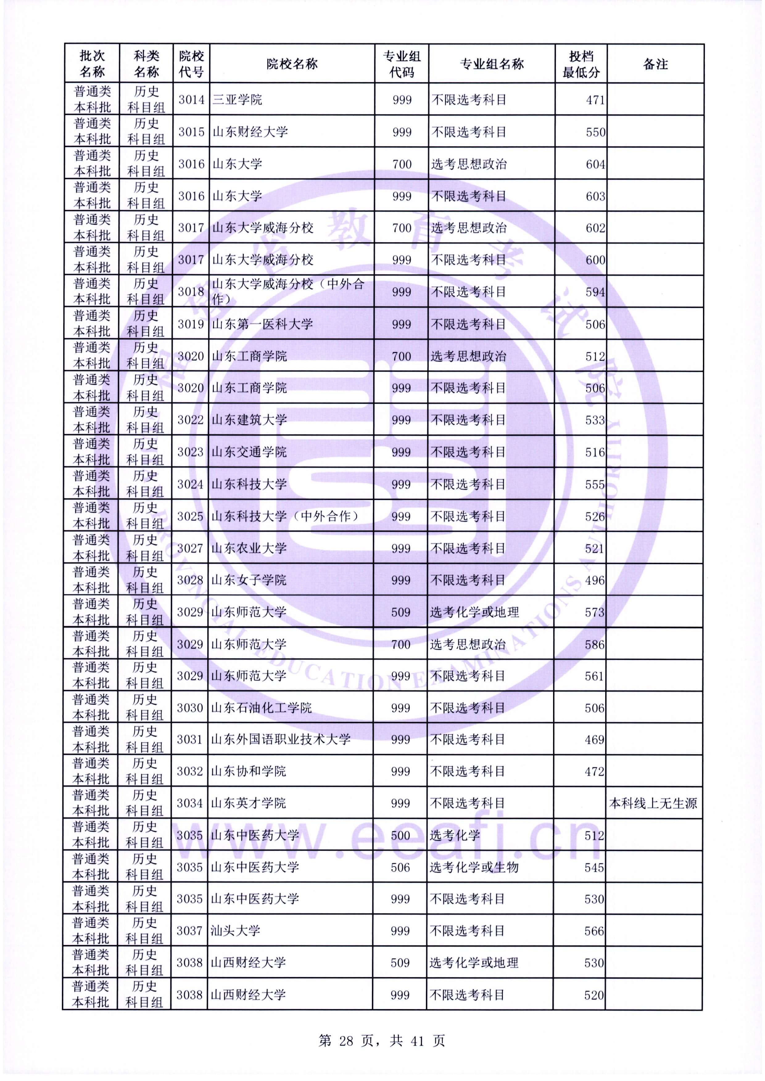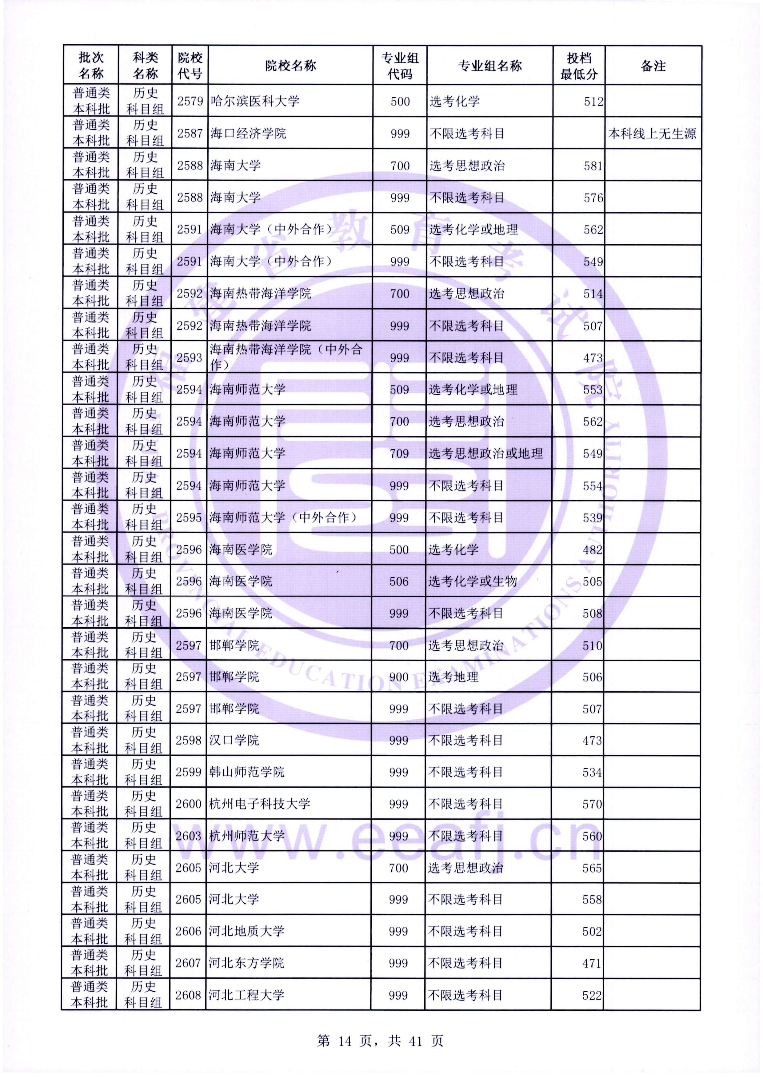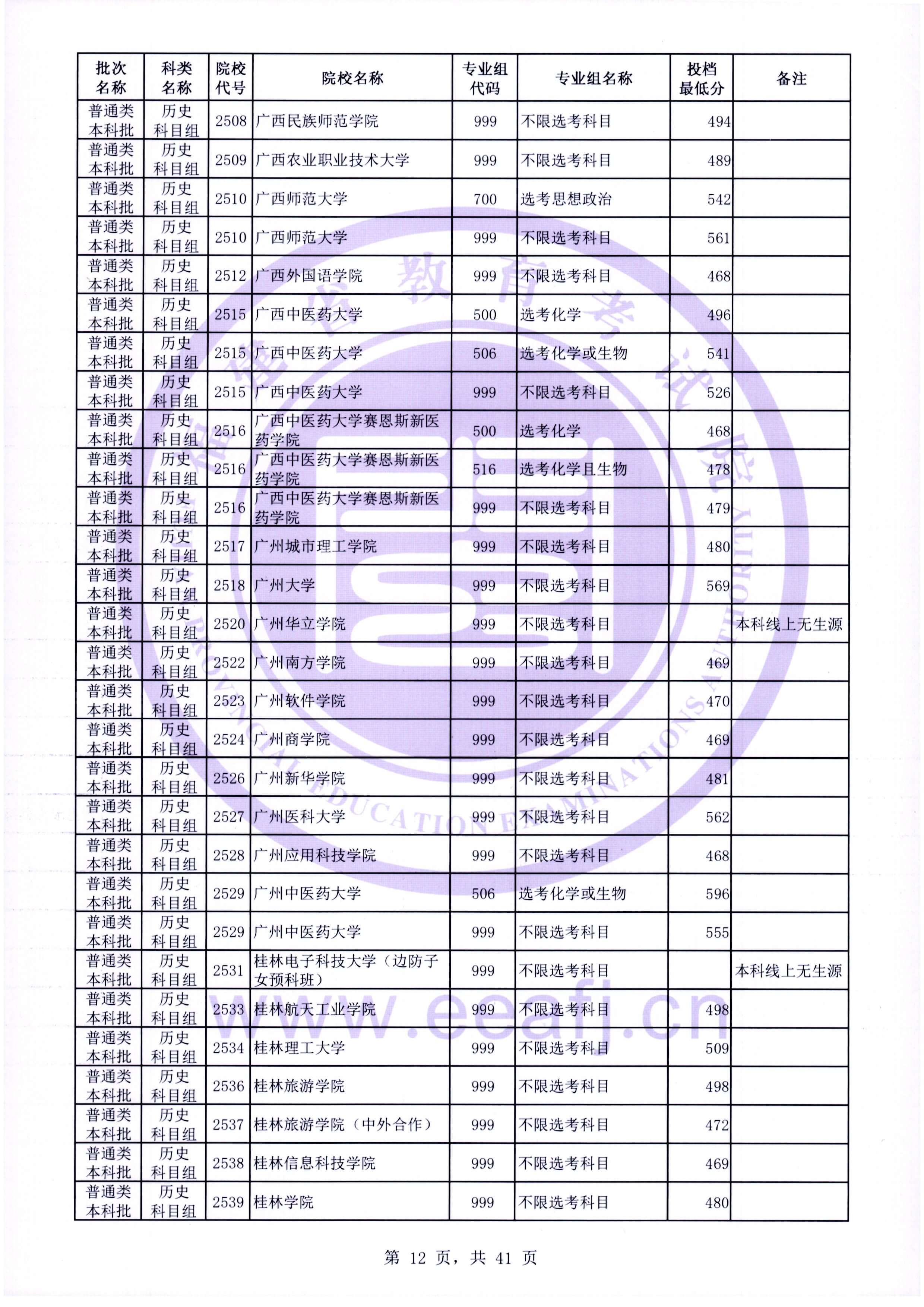 2022年普通类本科批常规志愿院校专业组投档最低分公布! 历史科目组