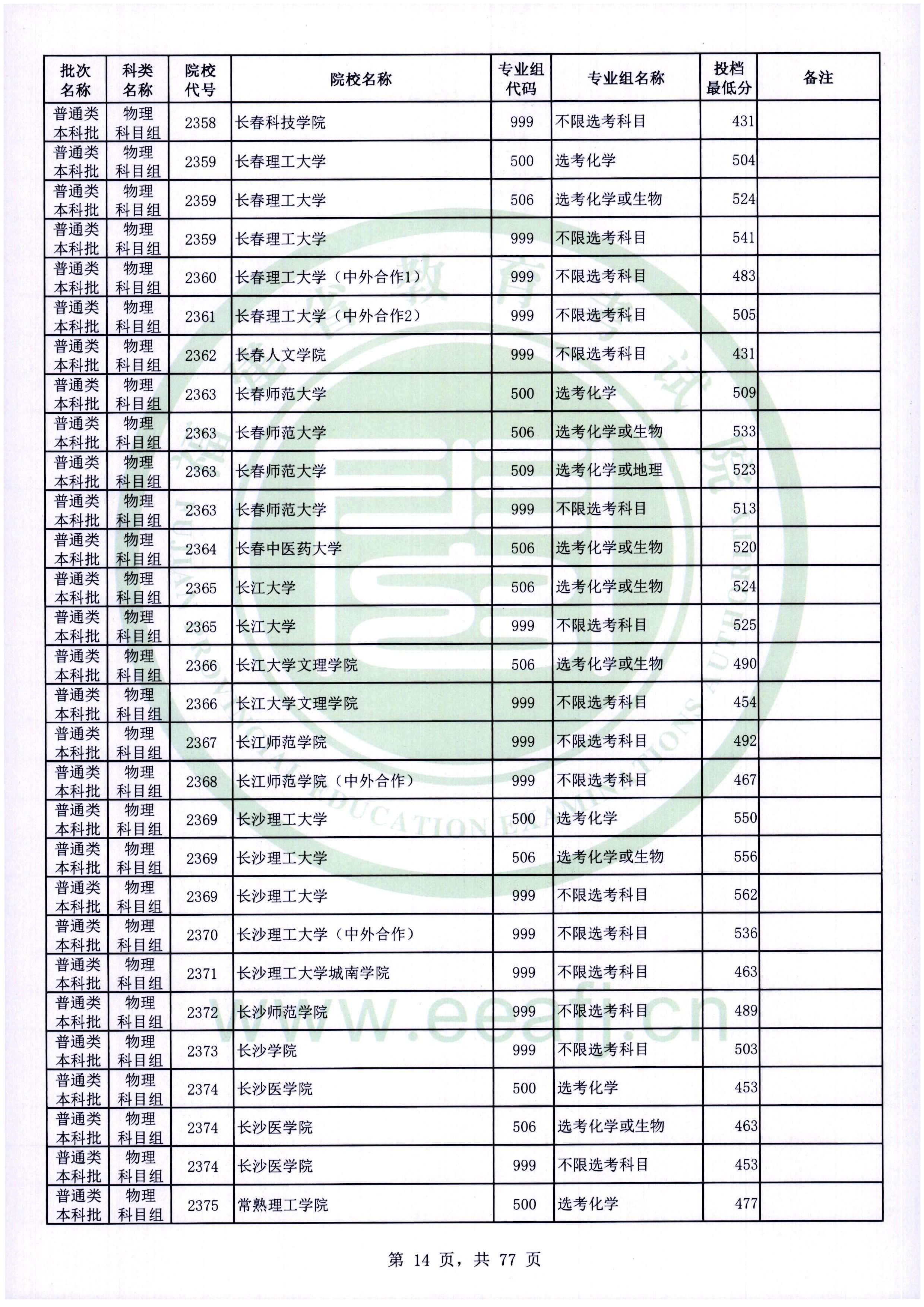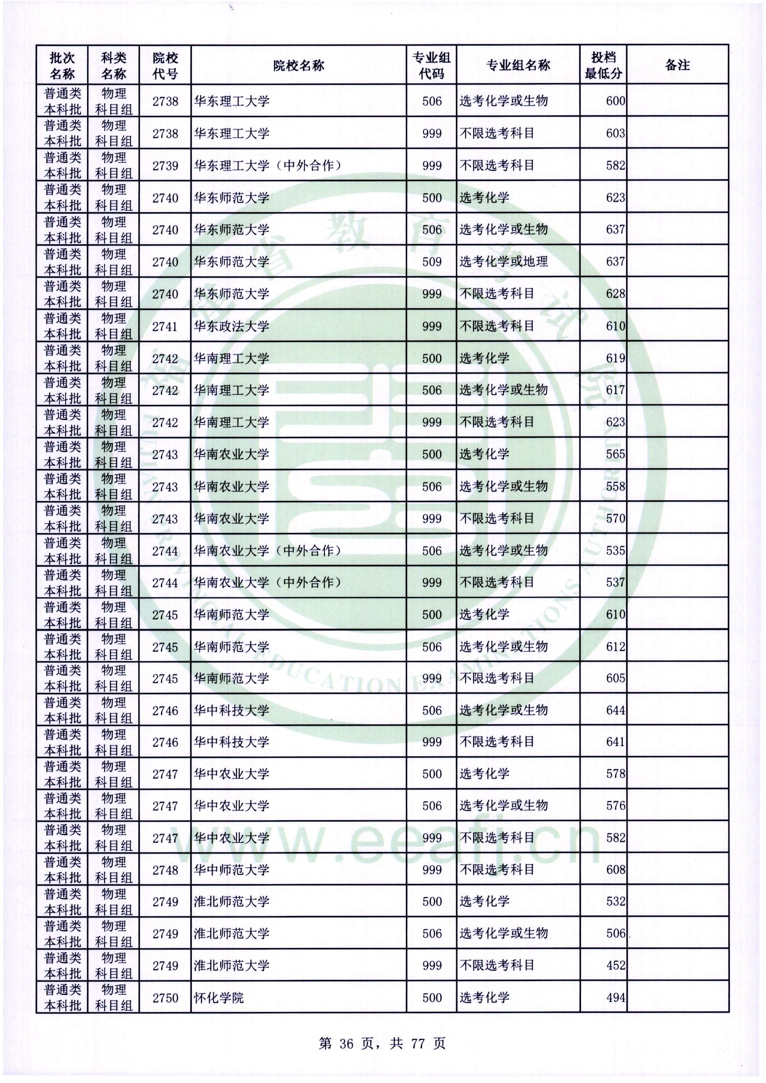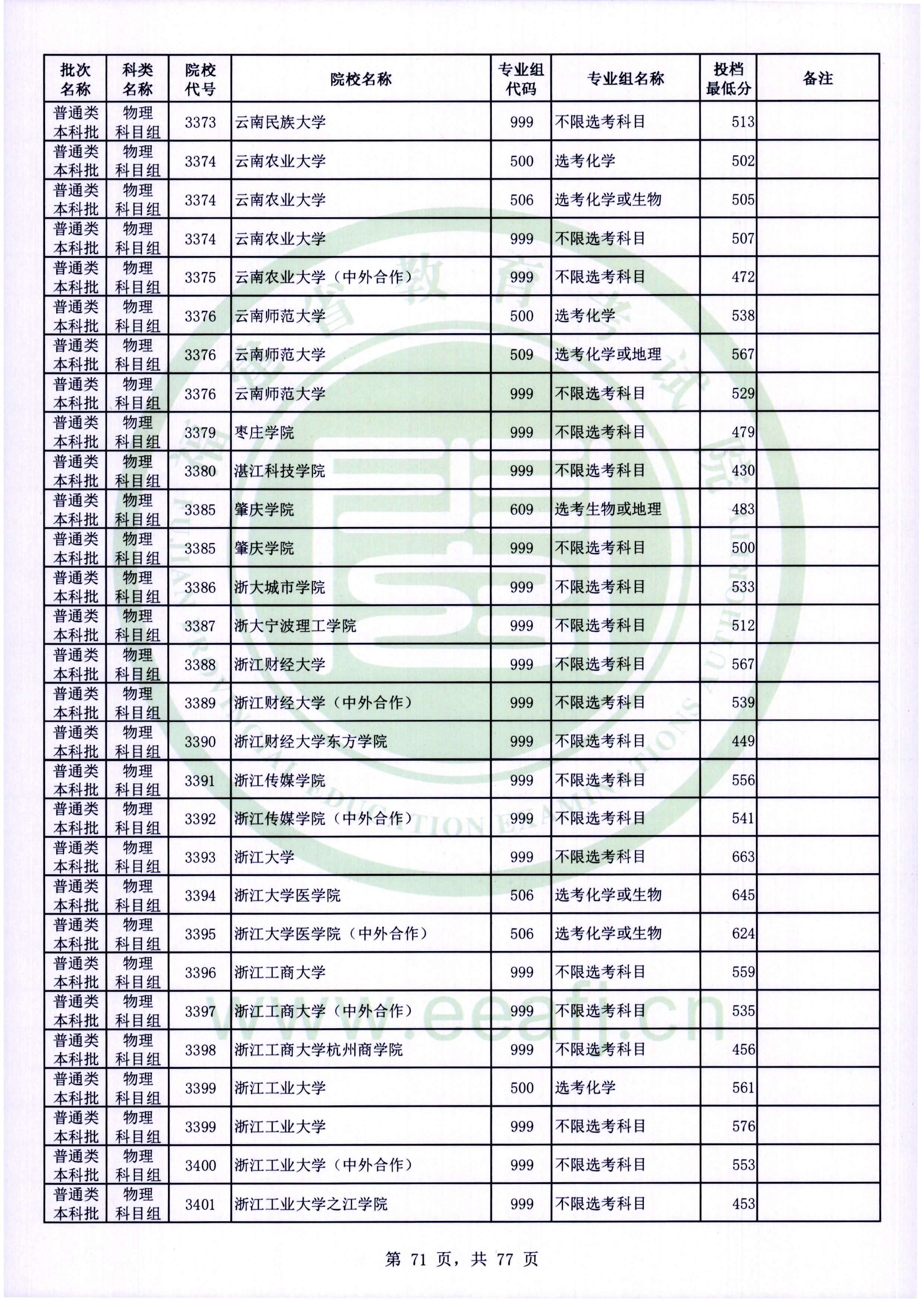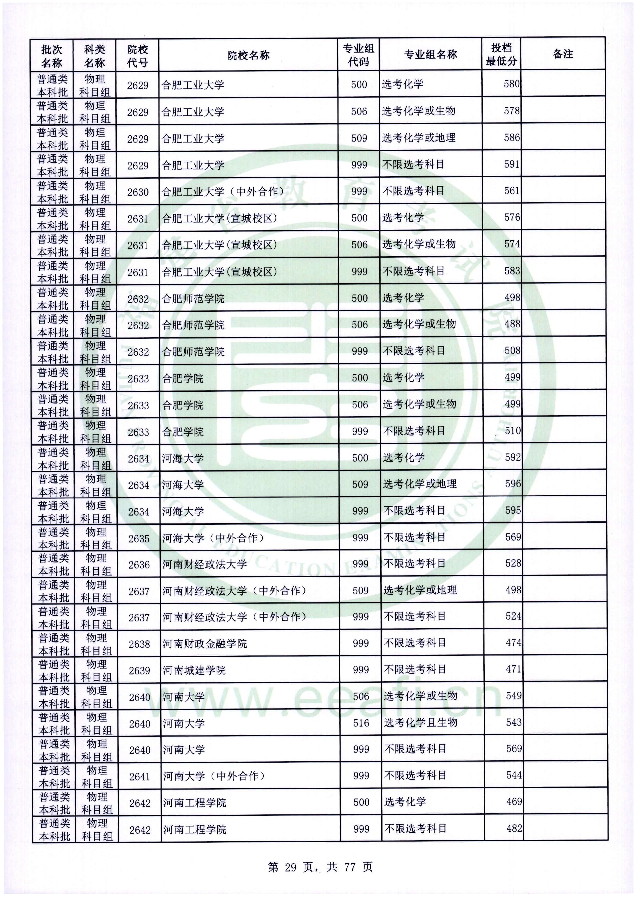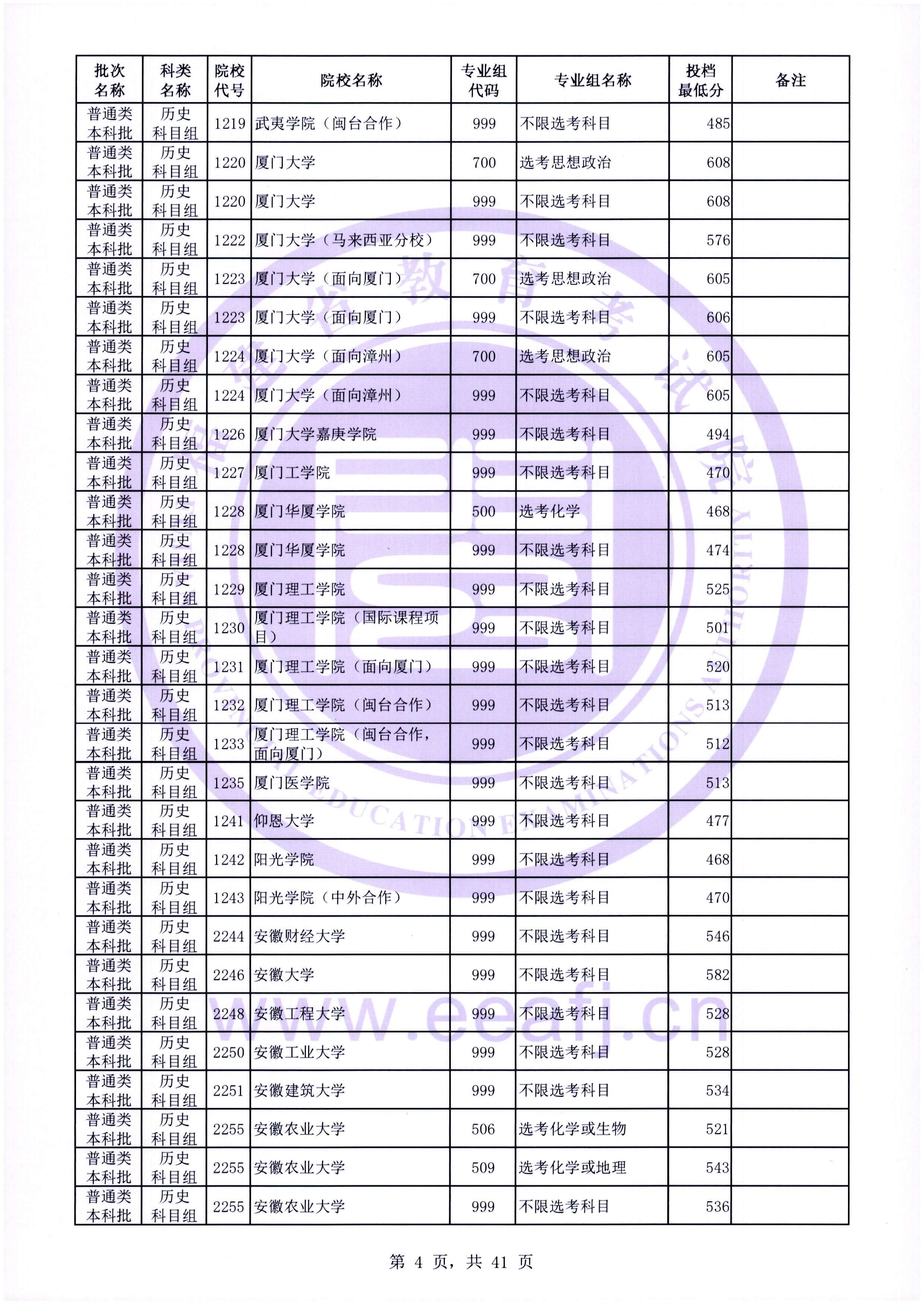 2022年普通类本科批常规志愿院校专业组投档最低分公布! 历史科目组