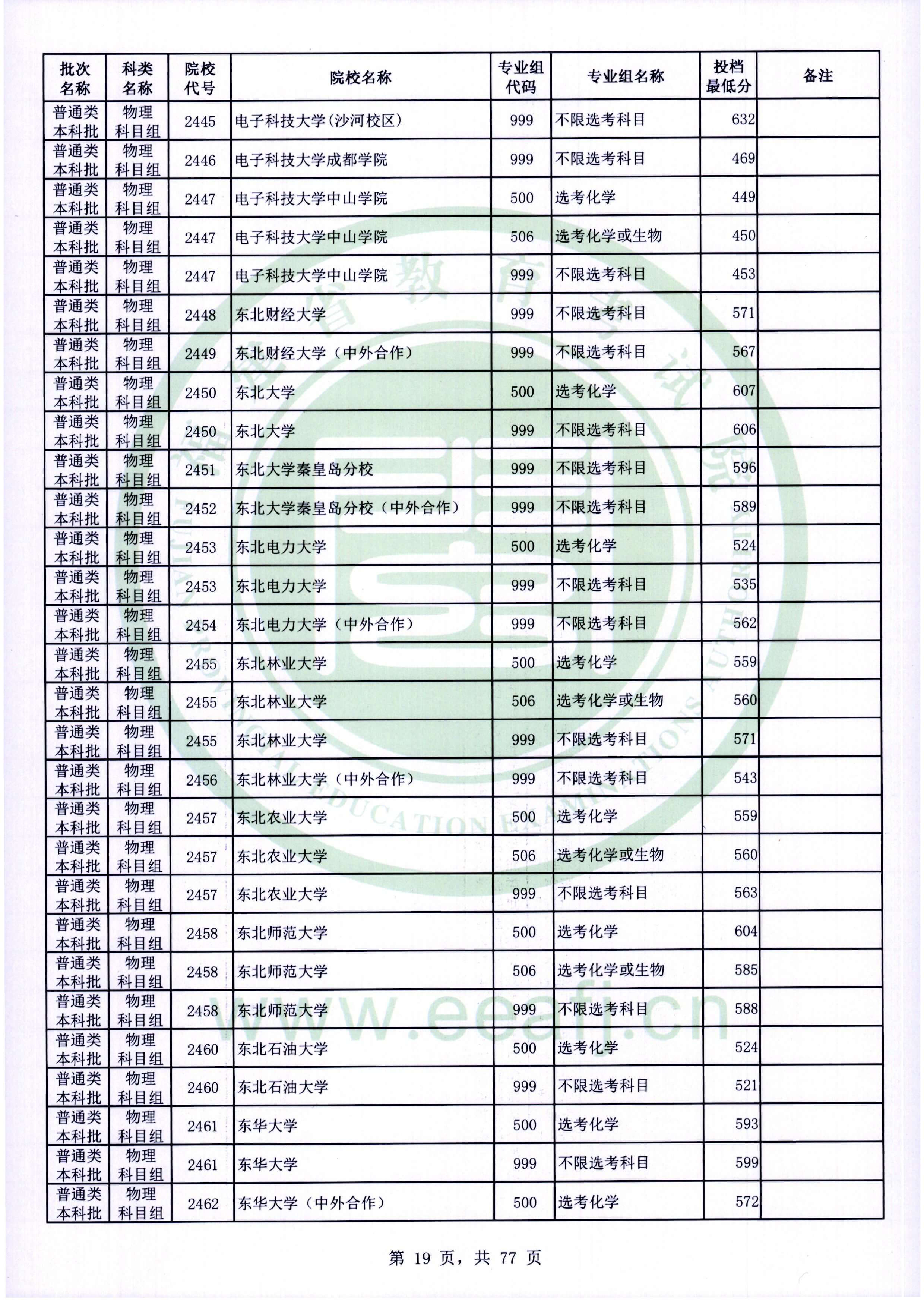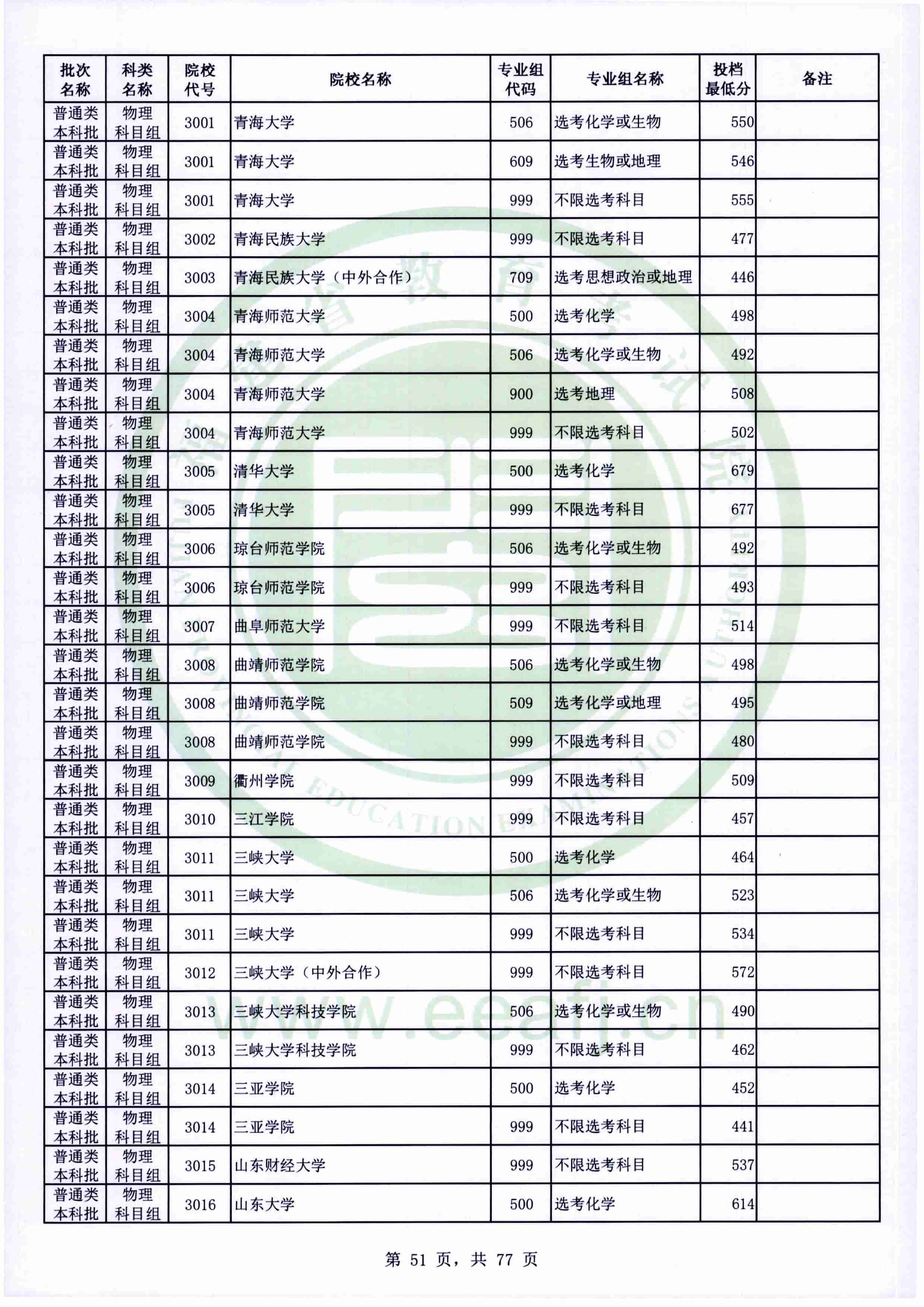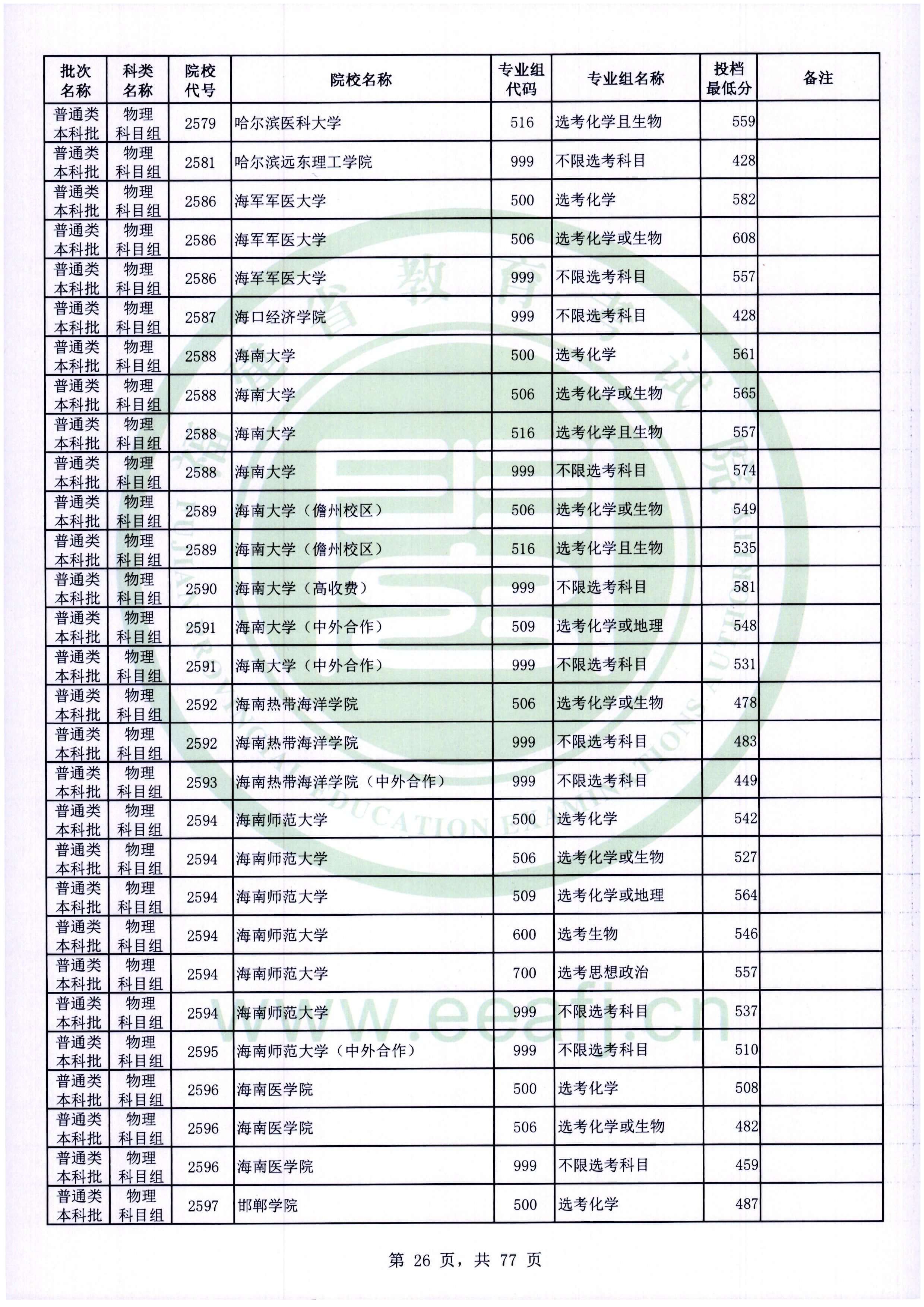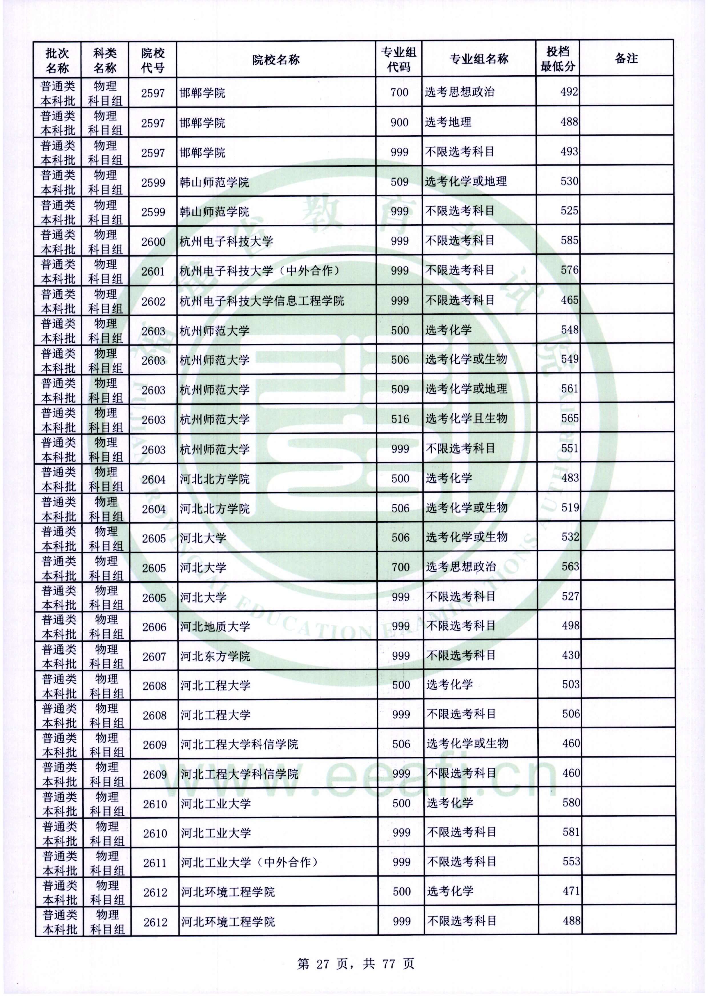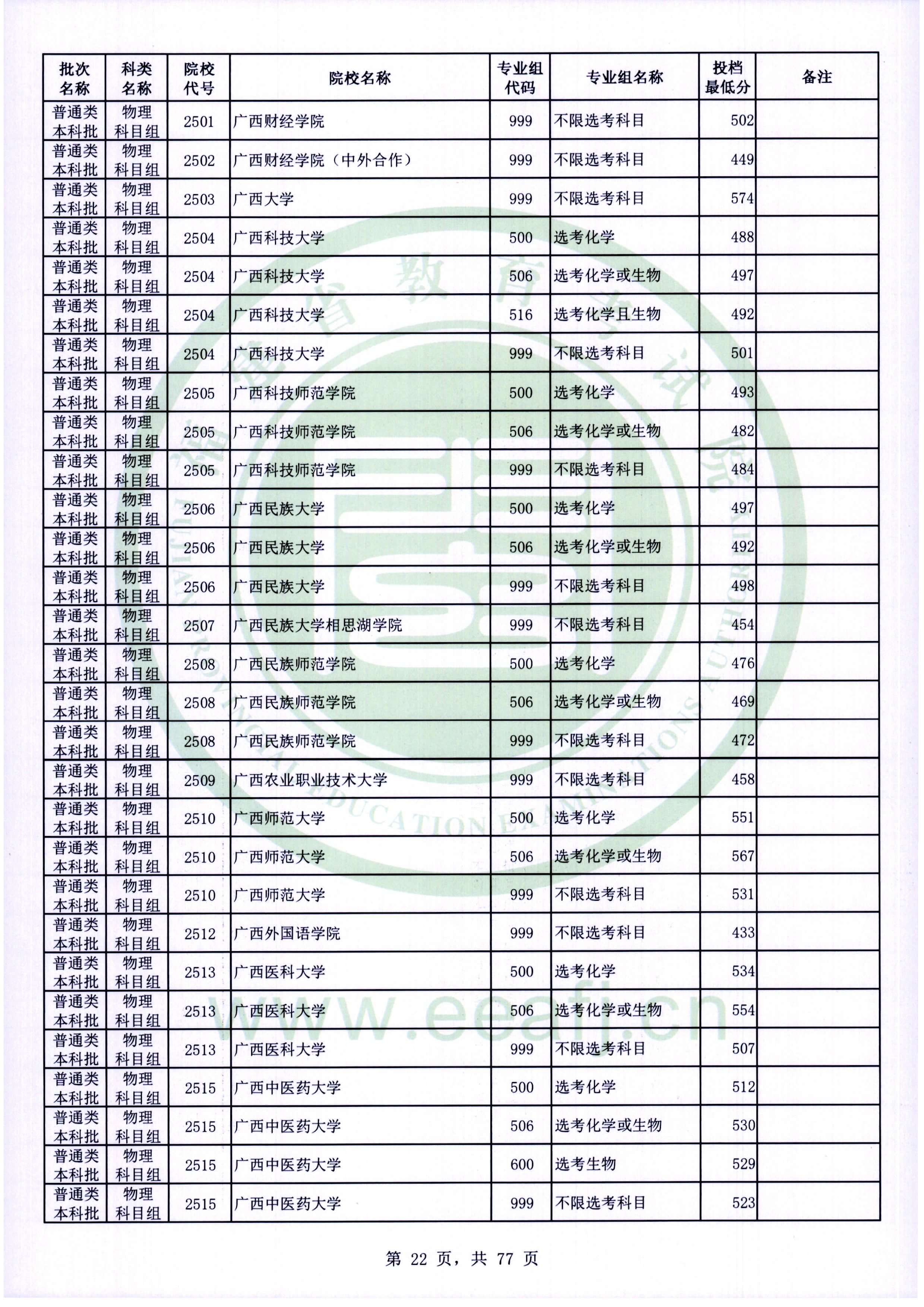 2022年普通类本科批常规志愿院校专业组投档最低分公布! 历史科目组