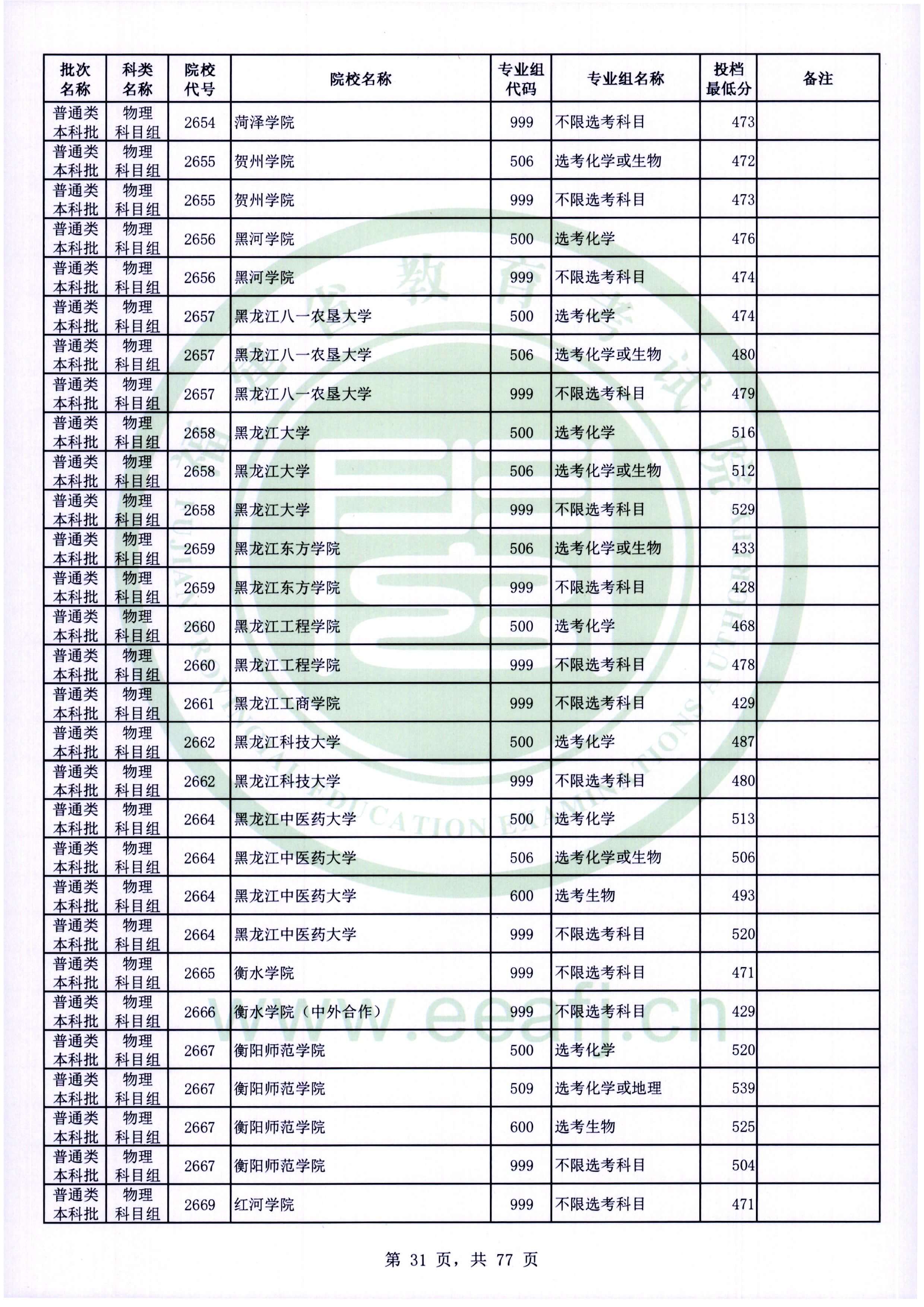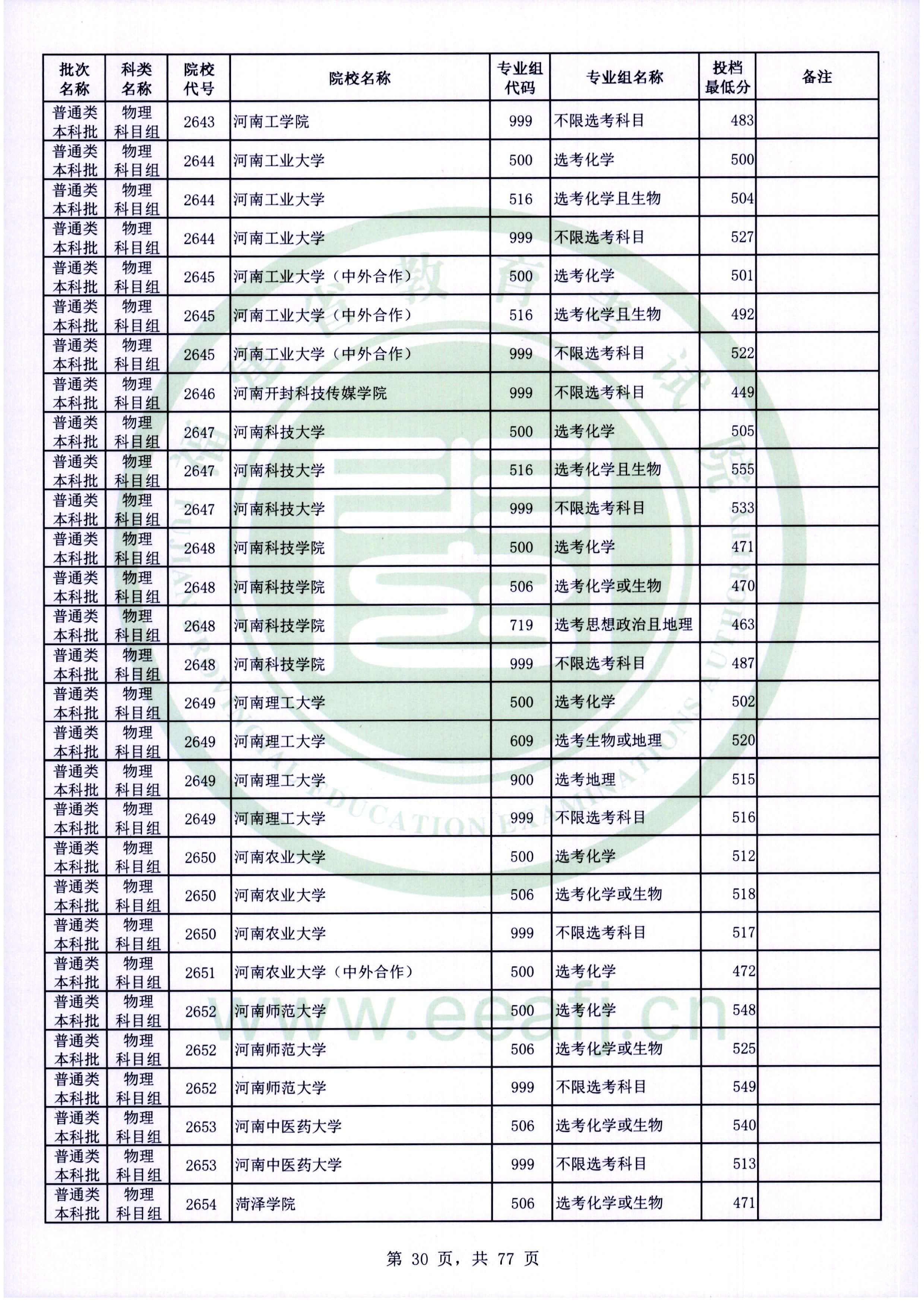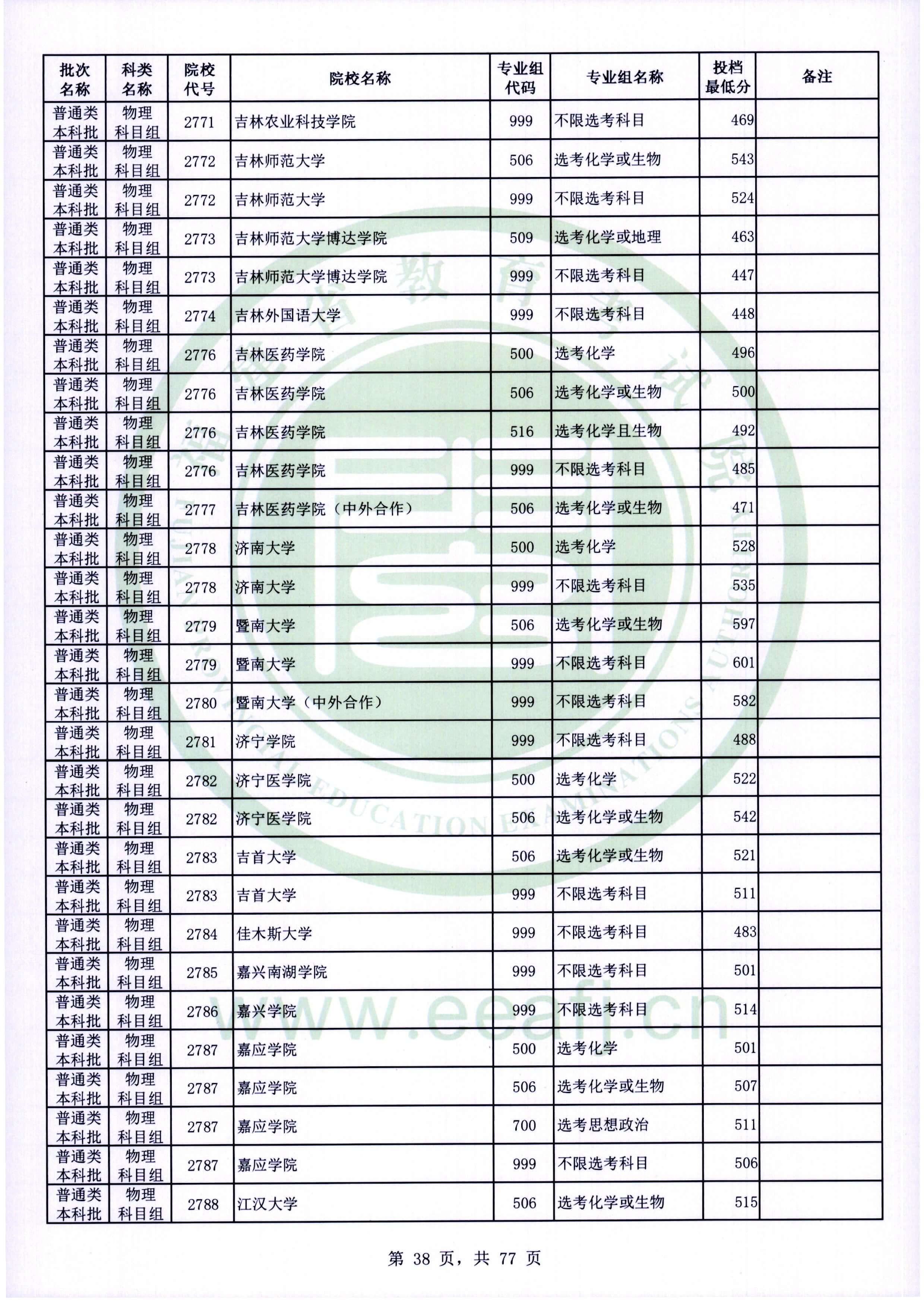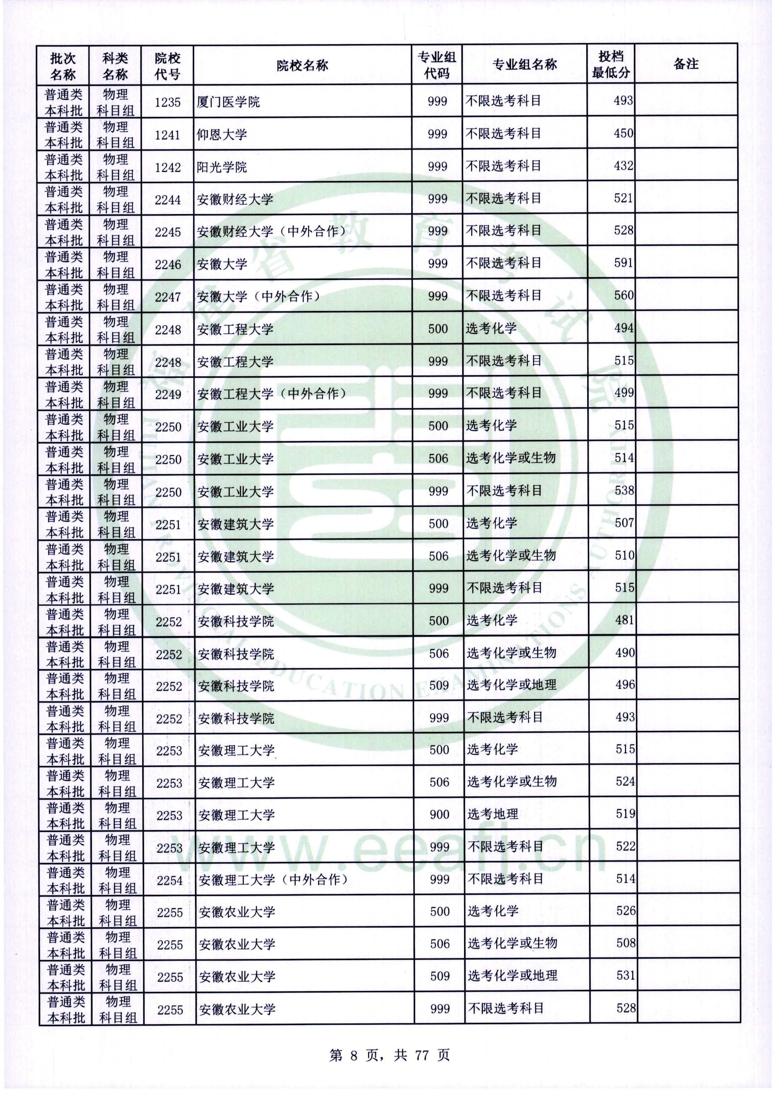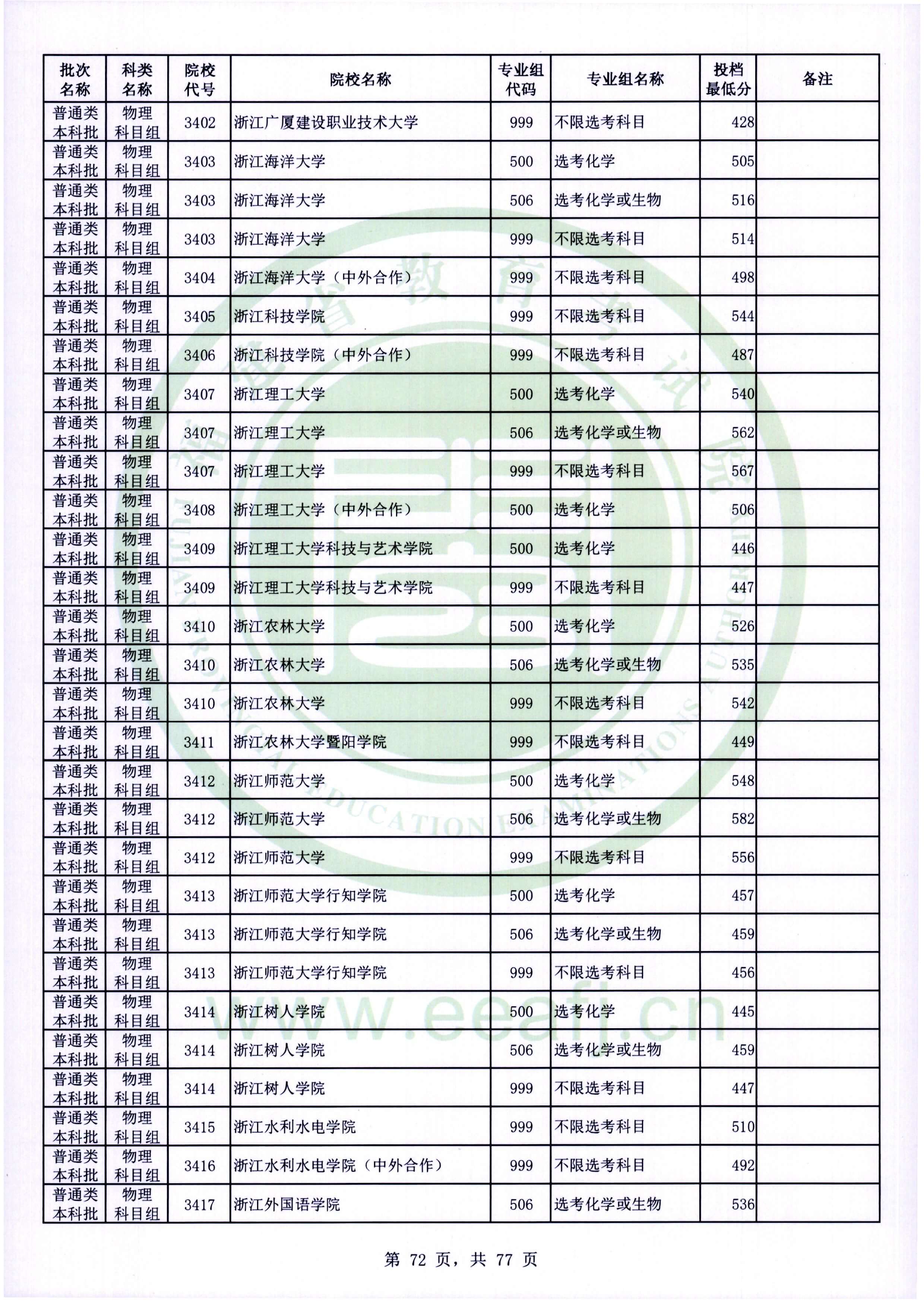 2022年普通类本科批常规志愿院校专业组投档最低分公布! 历史科目组
