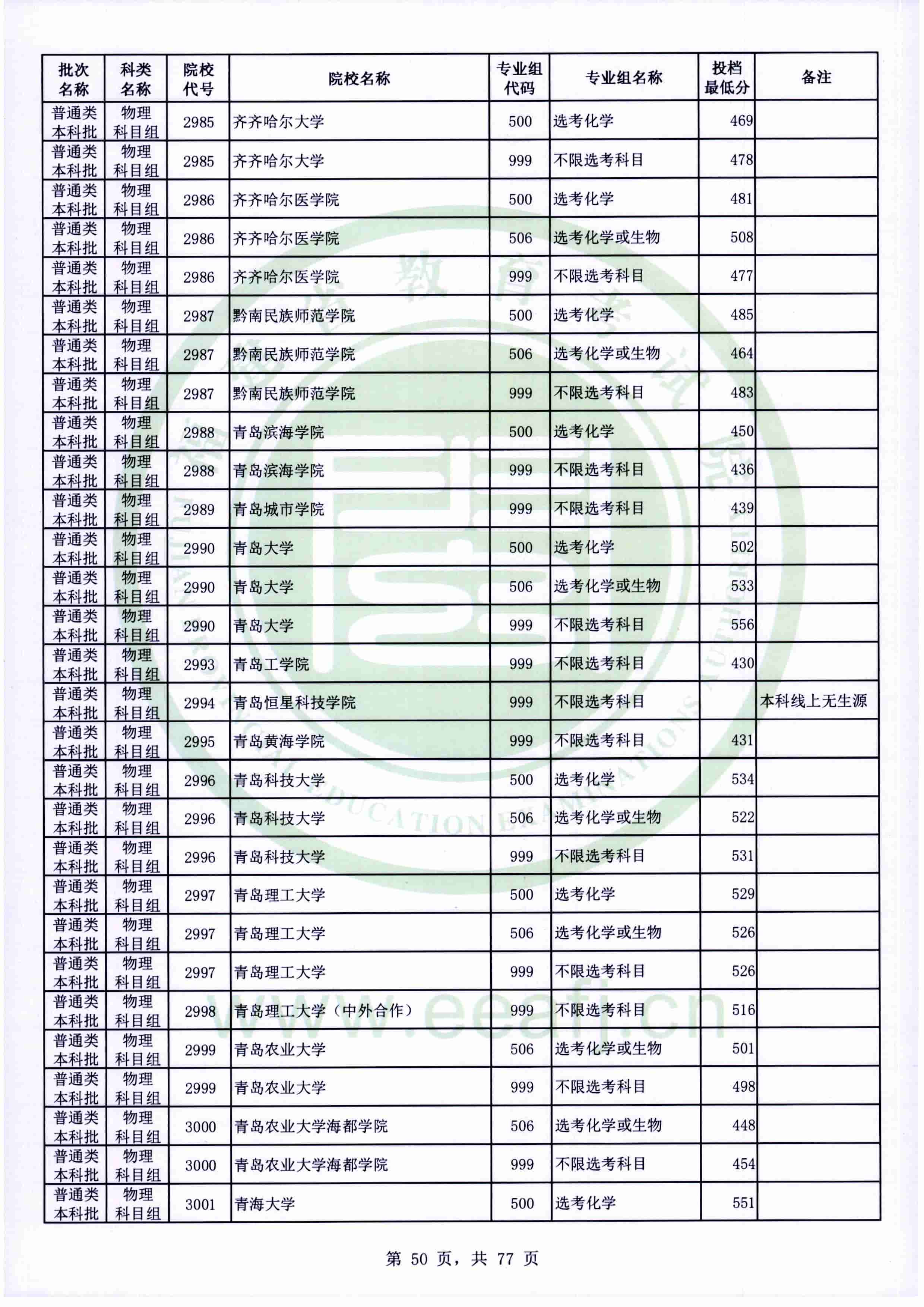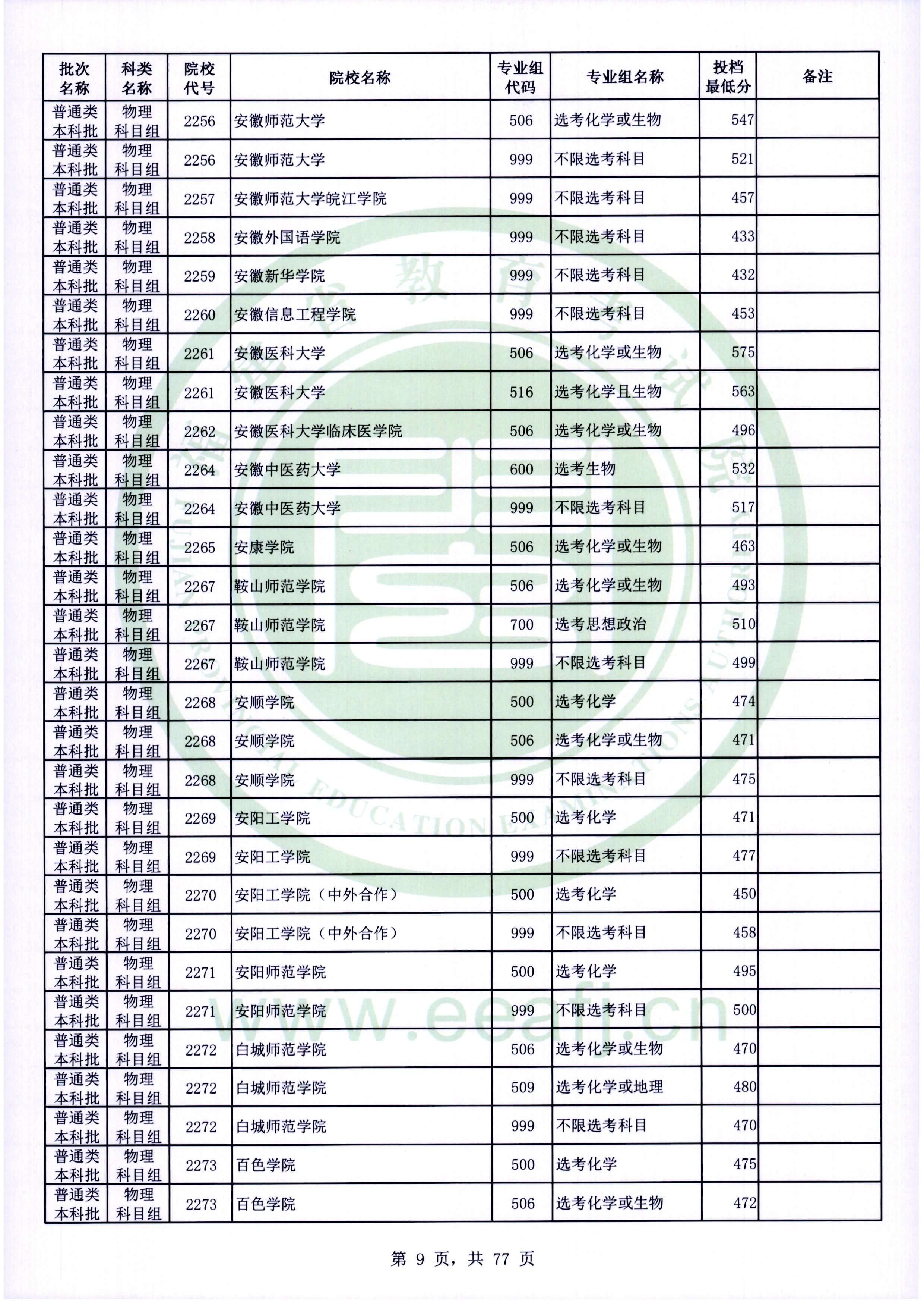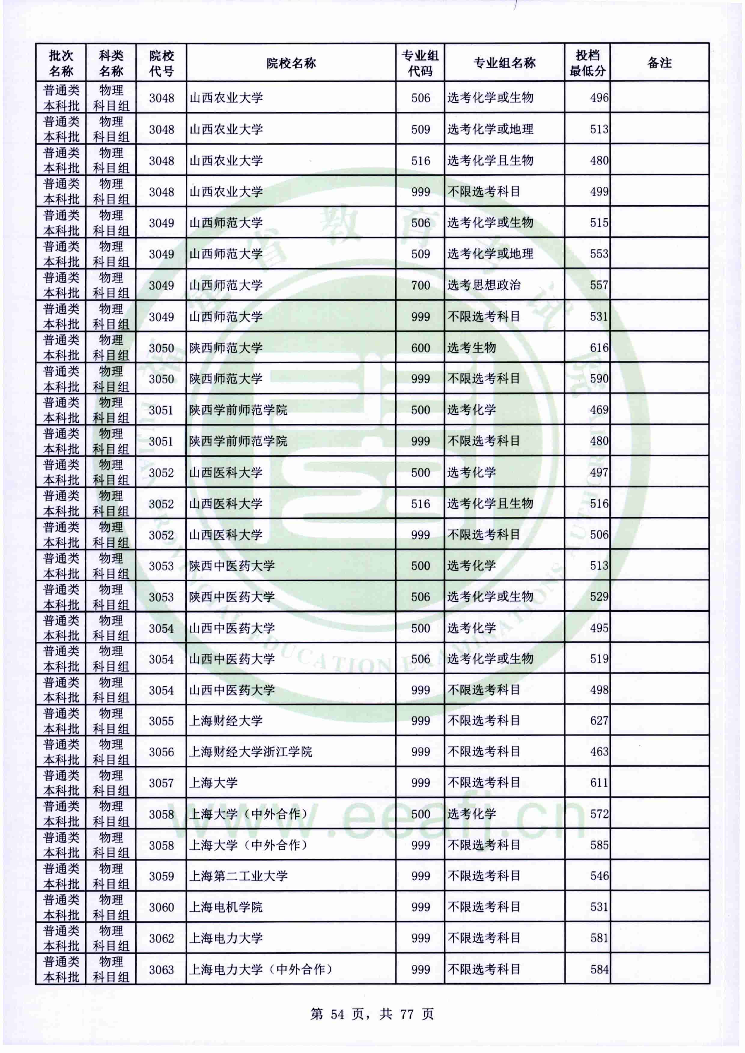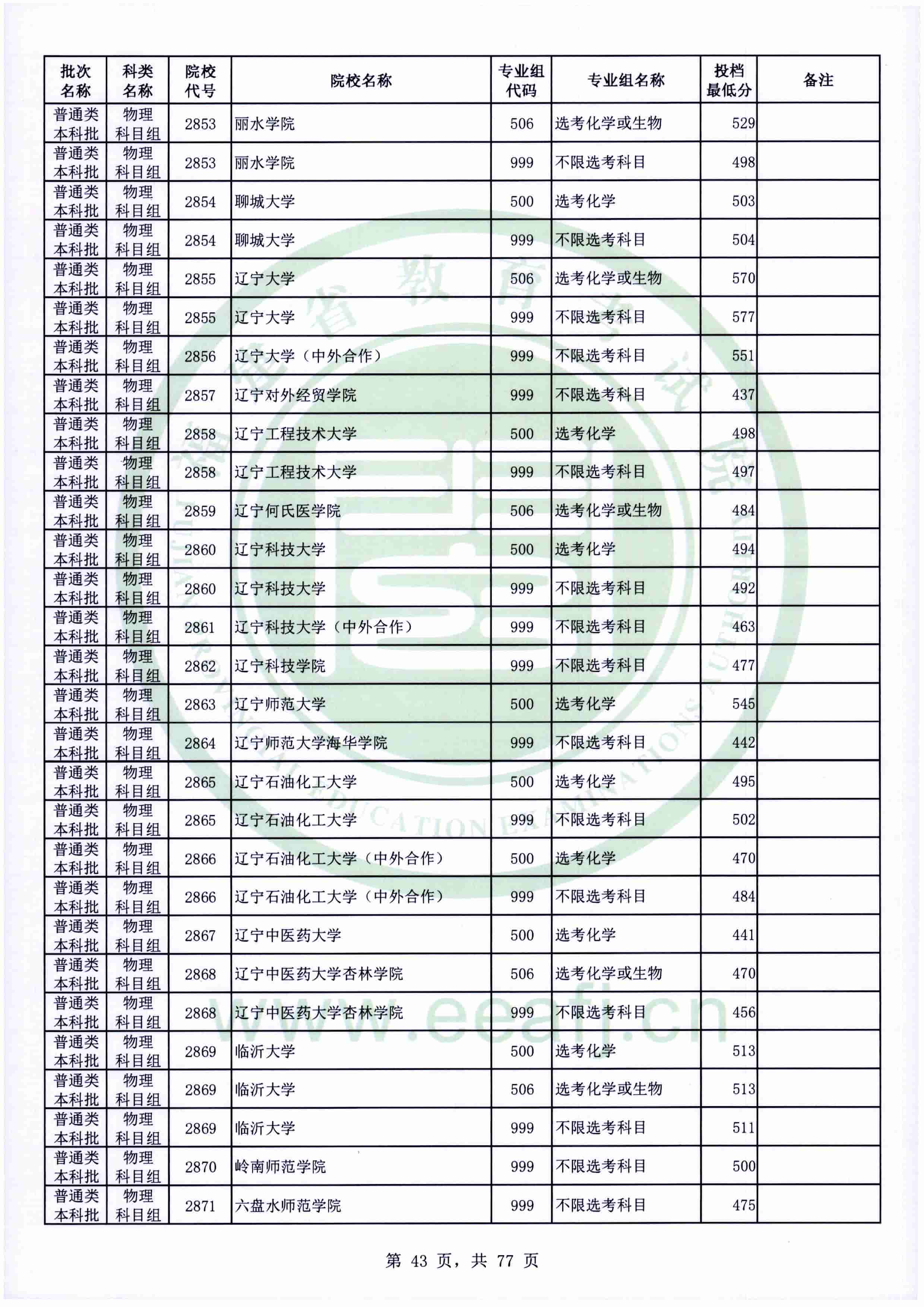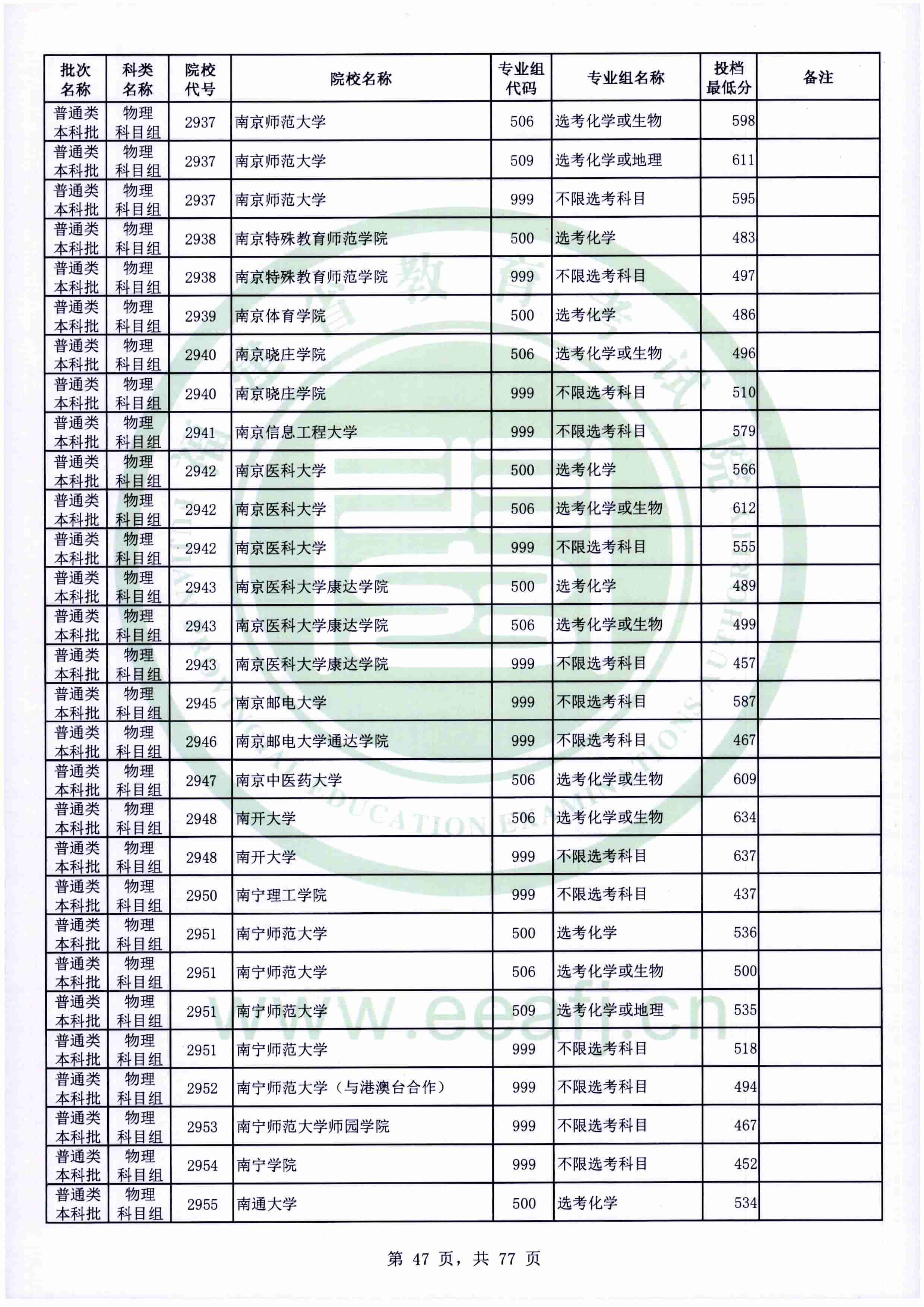2022年普通类本科批常规志愿院校专业组投档最低分公布! 历史科目组
