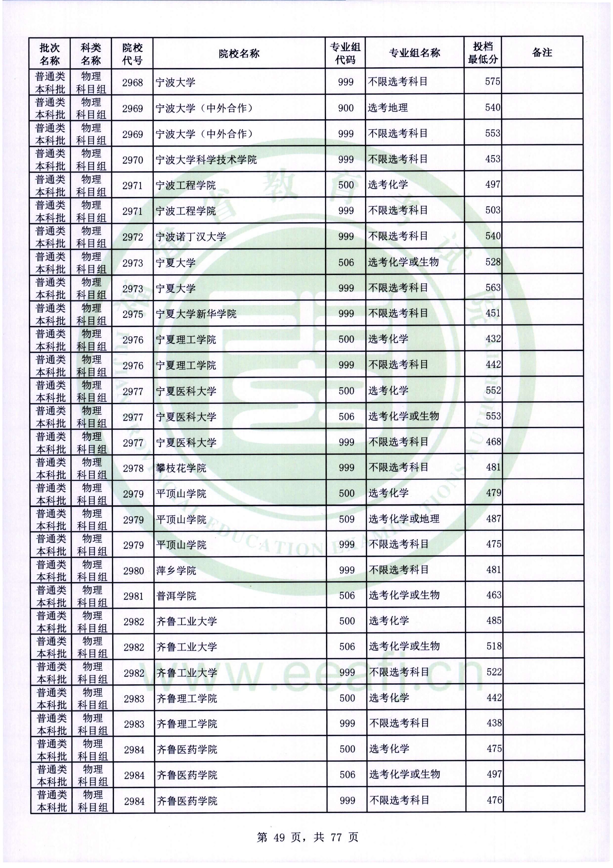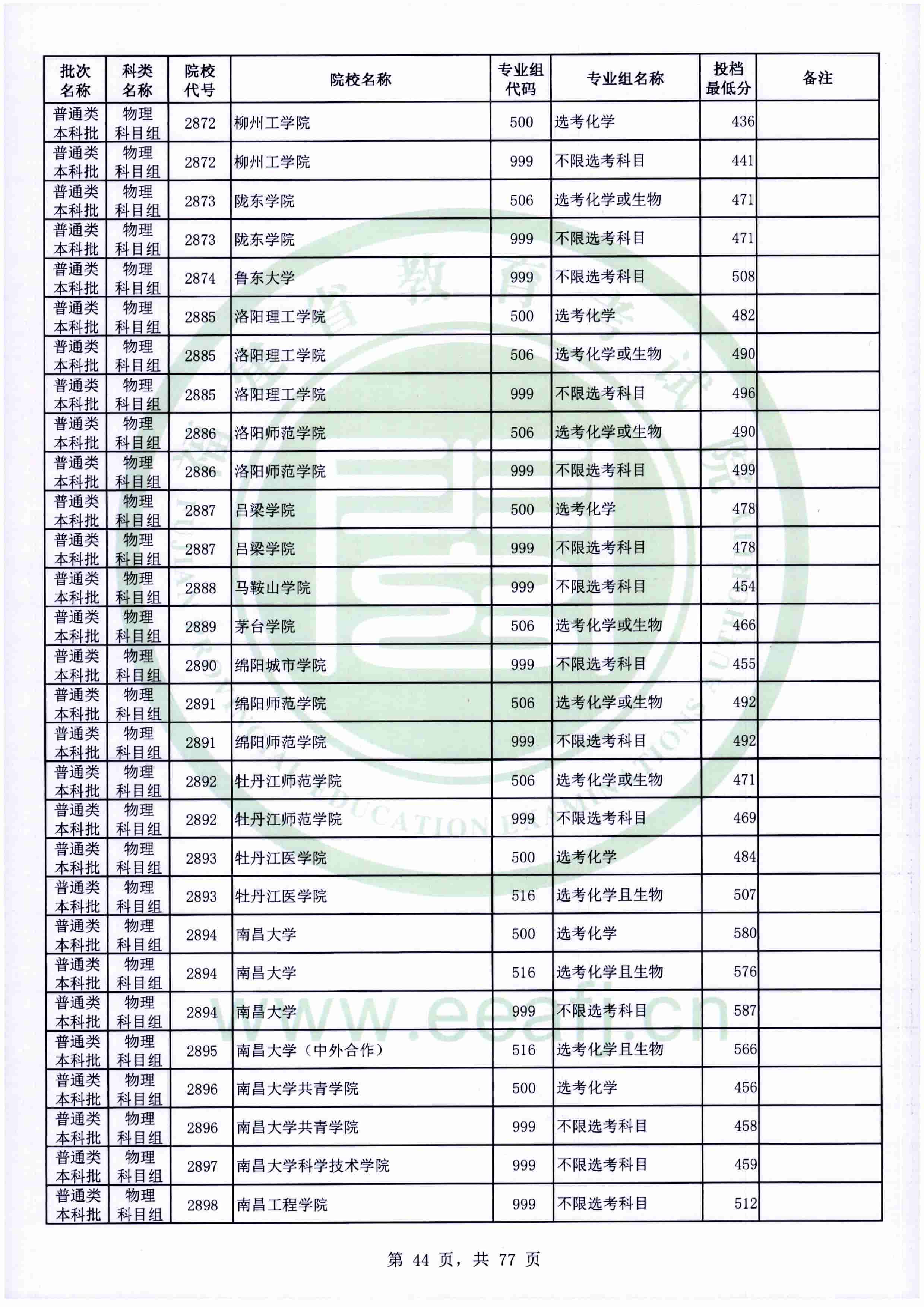 2022年普通类本科批常规志愿院校专业组投档最低分公布!