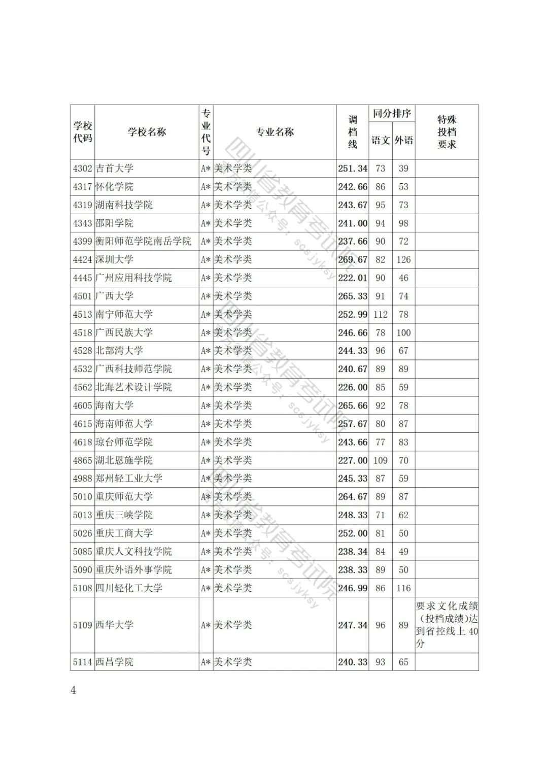 四川2022年高考艺术体育类专业招生艺术类本科第一批、体育类本科批调档线出炉!30