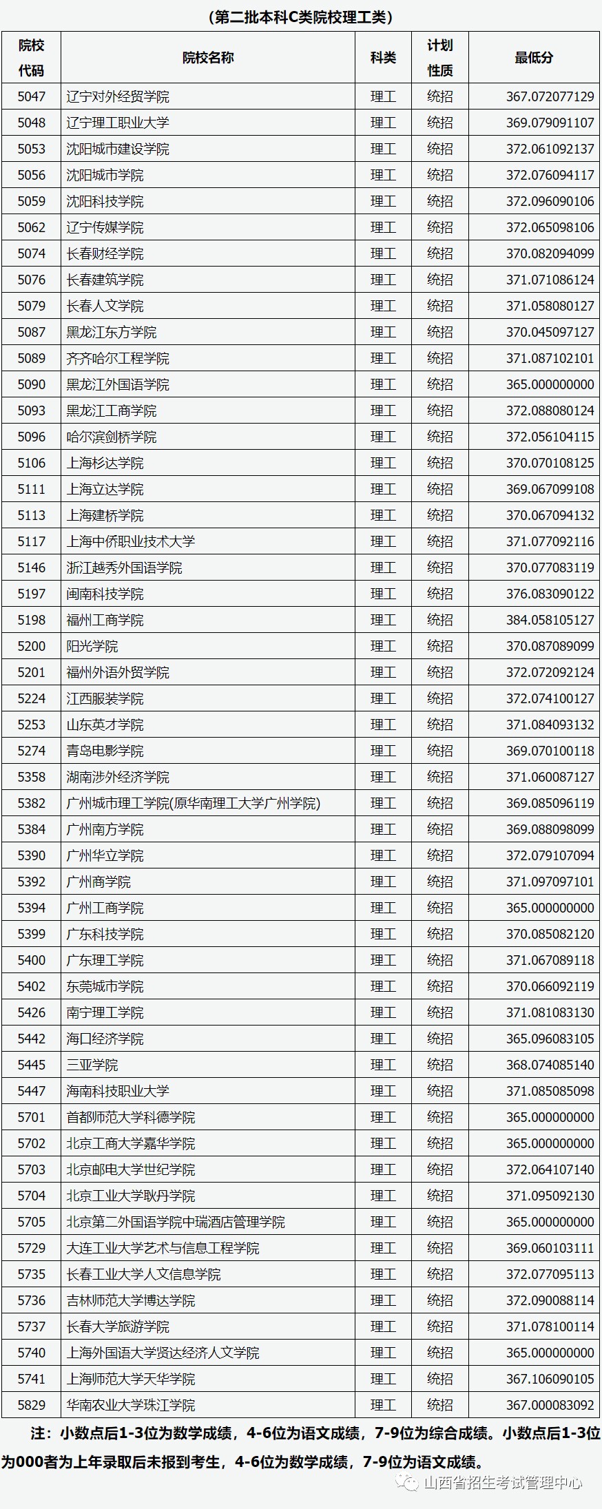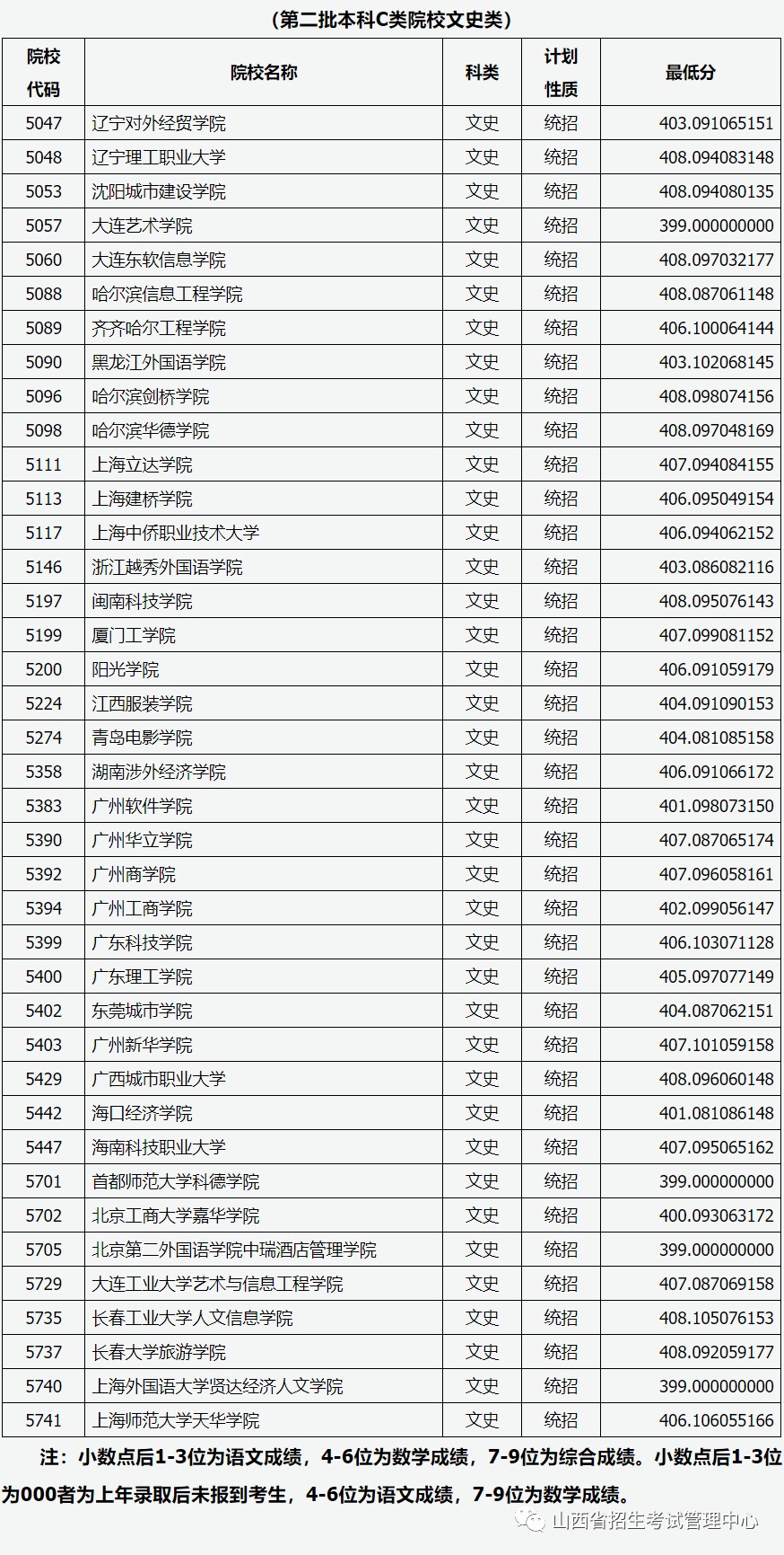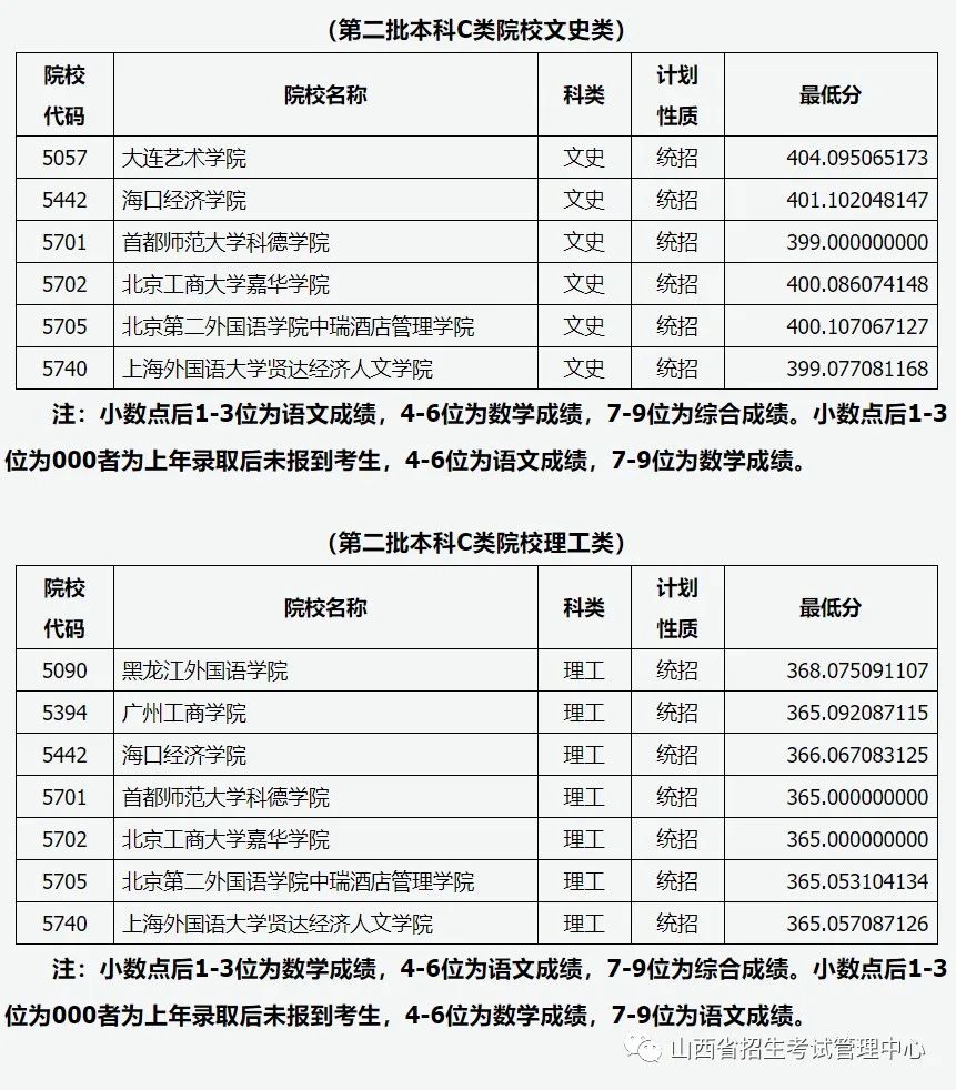 山西省2022年普招第二批本科C类院校投档最低分公布!