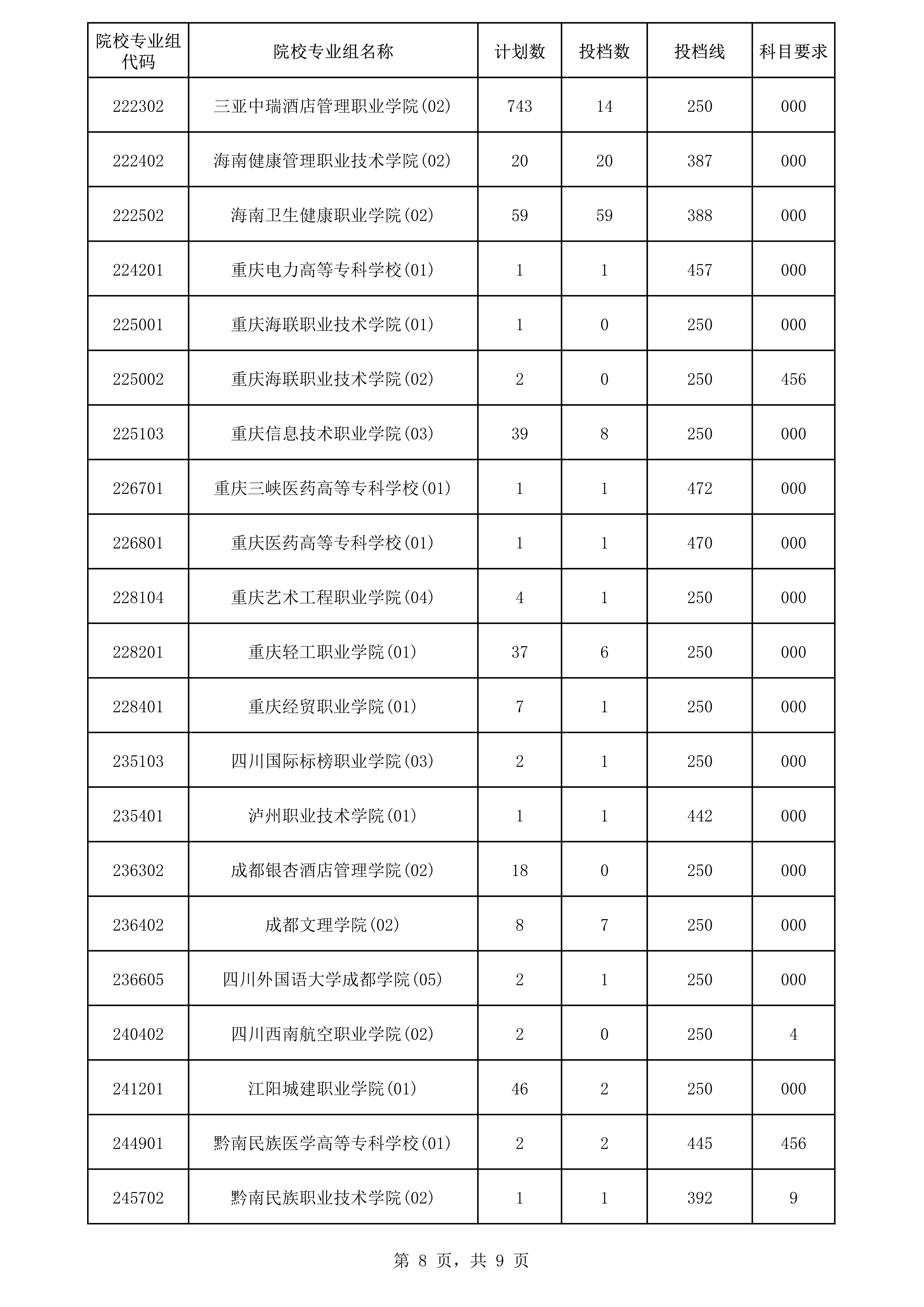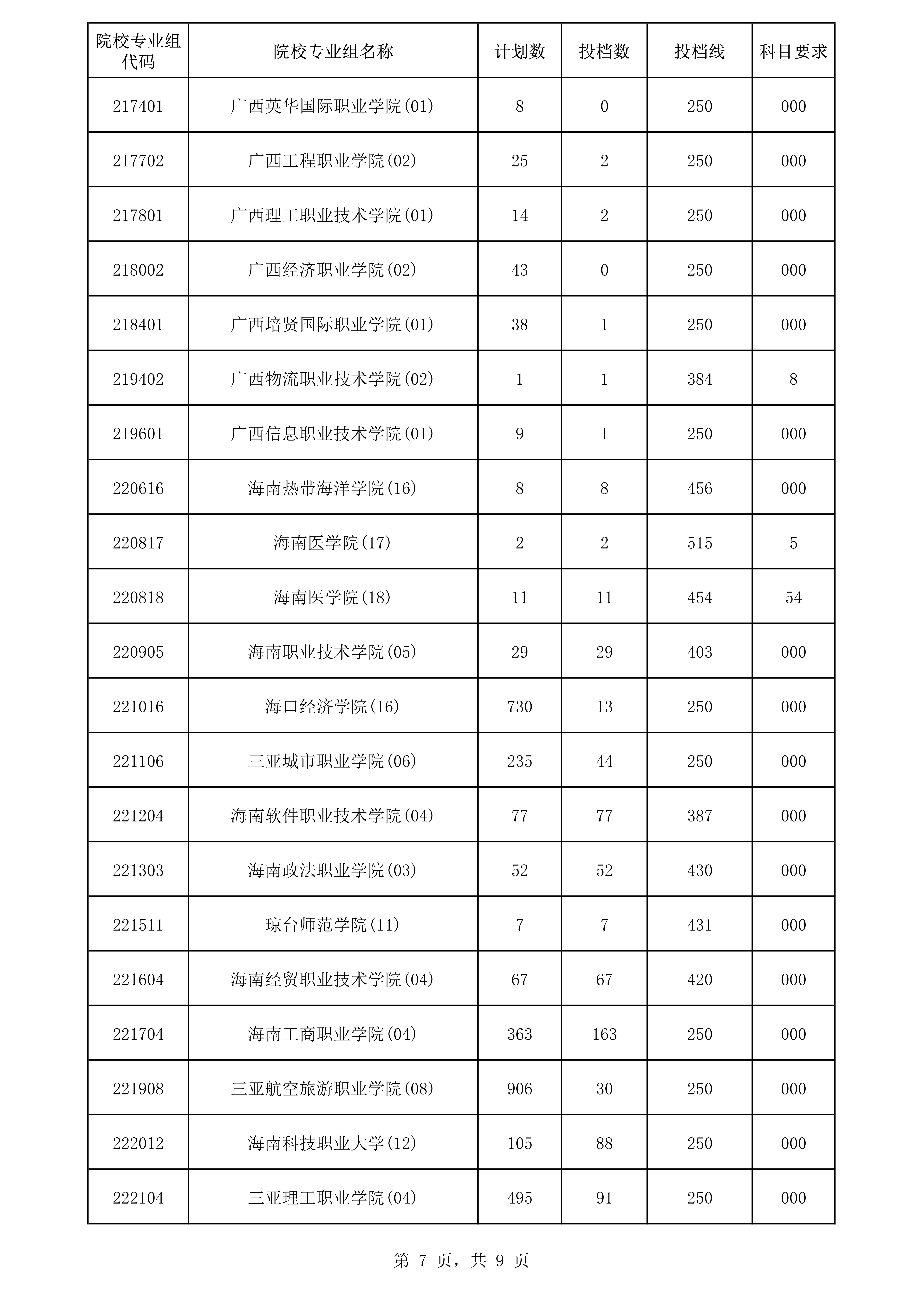 海南省2022年普通高校招生录取高职(专科)批院校专业组征集志愿平行投档分数线公布!