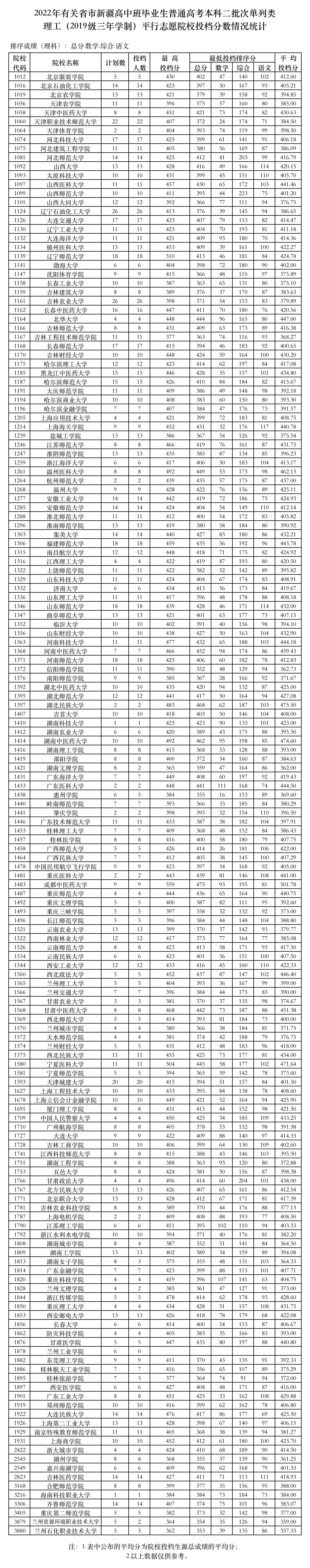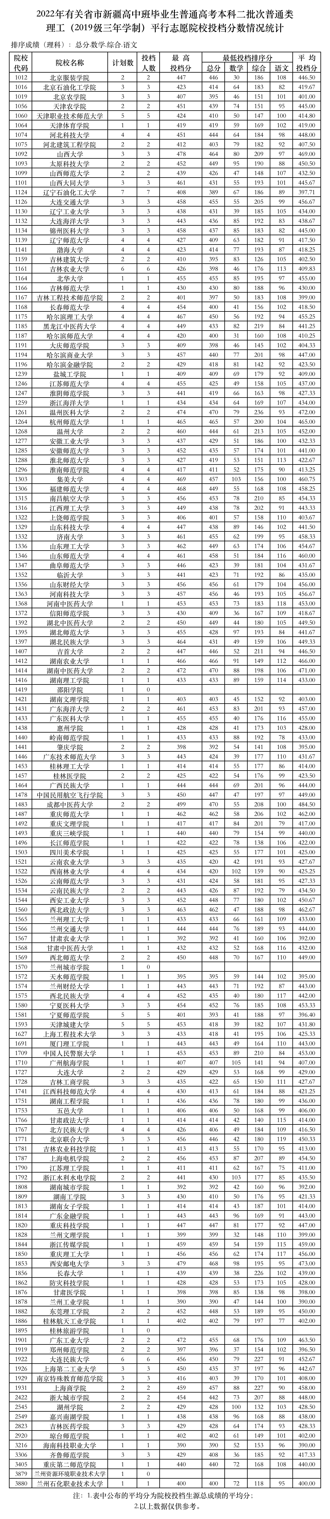 2022年有关省市新疆高中班毕业生普通高等学校招生录取生源情况统计表-普通类理工2019级三年学制本科二批次