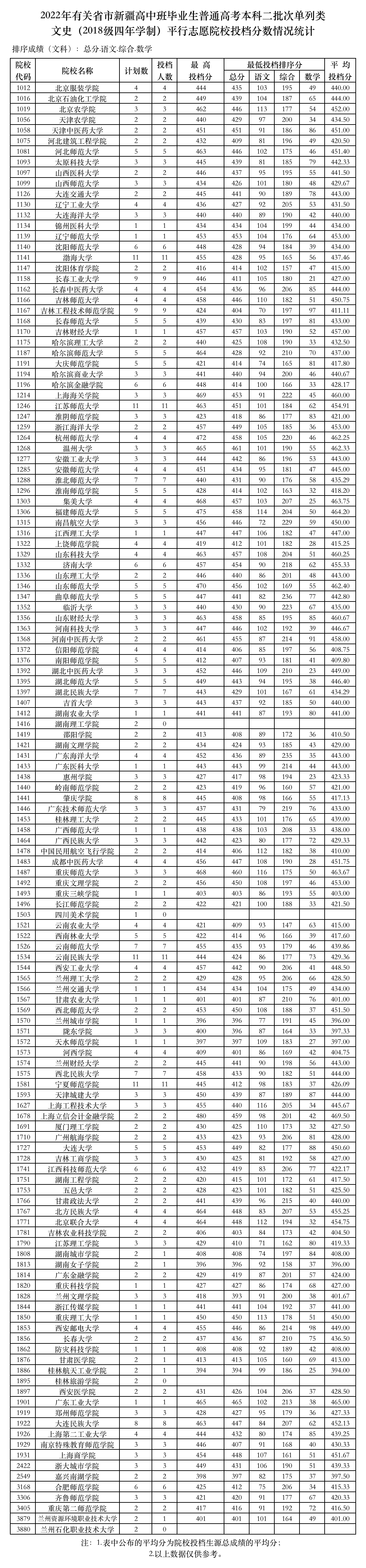 2022年有关省市新疆高中班毕业生普通高等学校招生录取生源情况统计表-单列类(四年)文史2018级四年学制本科二批次