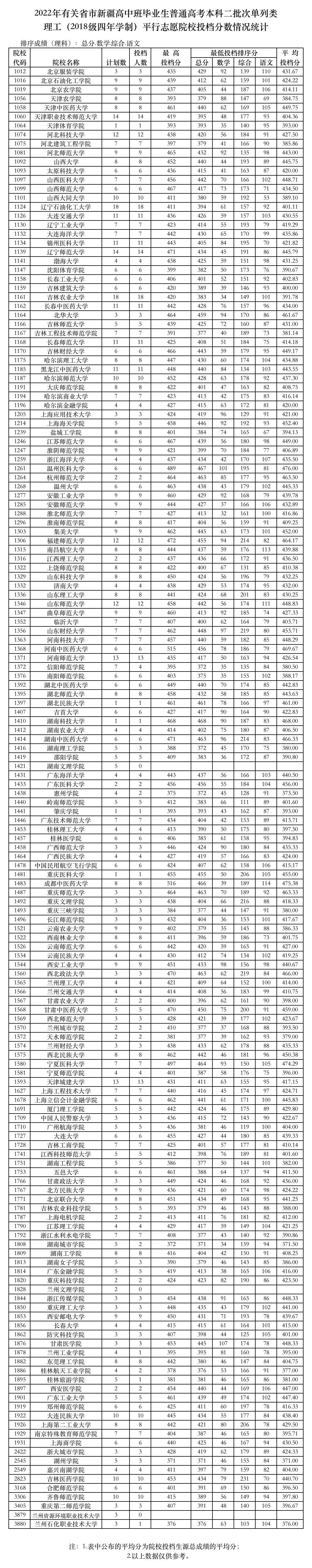 2022年有关省市新疆高中班毕业生普通高等学校招生录取生源情况统计表-普通类理工2018级四年学制本科二批次